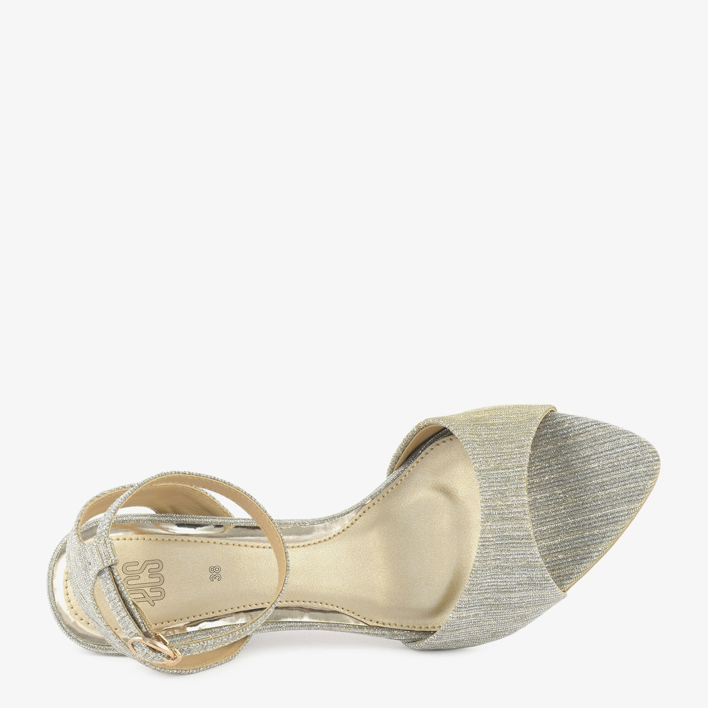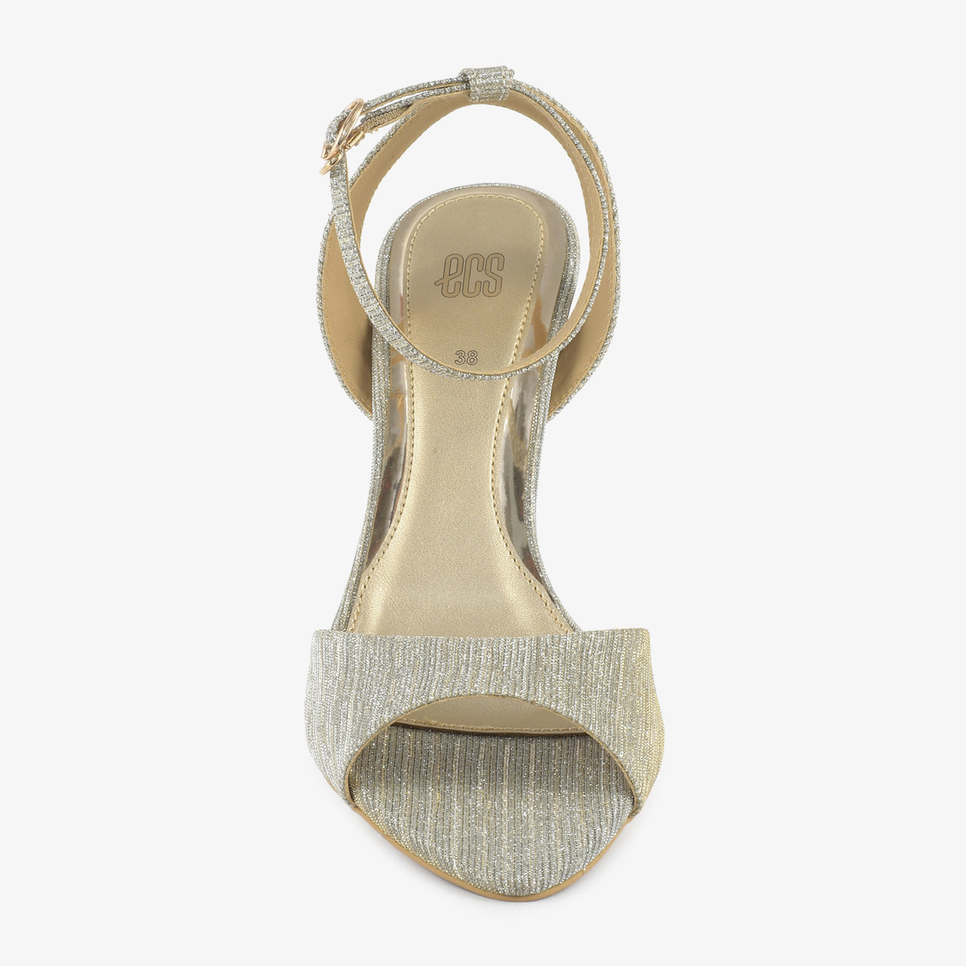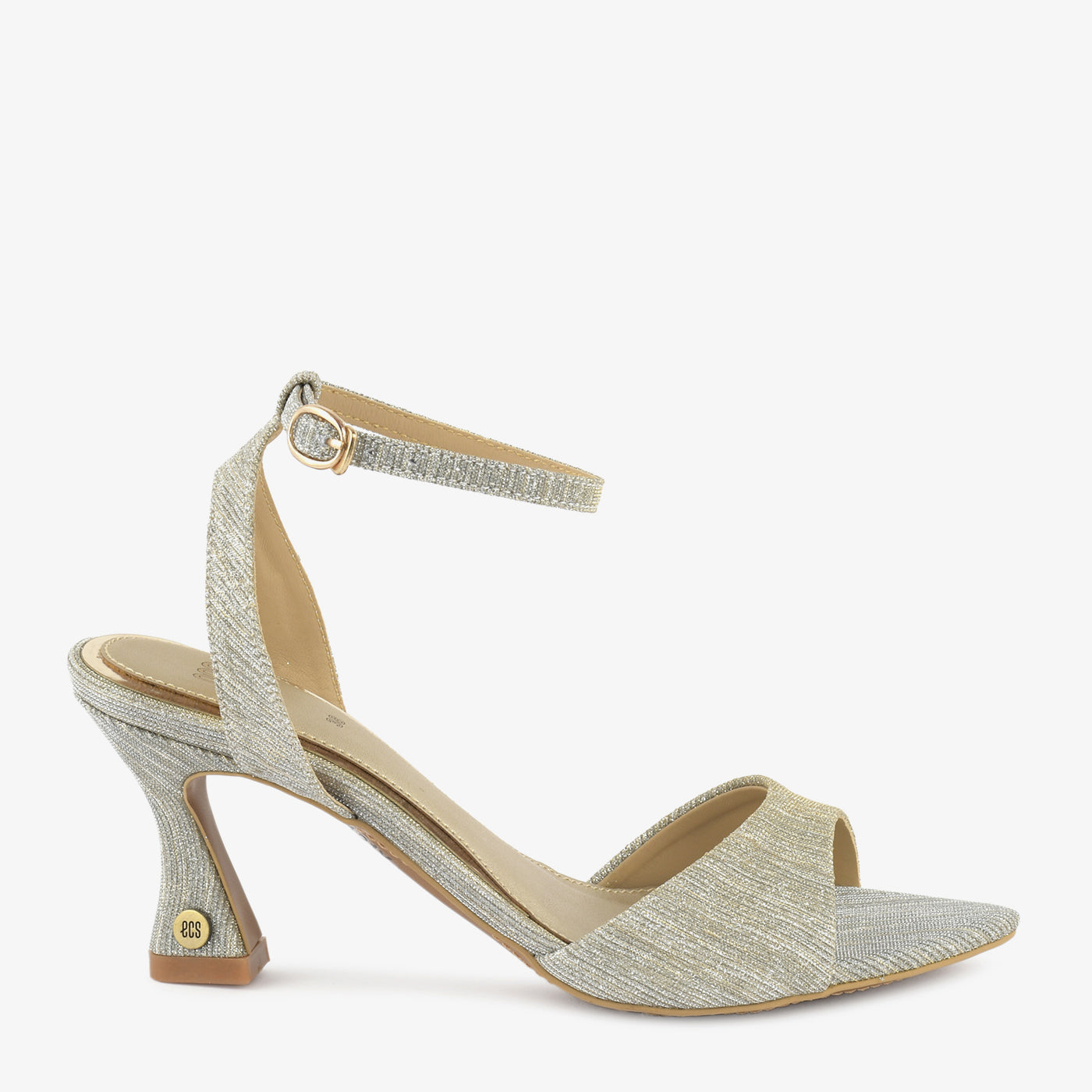 Step into dazzling elegance with these gold glitter sandals. The shimmering finish and delicate ankle strap add a touch of glamour to your festive look in Lahore. The stylish heel provides a sophisticated lift for special occasions.