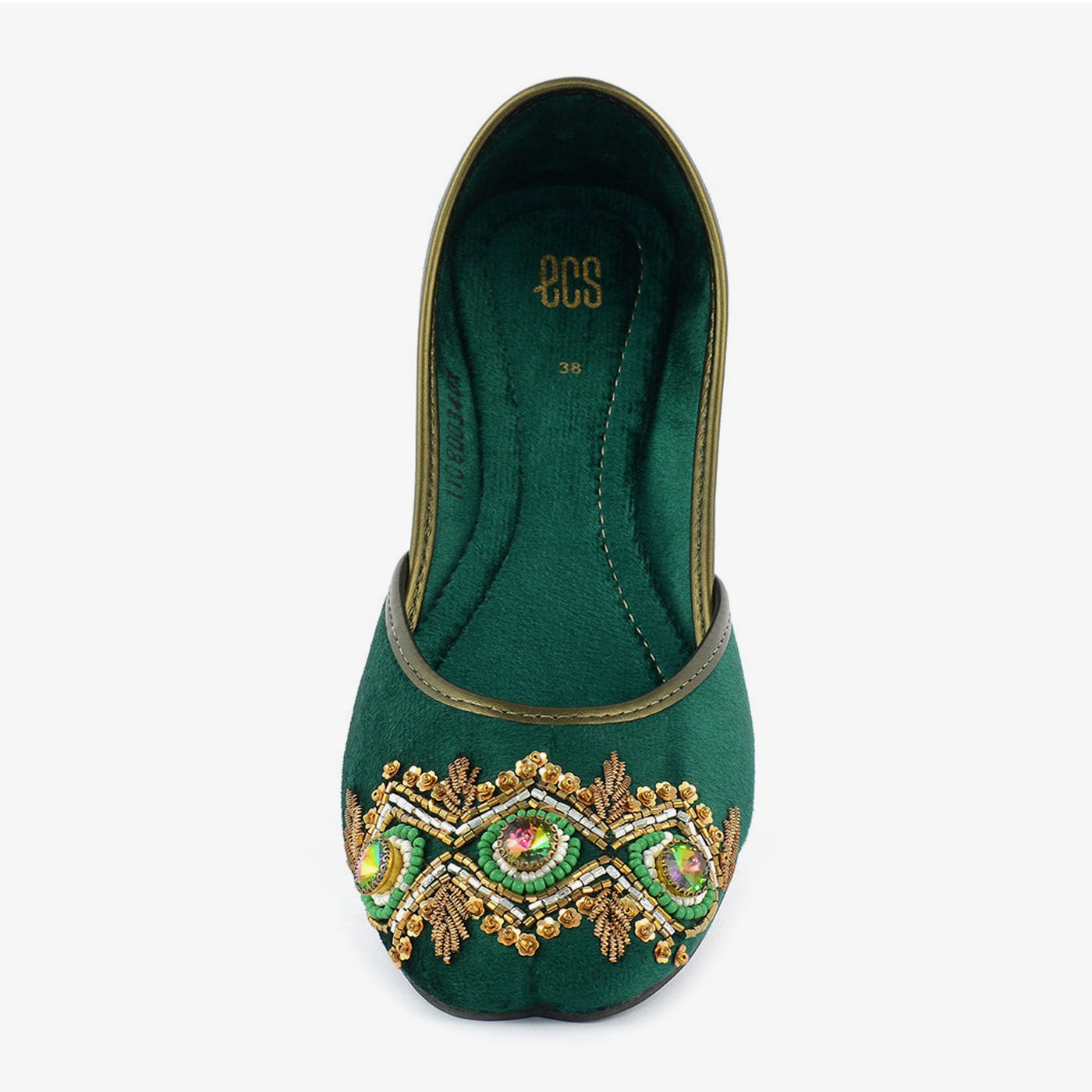 Styling Tips: Pair these khussas with a cream or gold-toned formal outfit to create a harmonious and luxurious look. They are an exquisite choice for a mehndi or wedding event, adding a touch of classic Pakistani charm.