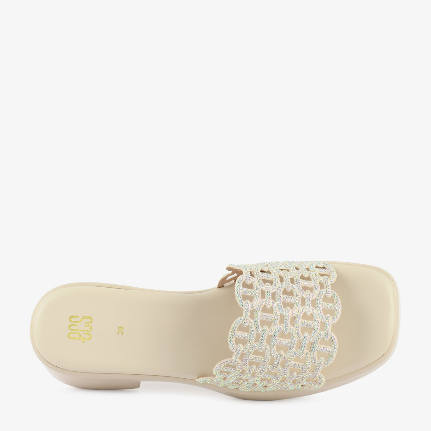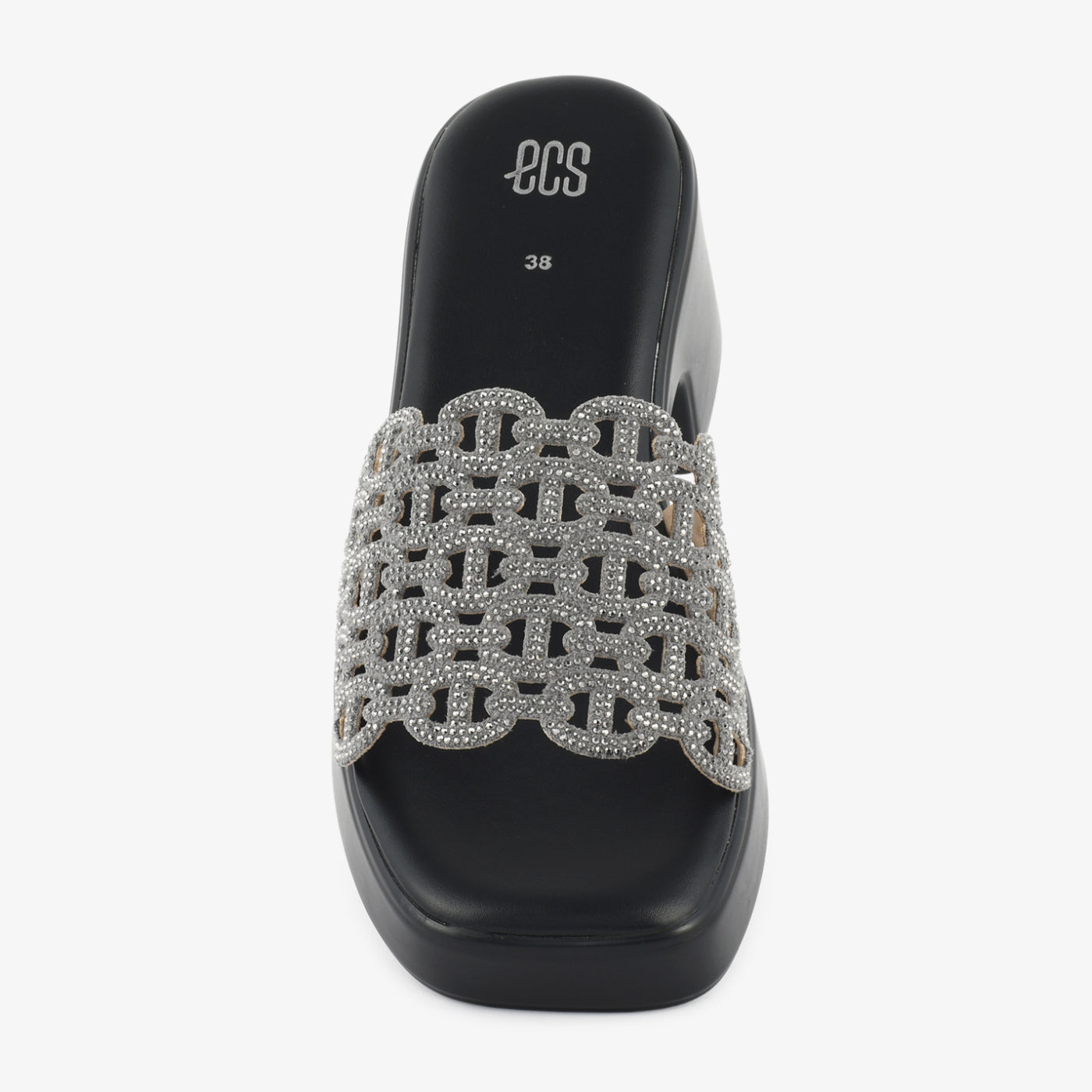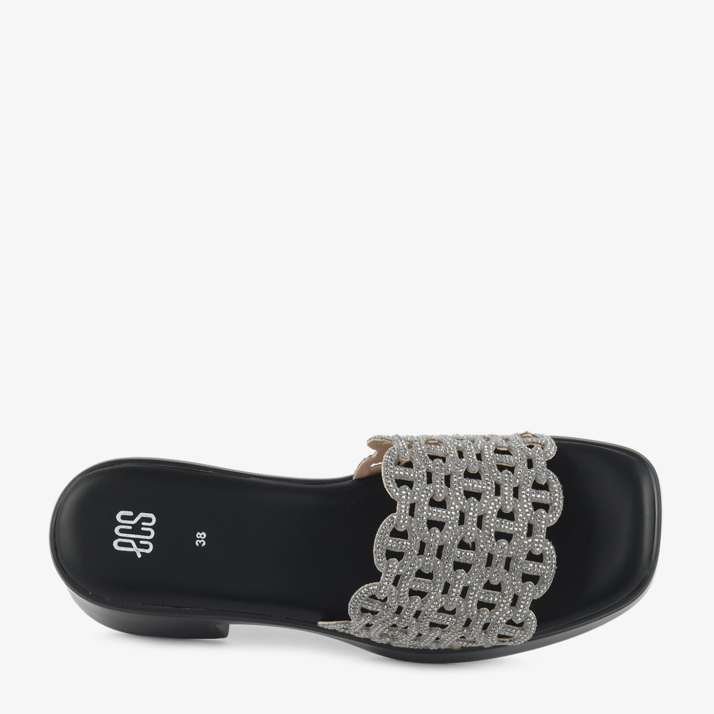 • Design: Crystal lattice strap heeled slipper