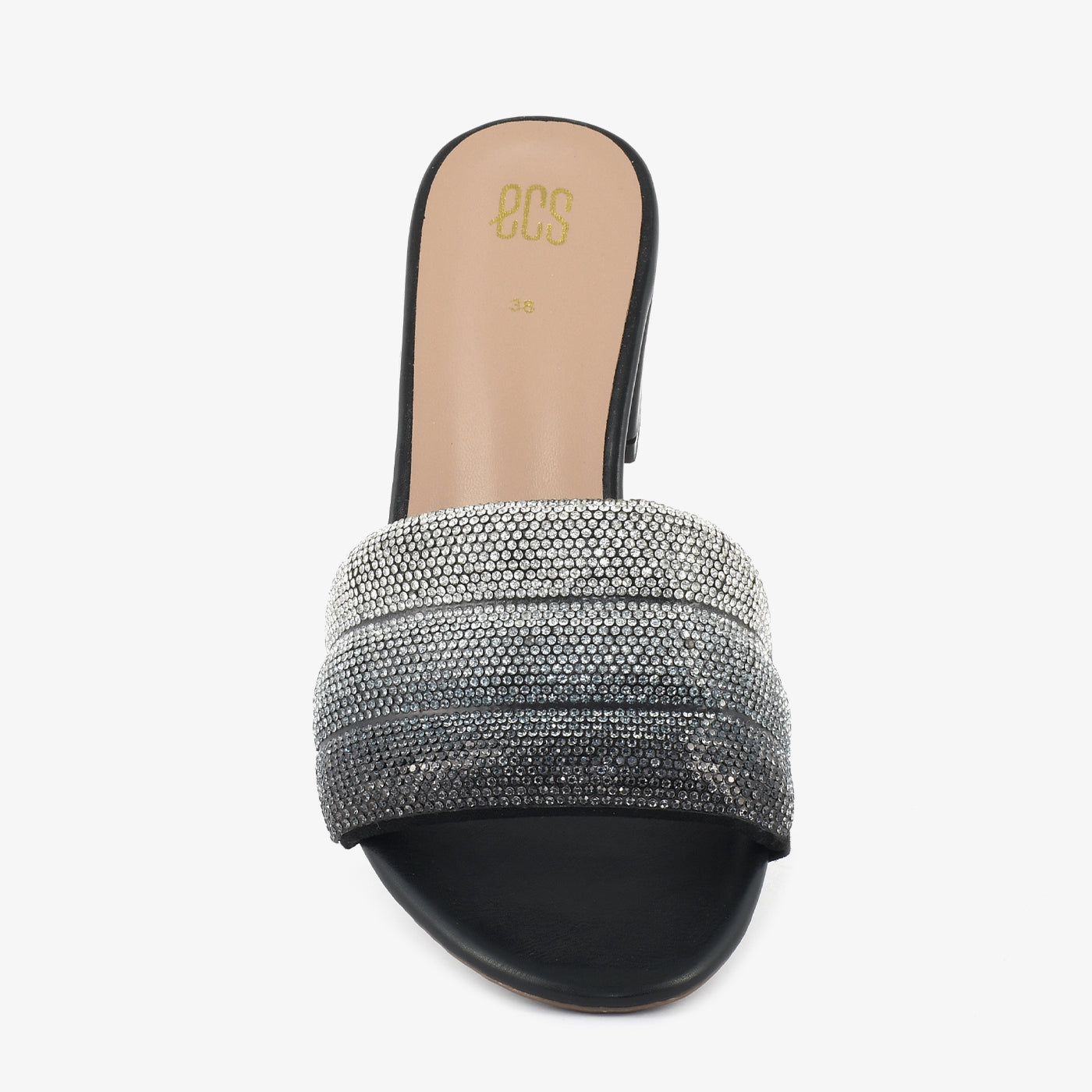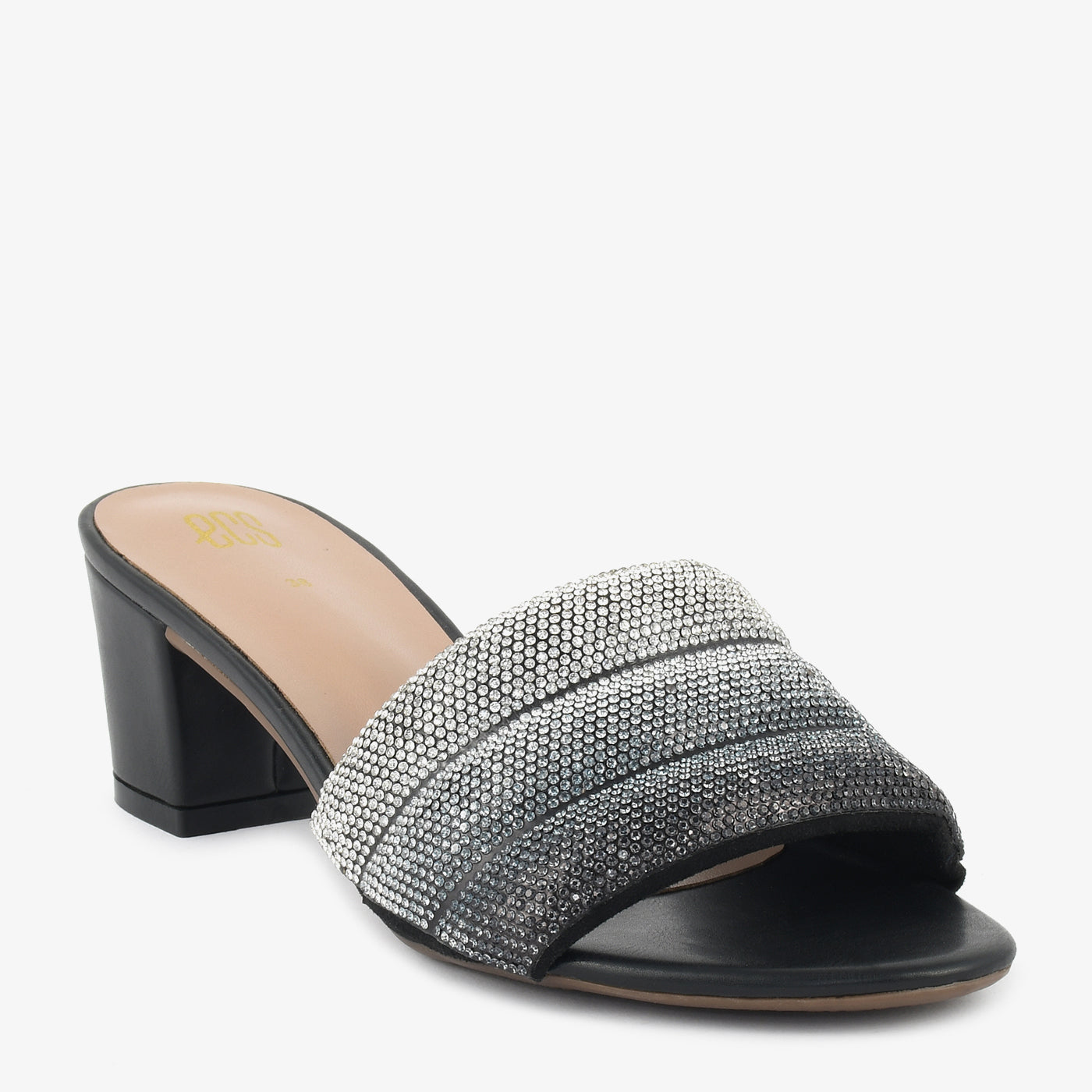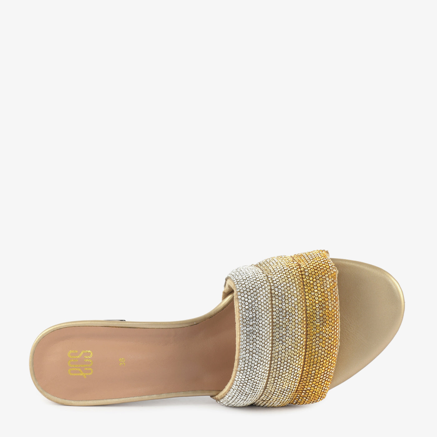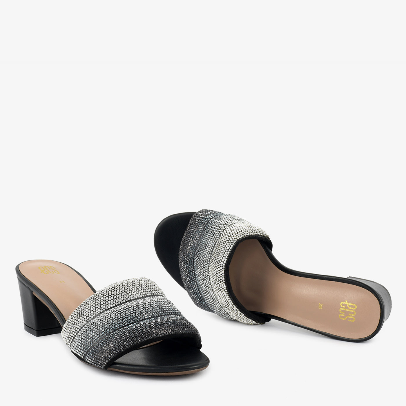 Shimmer and shine with the "Golden Hour" Embellished Heel Slippers. These radiant slippers feature a gradient of dazzling embellishments across the straps, creating a look that's both glamorous and captivating. The comfortable block heel offers subtle lift and all-day wearability, making them perfect for adding a touch of sparkle to any special occasion.