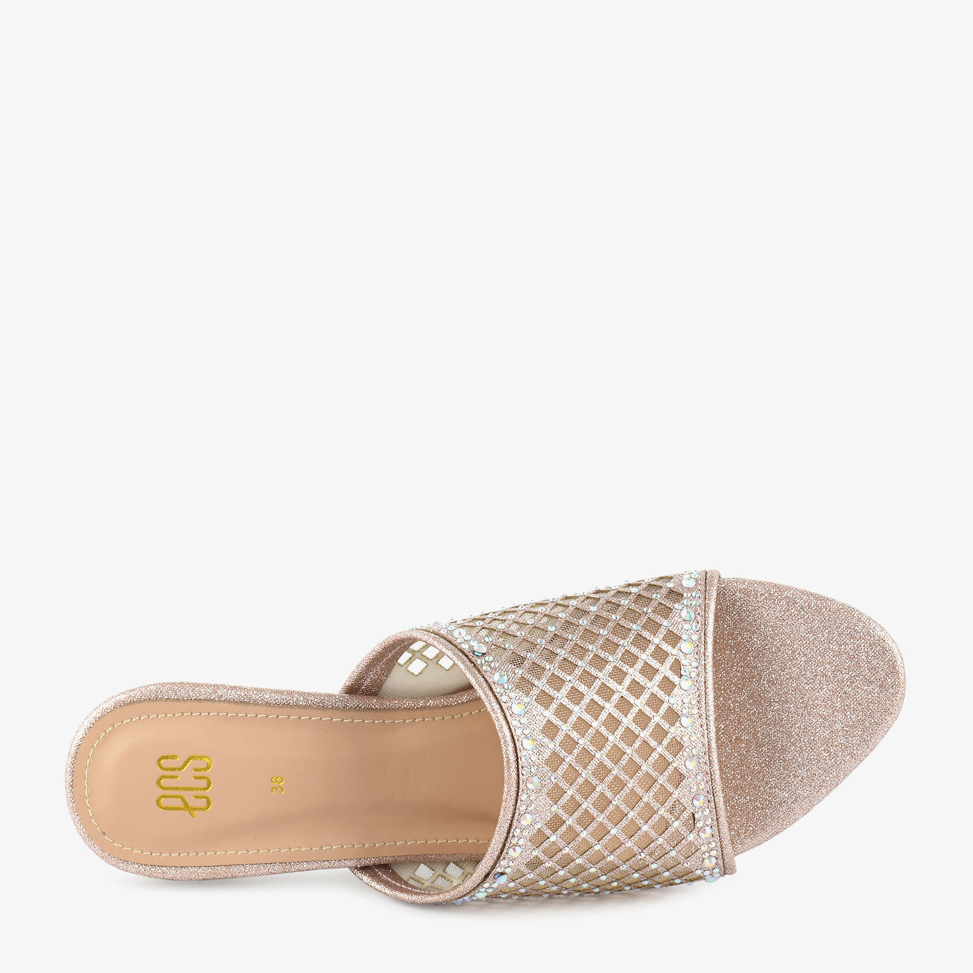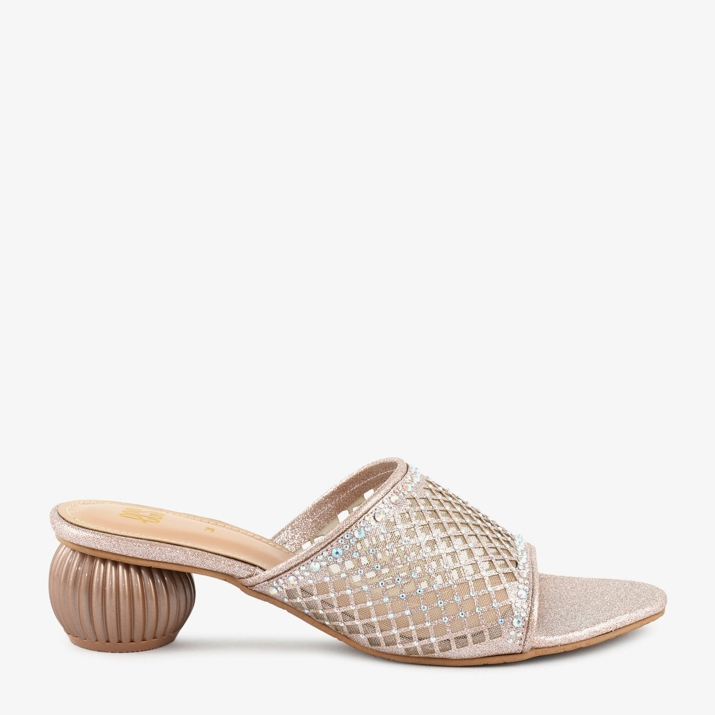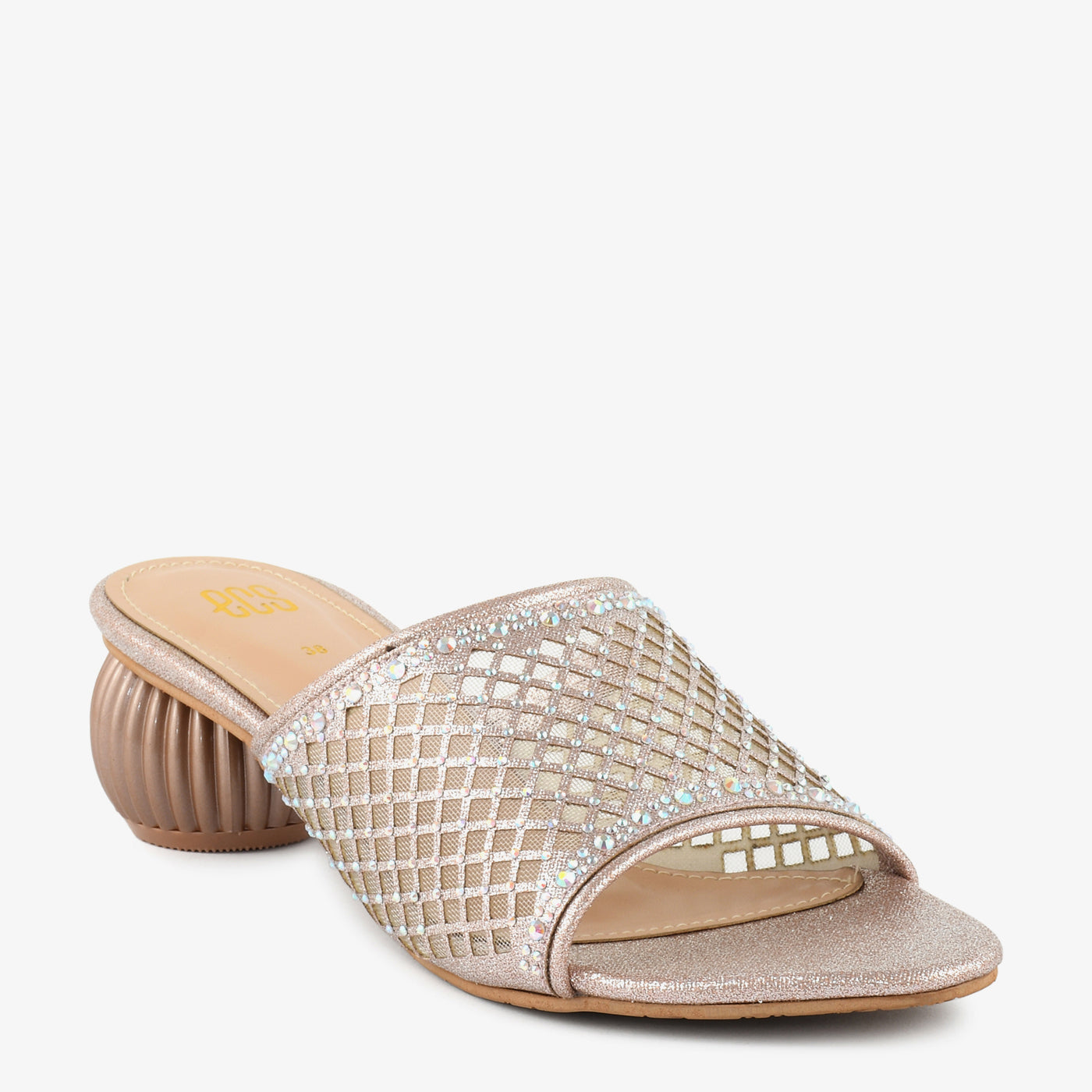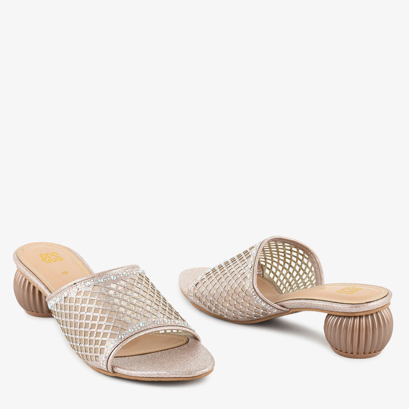 A radiant blend of modern aesthetics and classic charm, these slippers feature a mesh grid upper adorned with tiny stones and a uniquely sculpted heel. Lightweight yet eye-catching, they promise comfort without compromising on style.