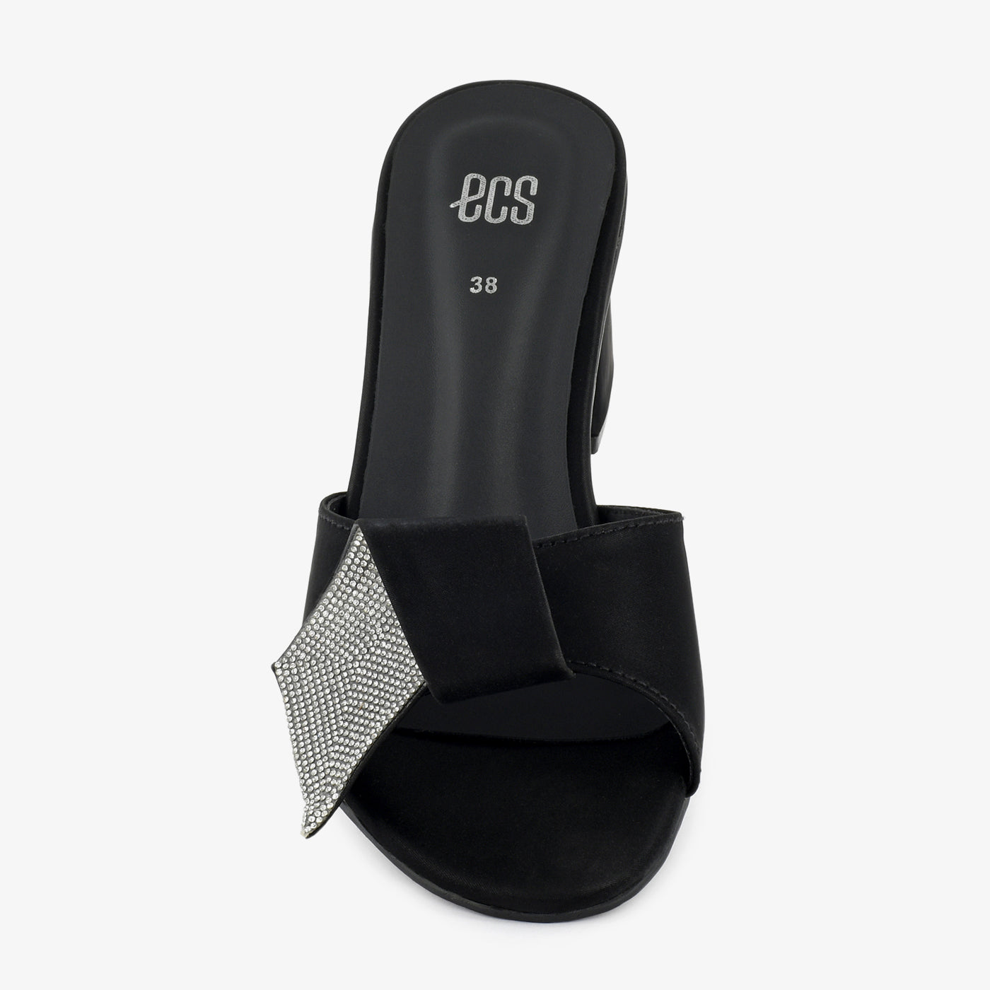 These sophisticated black heels showcase a striking rhinestone flap detail over a satin base, perfect for upscale soirées. The block heel offers all-day comfort with a touch of...