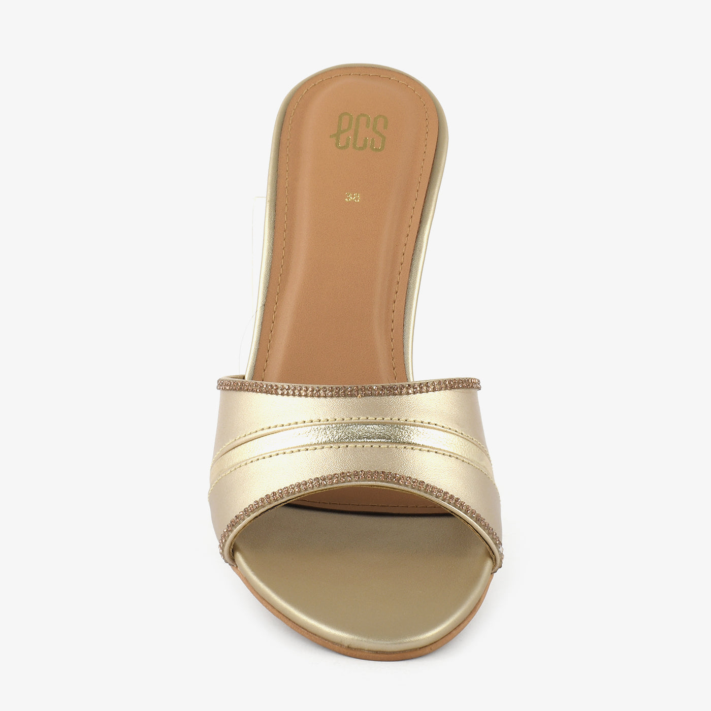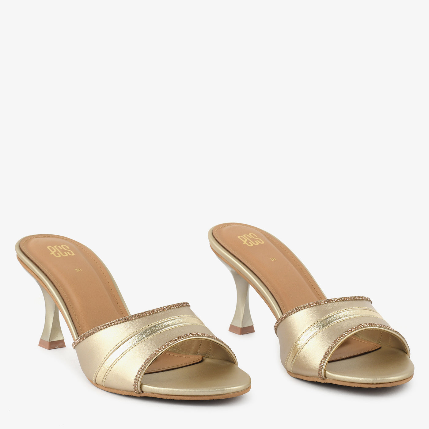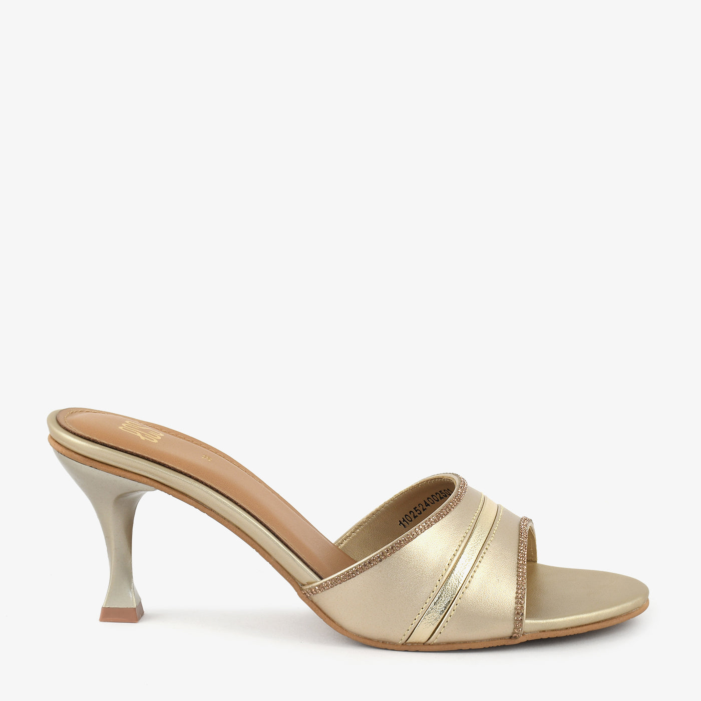 This beautifully crafted heel features a soft cushioned footbed with a slim, supportive heel that offers both comfort and graceful elevation. The front strap is designed with refined layered detailing and delicate embellishment accents, providing a secure fit while enhancing its sophisticated look. The smooth inner lining supports easy movement throughout the day, while the lightweight construction ensures lasting comfort. Designed for durability and style, this heel is suitable for formal gatherings, special occasions, and refined everyday wear. A graceful and stylish addition to any footwear collection.