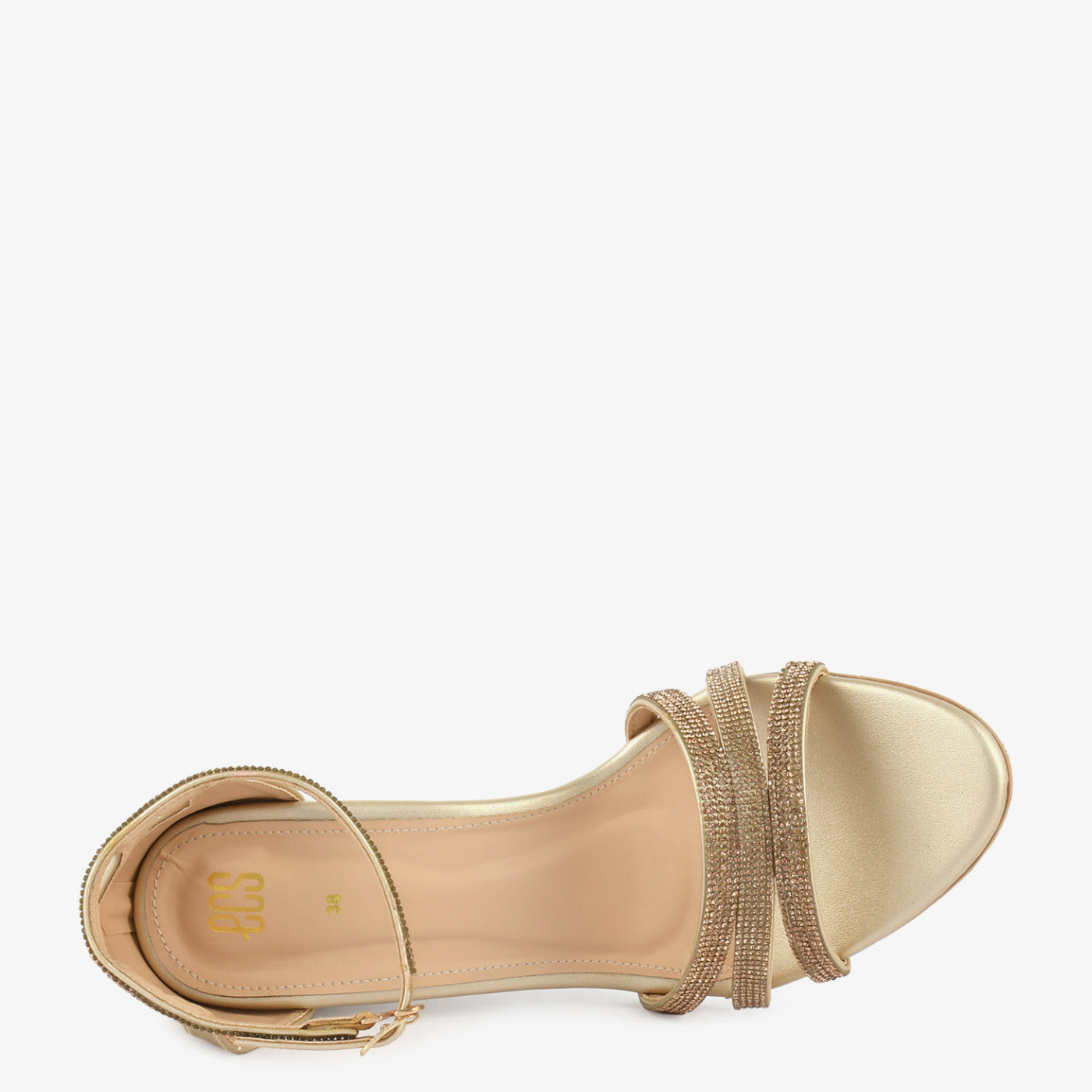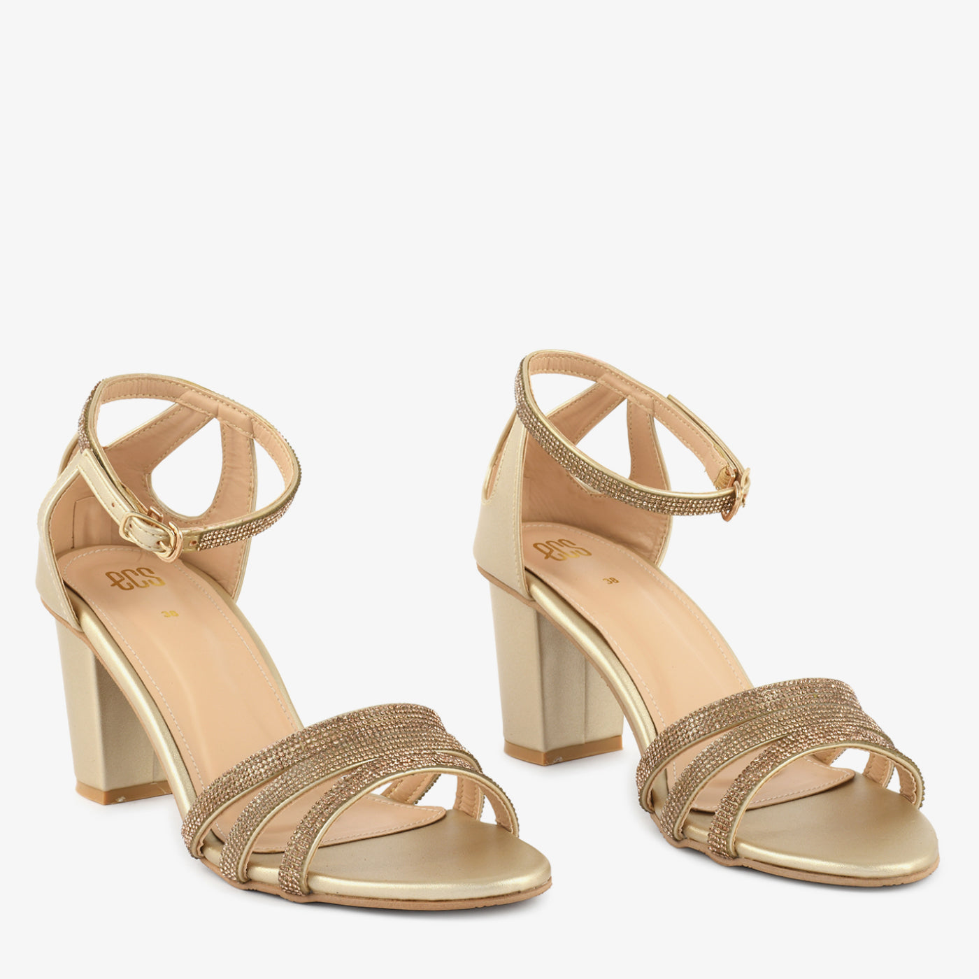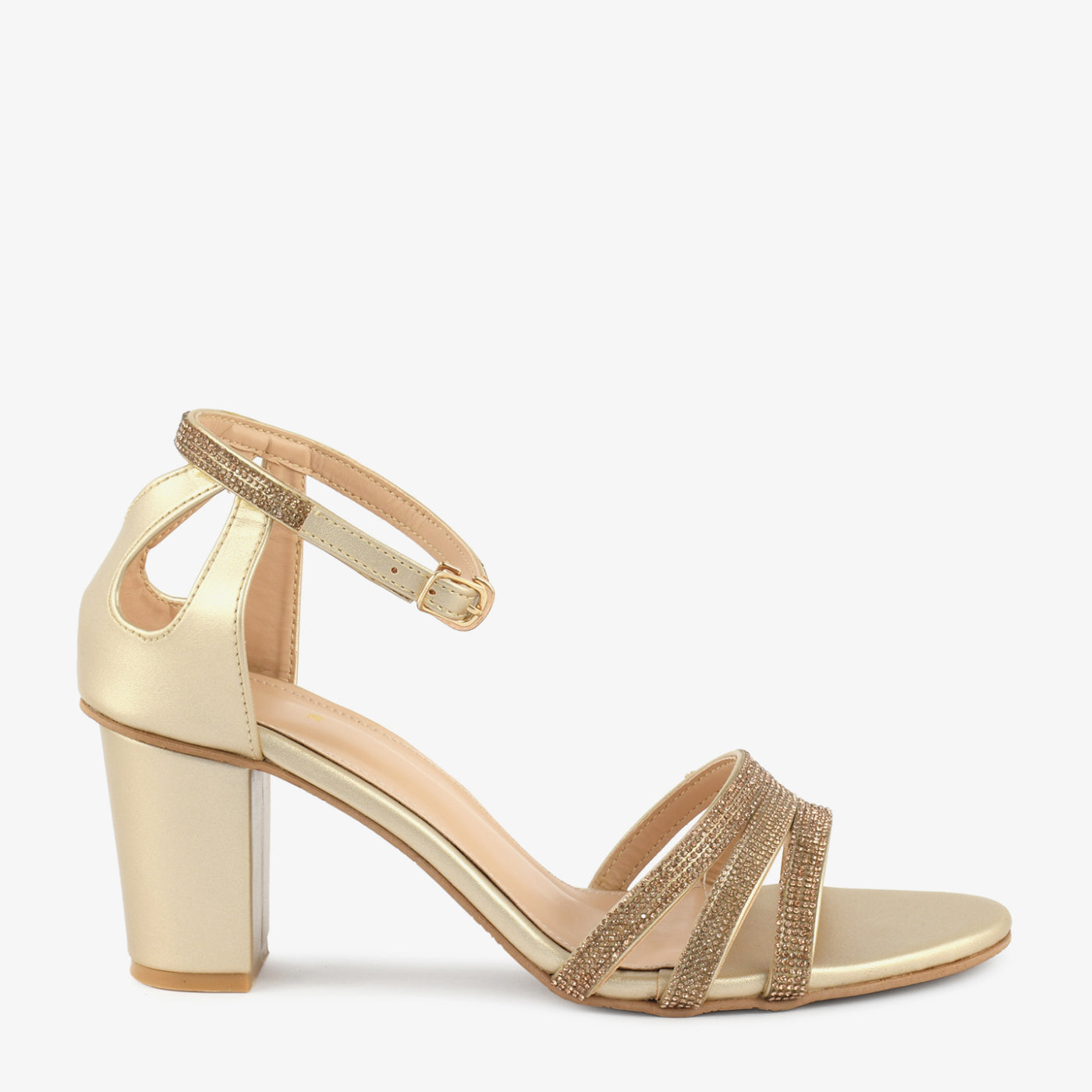 This elegant block heel features shimmering straps that sparkle with every step. The ankle strap with buckle adds security while keeping the design graceful. Perfect for parties, weddings, and evening occasions where comfort meets glamour.