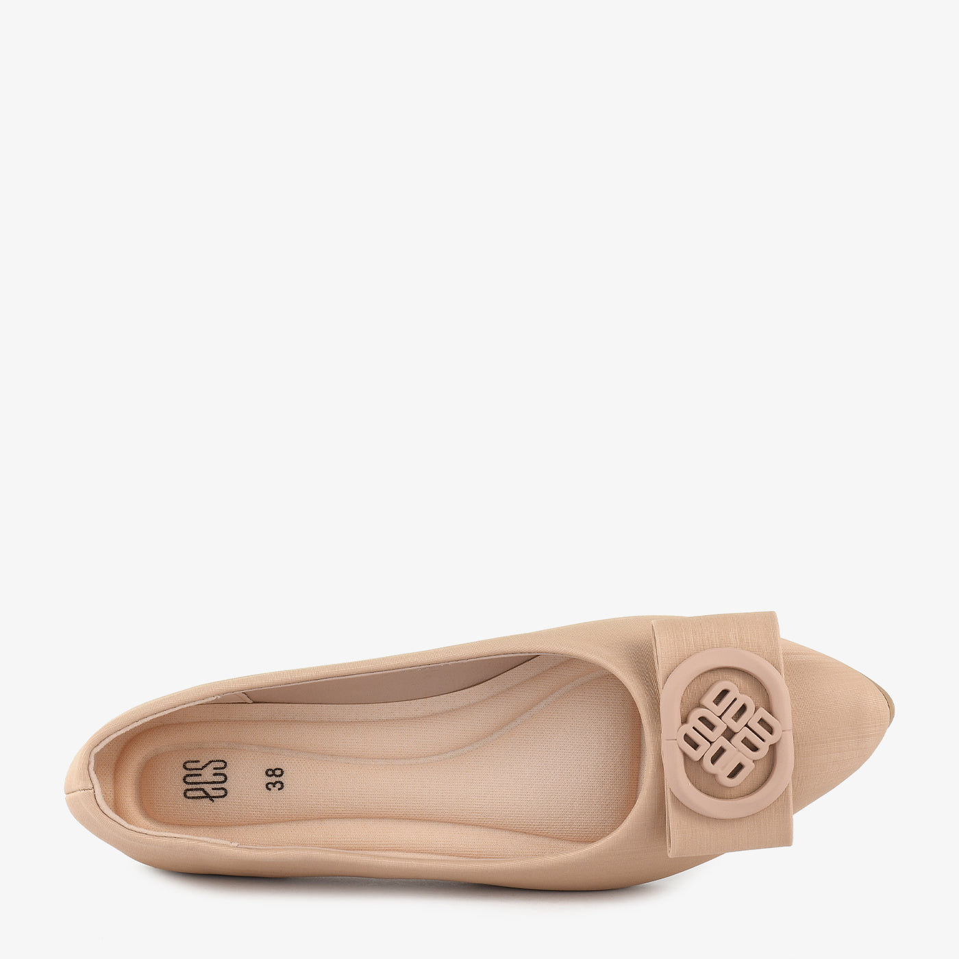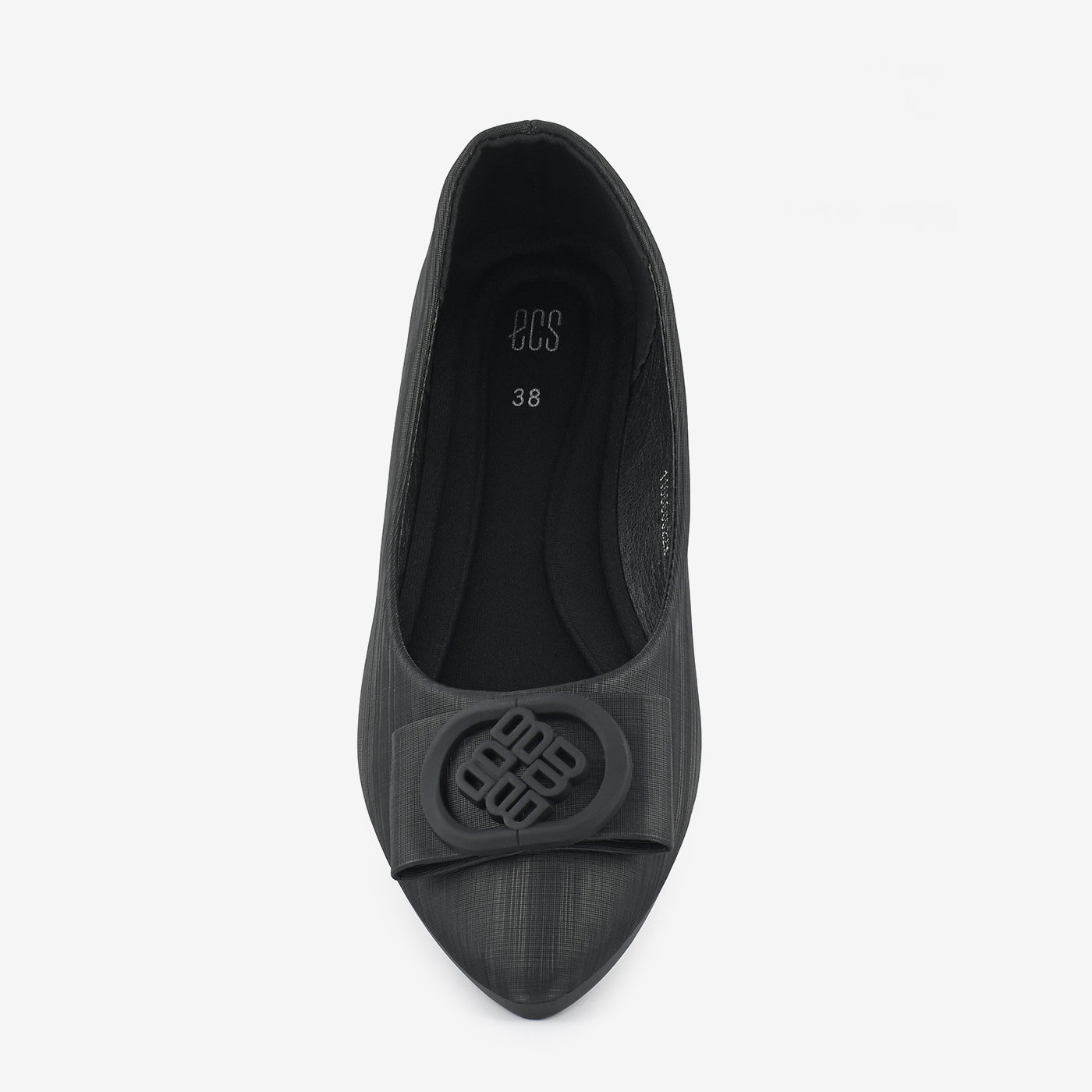 A graceful pump crafted for timeless elegance and all-day wear. Its sleek pointed silhouette and delicate emblem detailing exude refined sophistication. Soft inner lining ensures comfort with every step. Designed for the woman who values understated glamour and versatility in her footwear.