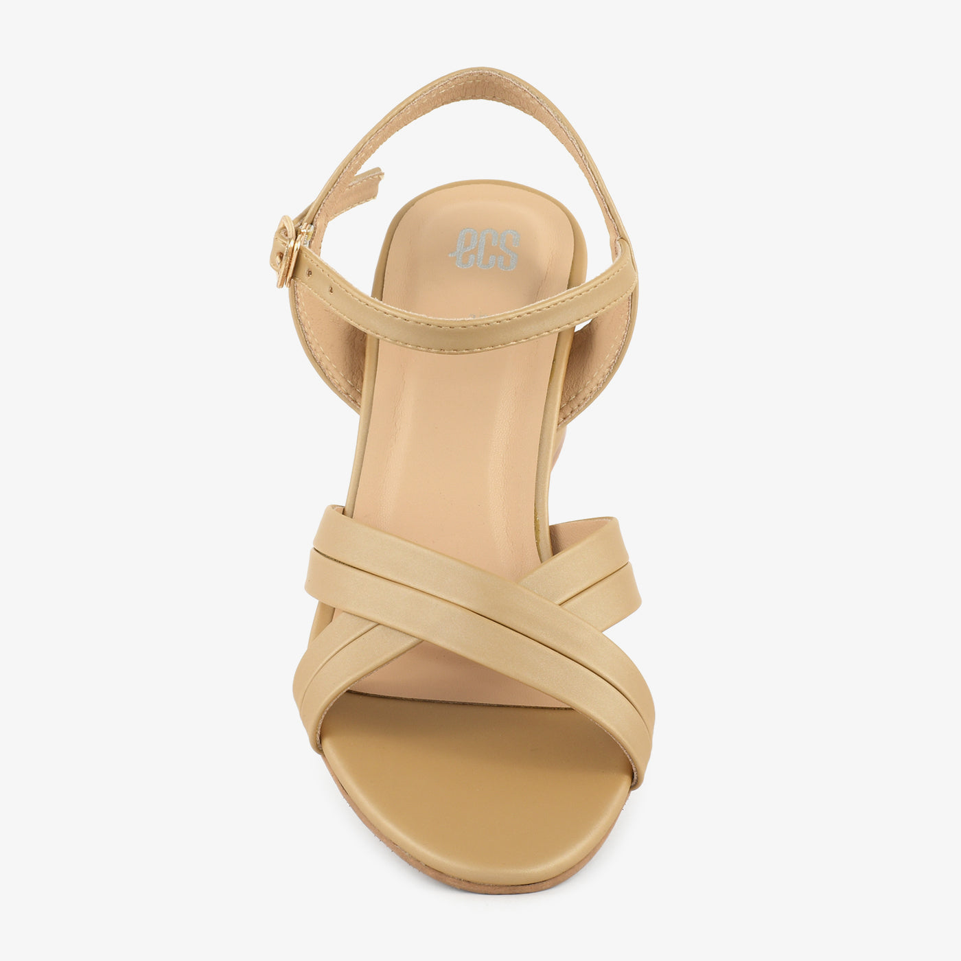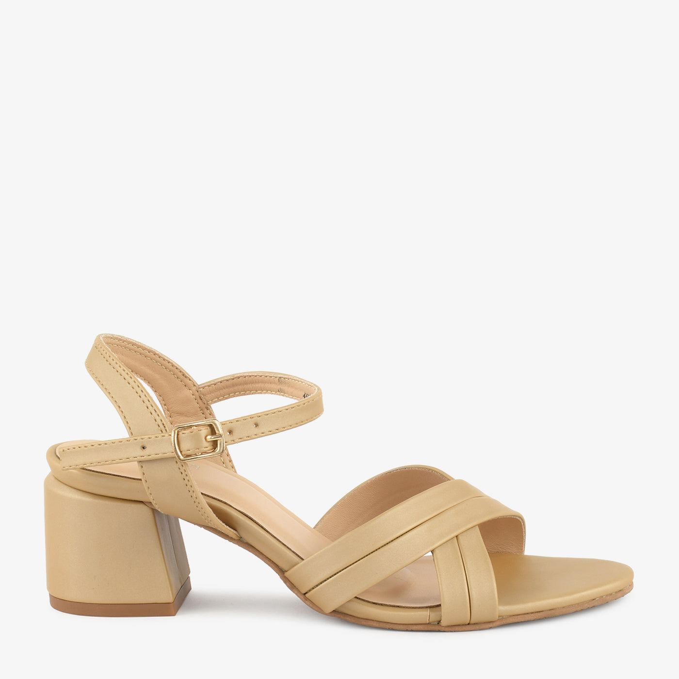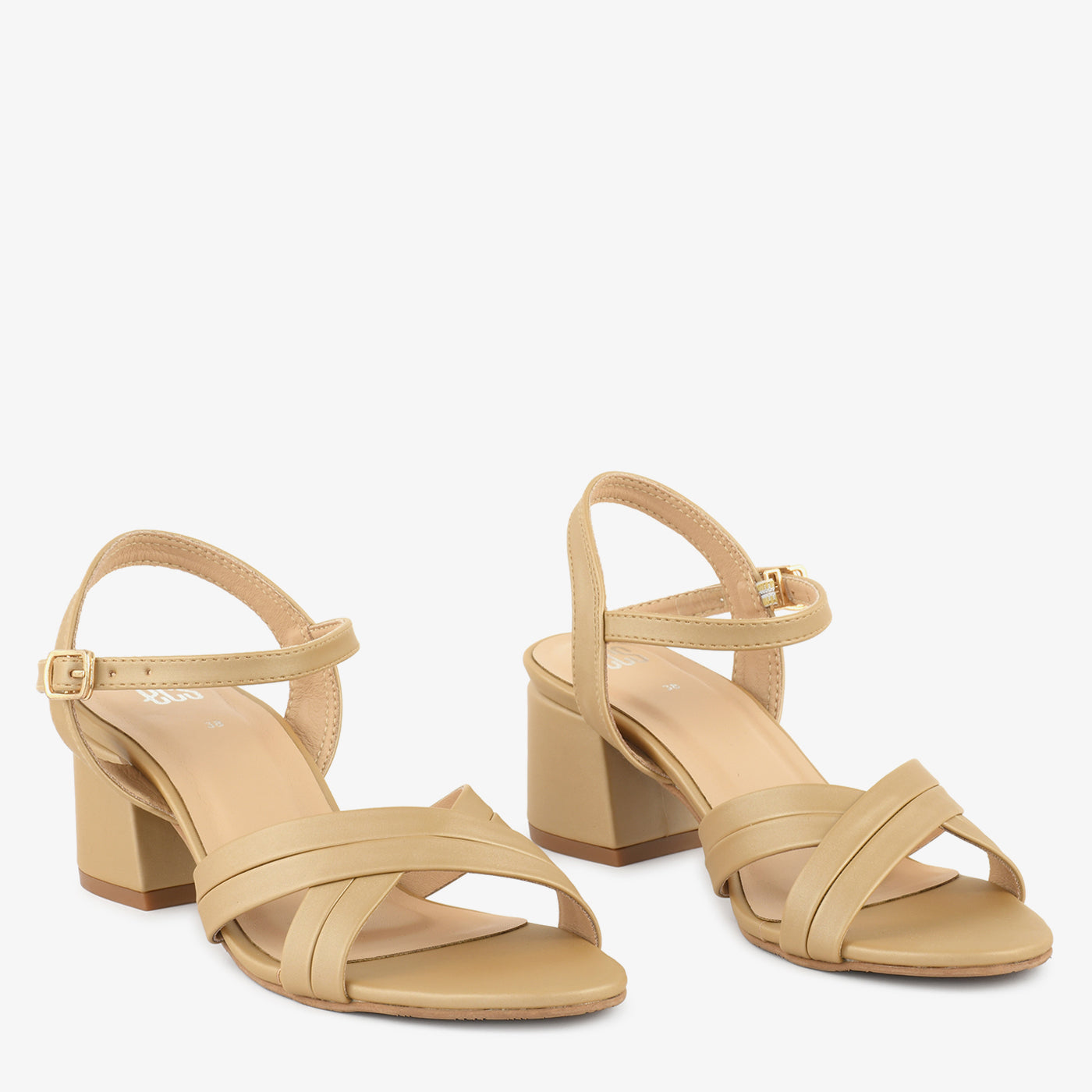 These block heel sandals feature sleek crisscross straps and a secure ankle buckle for all-day comfort. The minimalistic design offers versatility for casual or formal wear.