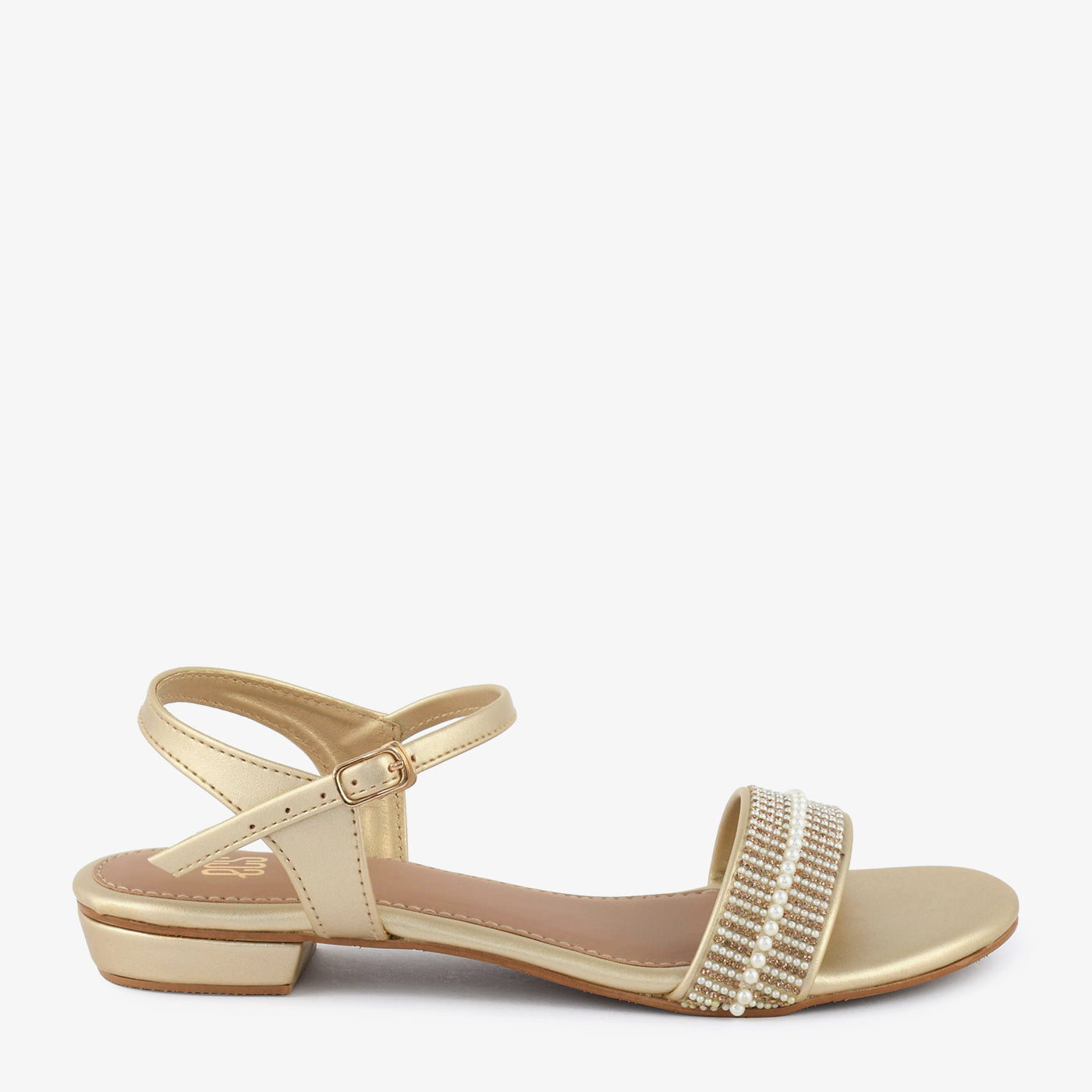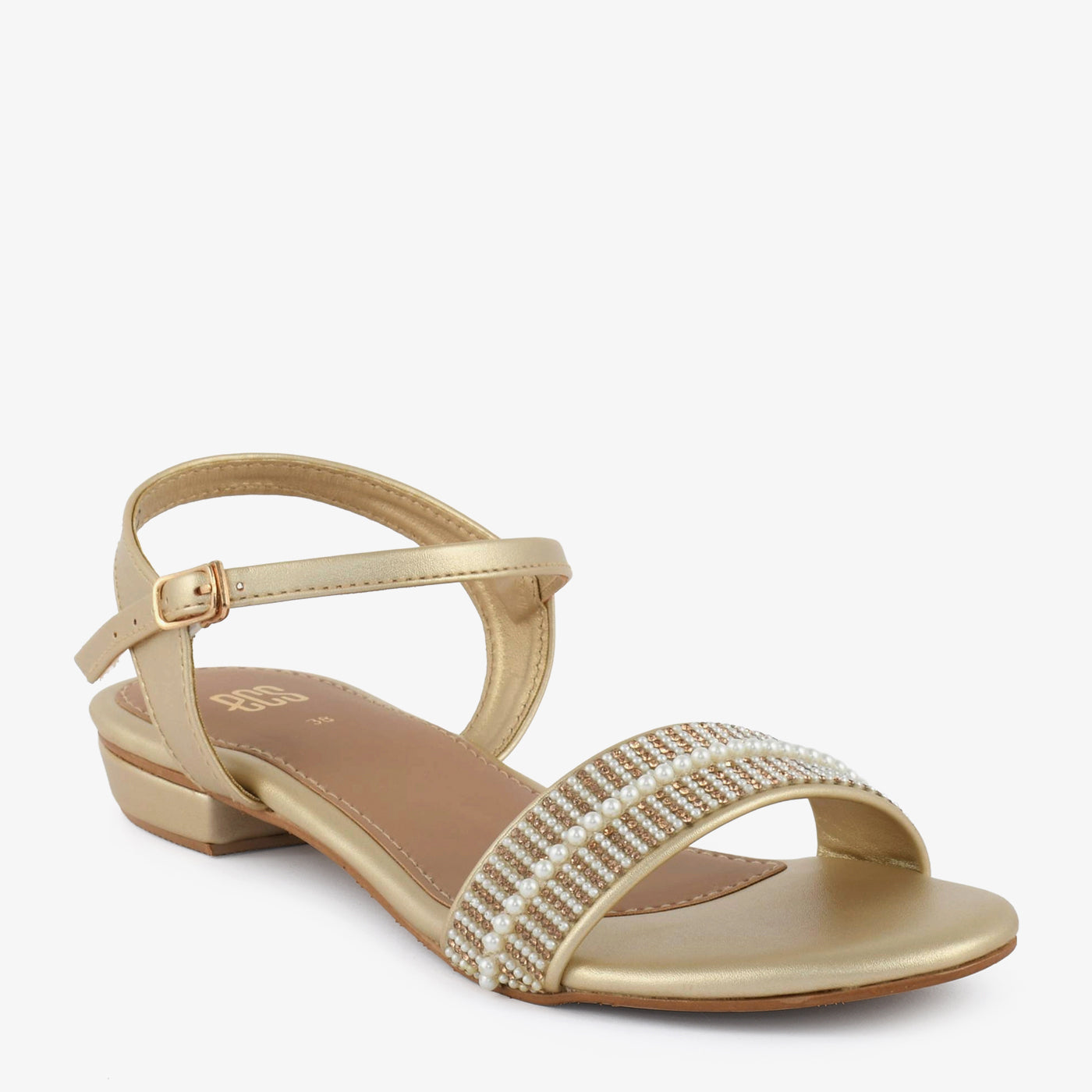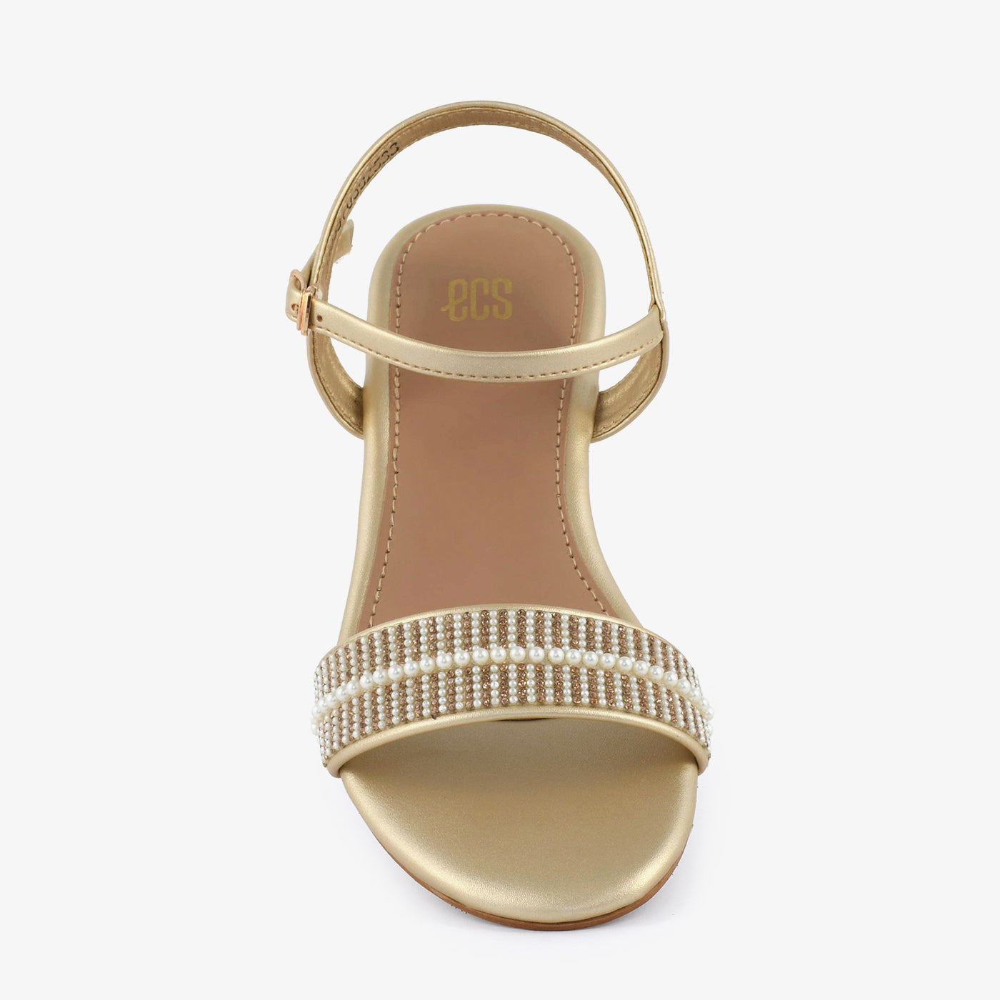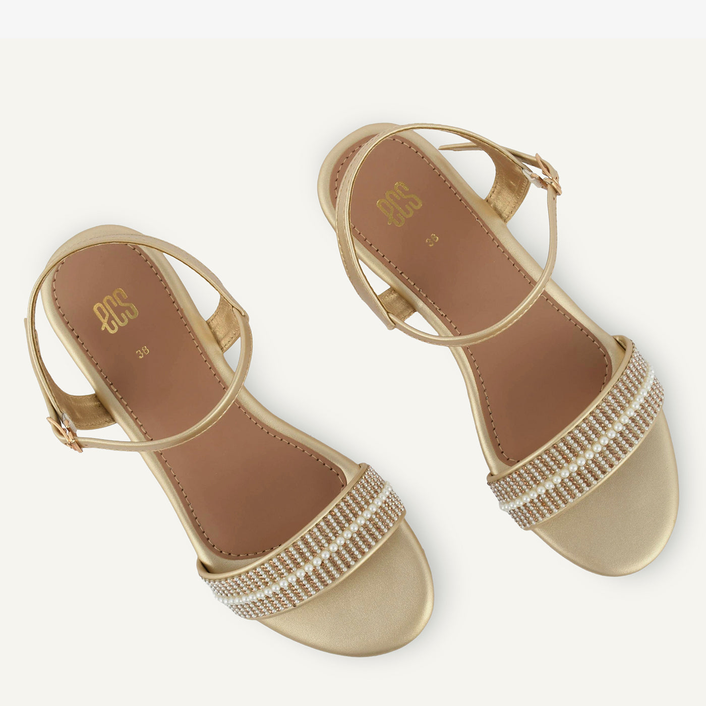 Minimal yet elegant, this ankle-strap sandal is adorned with fine pearls for a subtle touch of grace. Its soft inner lining ensures comfort through long celebrations. A perfect blend of simplicity and luxury, ideal for daytime festivities or evening events.