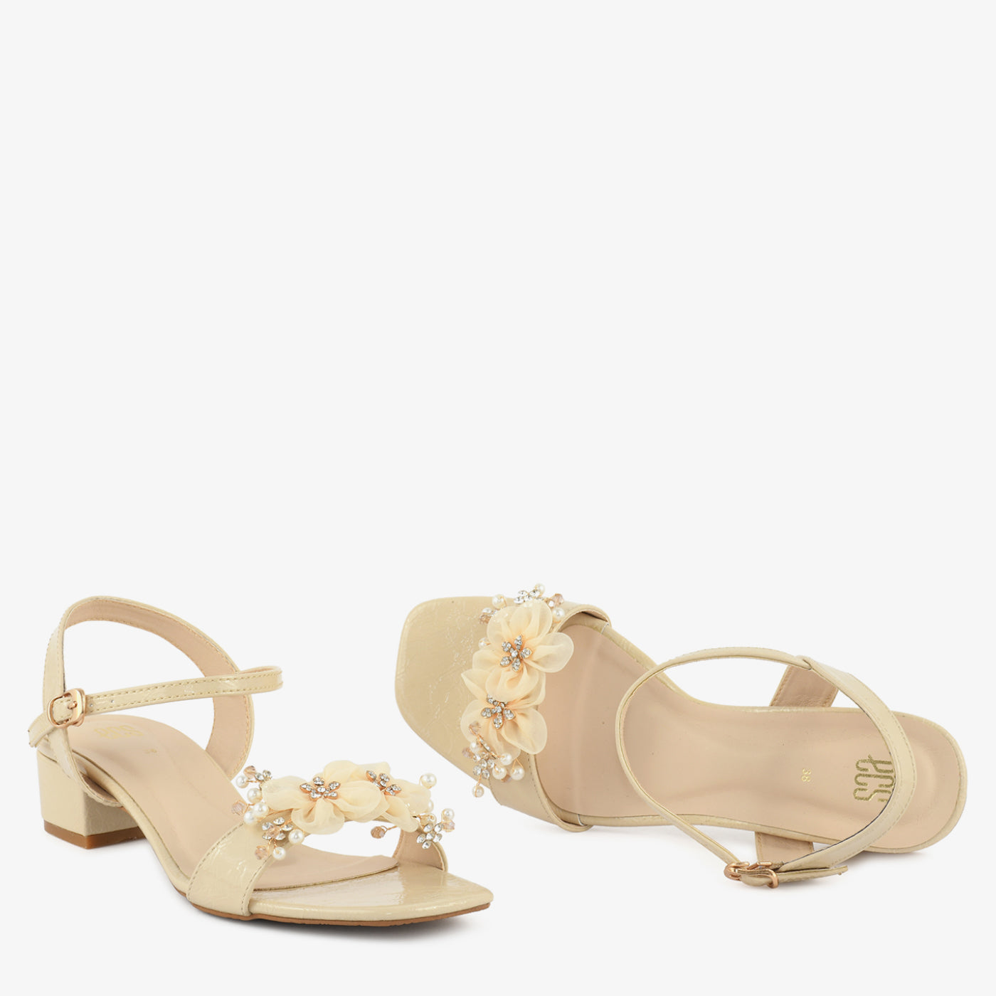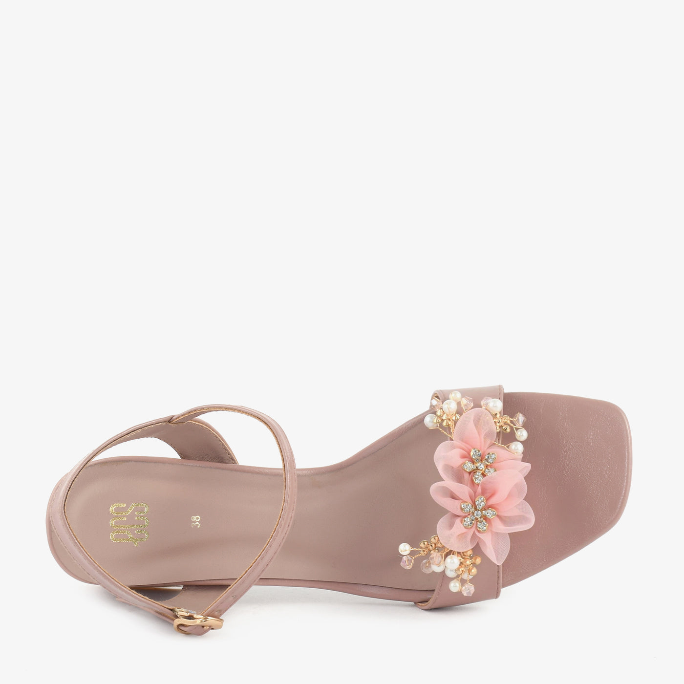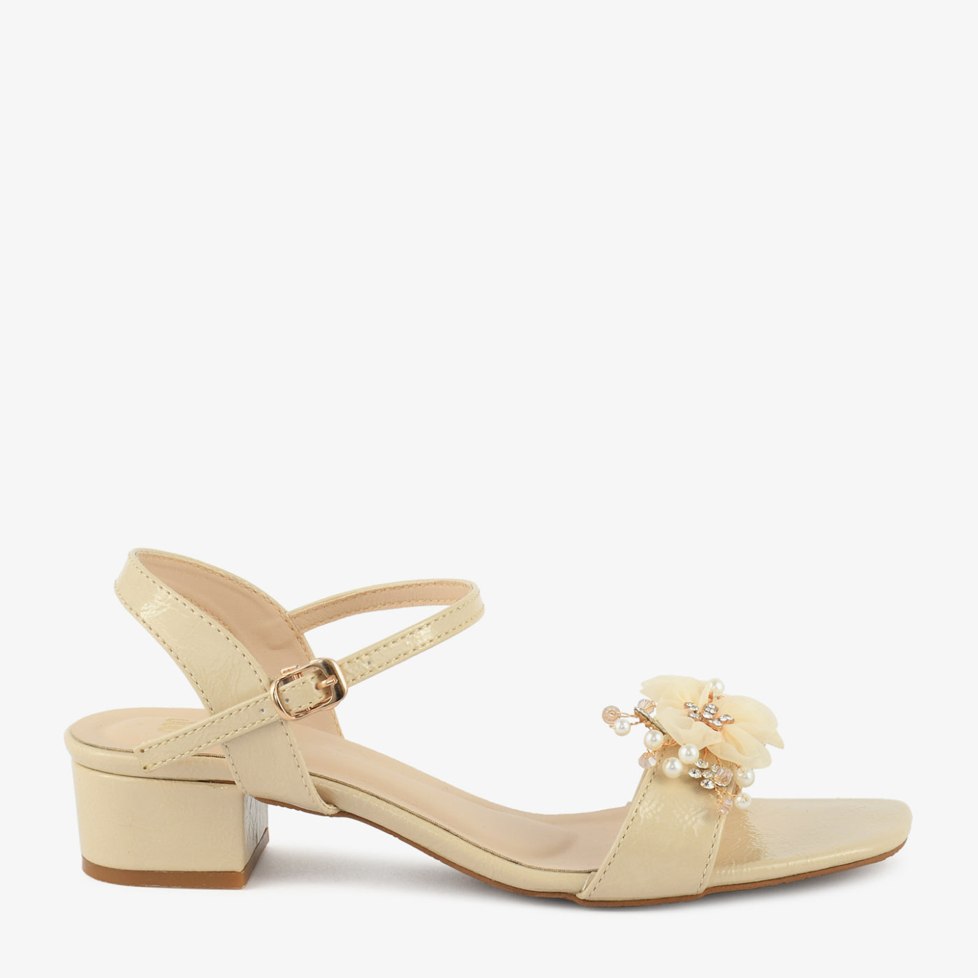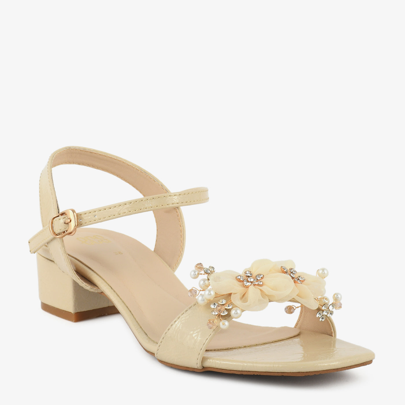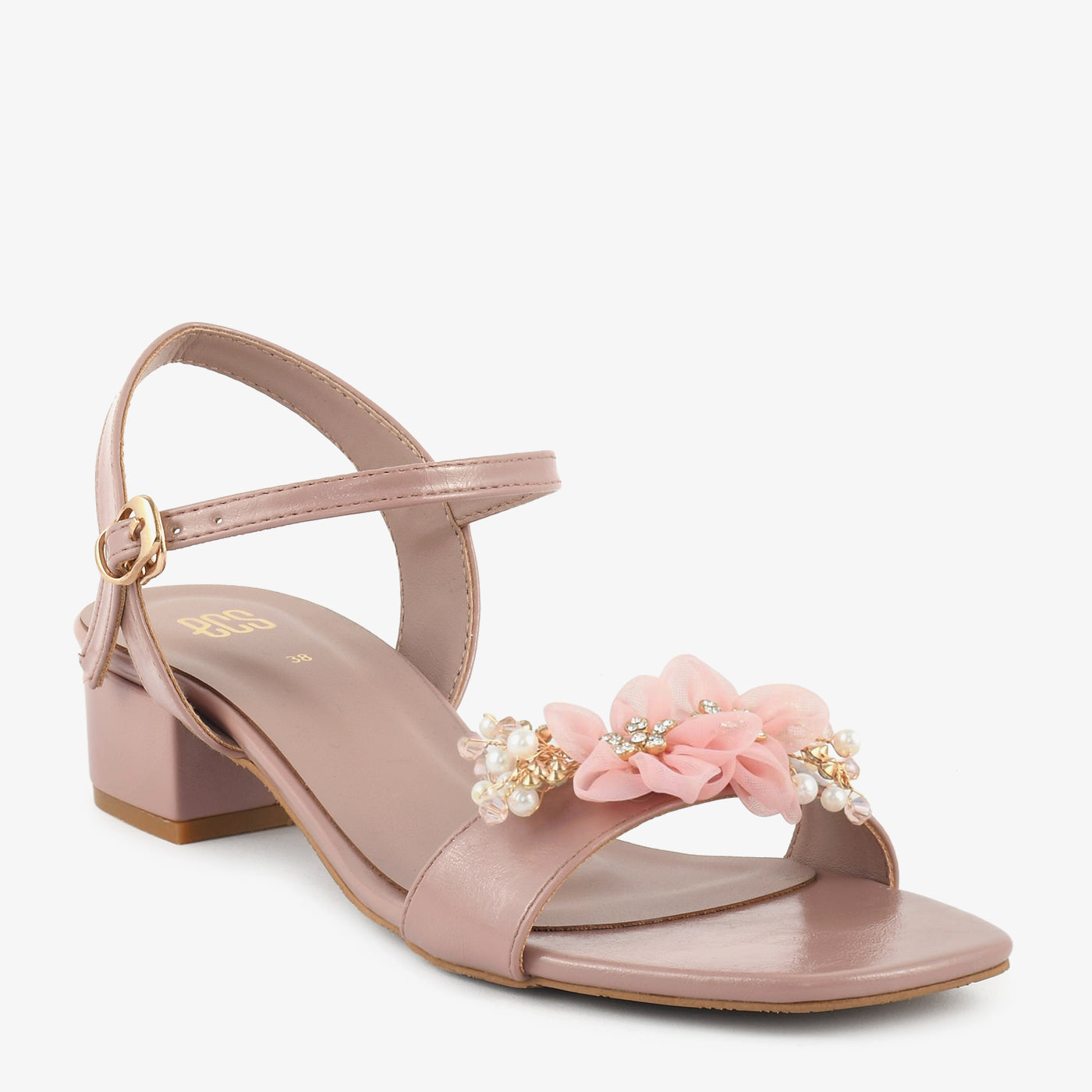 This stylish women’s sandal features a delicate floral embellishment accented with decorative beads for a graceful and feminine appeal. The open-toe design enhances comfort while maintaining a refined and elegant look. A supportive block heel provides stability and balanced elevation for confident walking. Designed with a cushioned footbed, it ensures comfort during extended wear. The adjustable ankle strap offers a secure fit and easy fastening. Ideal for festive occasions, parties, and special gatherings, this sandal blends elegance with everyday wearability.