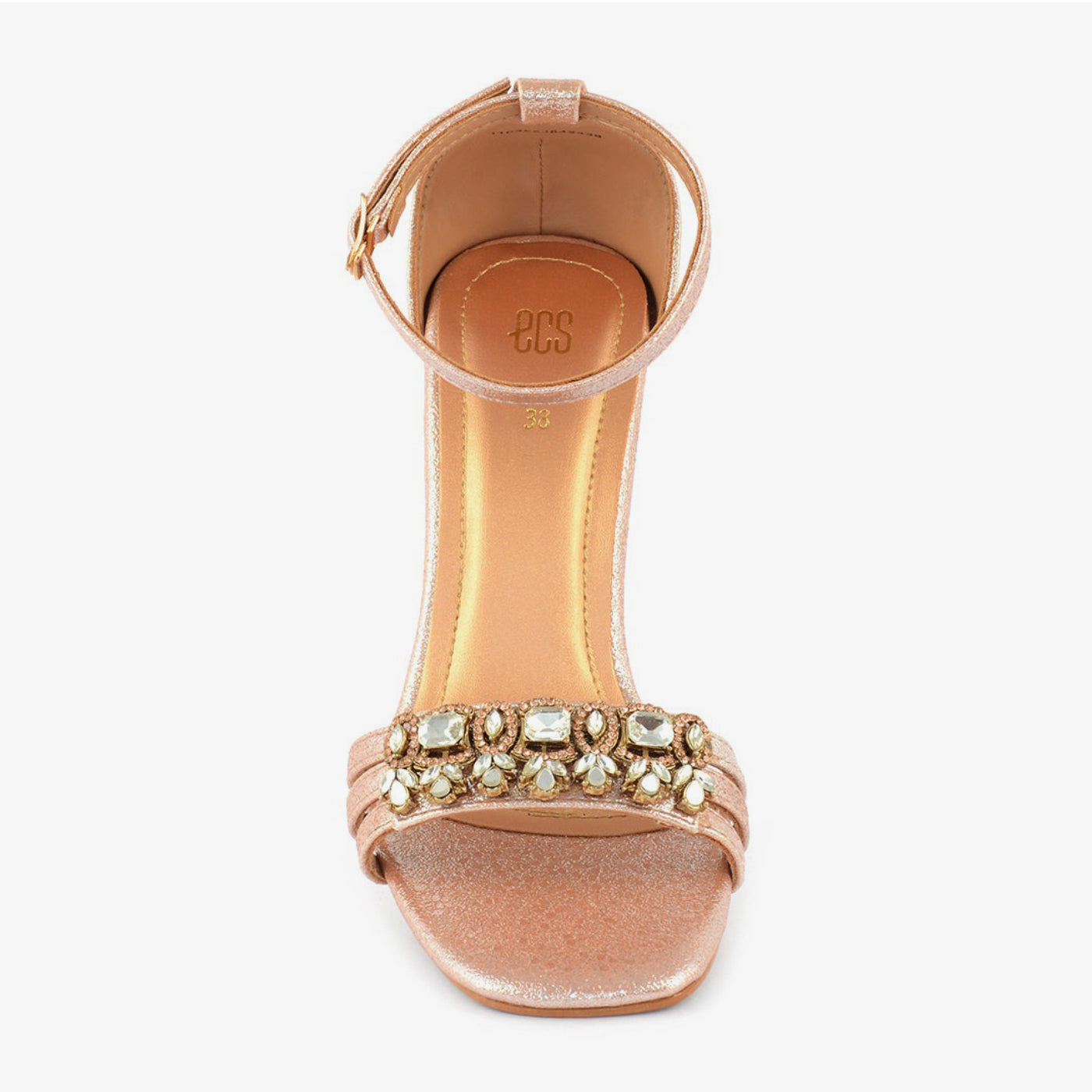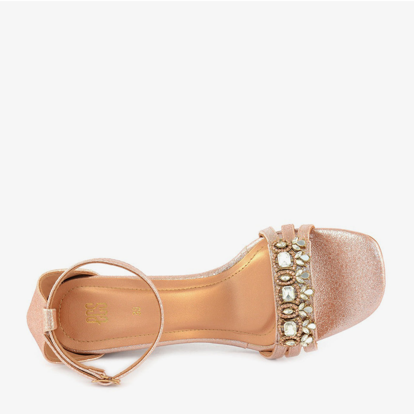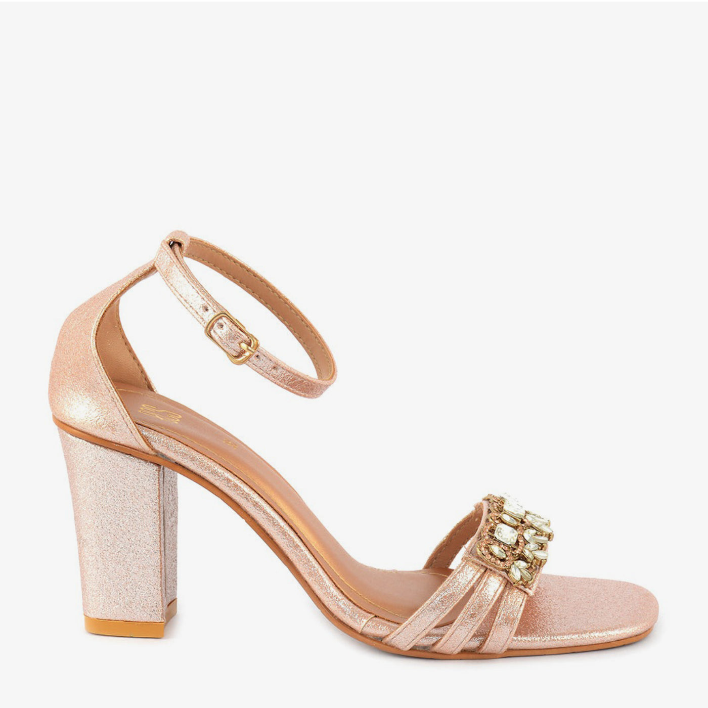 Step into dazzling charm with these glitter rose gold block heels. Featuring a wide, embellished toe strap and a comfortable block heel, they offer a sophisticated statement for festive occasions. Perfect for adding a touch of elegant sparkle to your ensemble in Lahore.