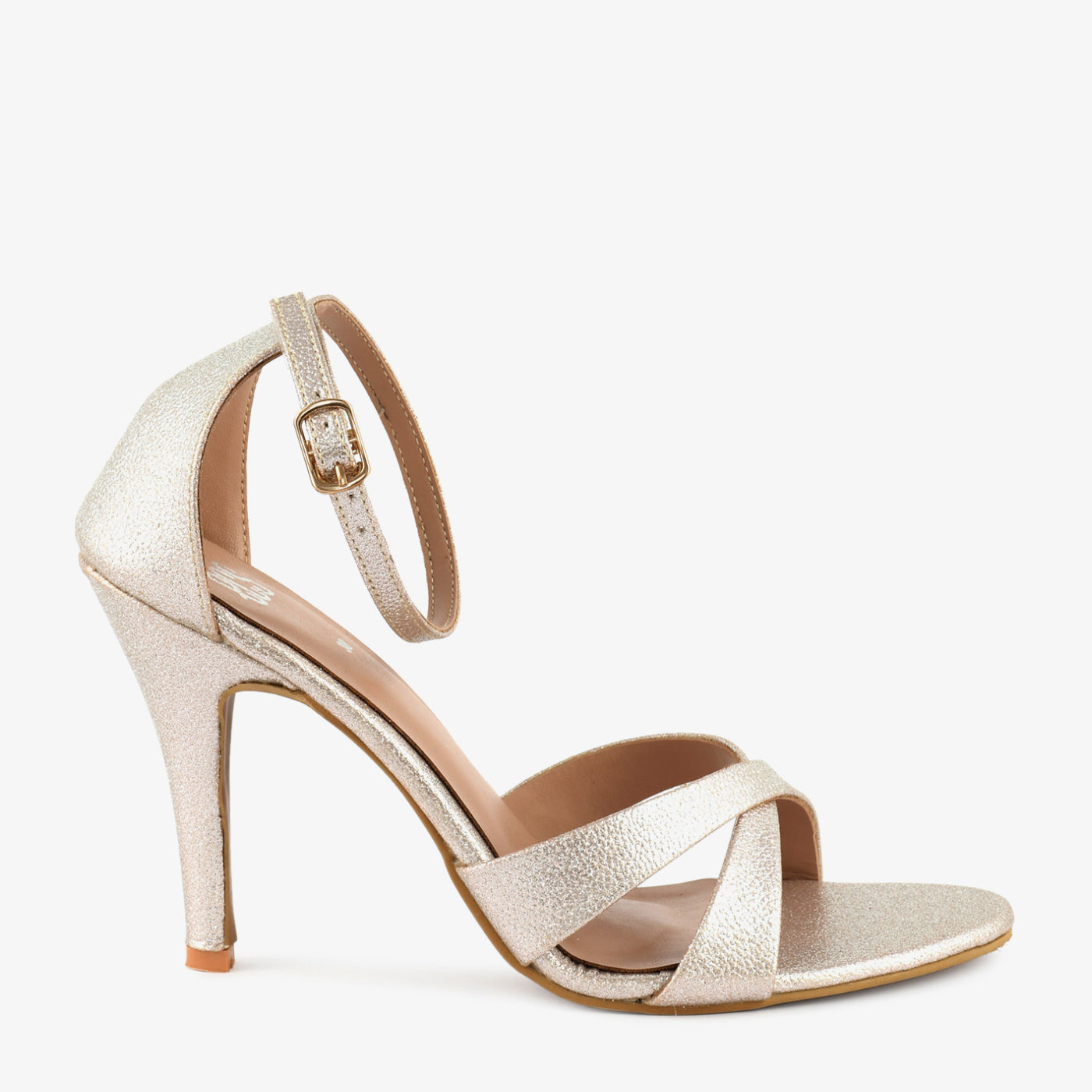 A statement-making high heel with crisscross straps and a bold ankle buckle. The shimmering texture adds a glamorous finish, perfect for evening wear. Designed to offer both height and comfort, making it ideal for festive celebrations. Sophisticated, stylish, and confident — all in one.