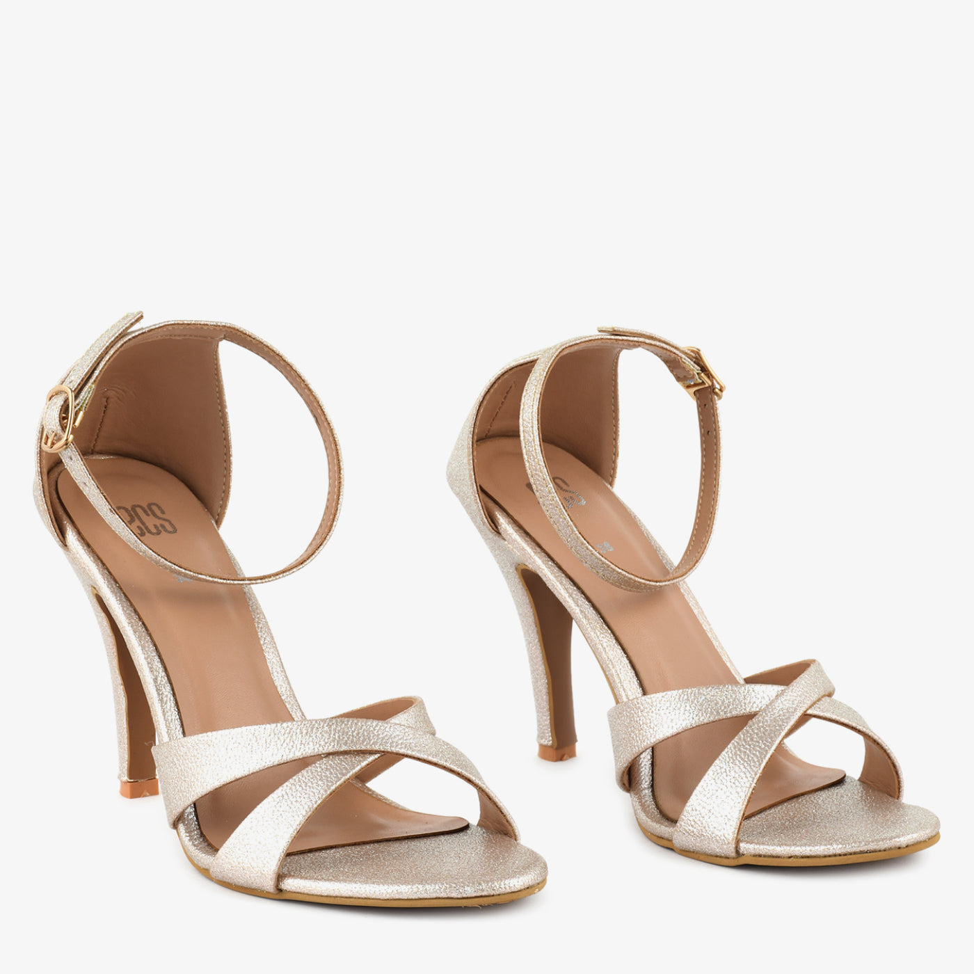 A statement-making high heel with crisscross straps and a bold ankle buckle. The shimmering texture adds a glamorous finish, perfect for evening wear. Designed to offer both height and comfort,...