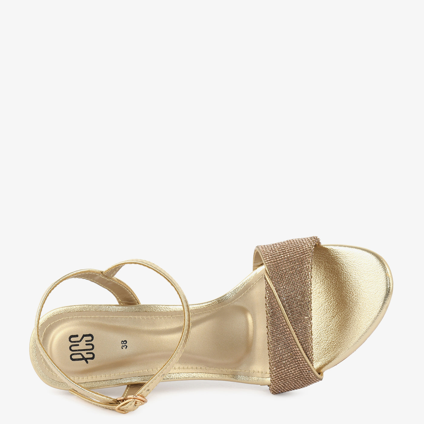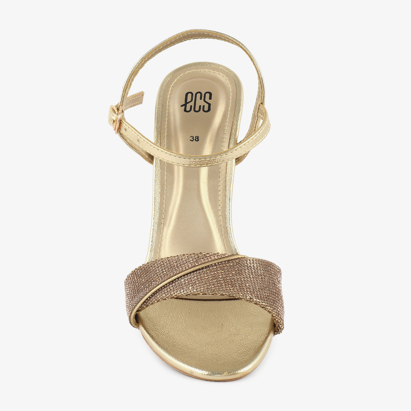 A glamorous heel designed with shimmering straps and a sleek silhouette. Perfect for elevating festive and evening outfits with its radiant charm.