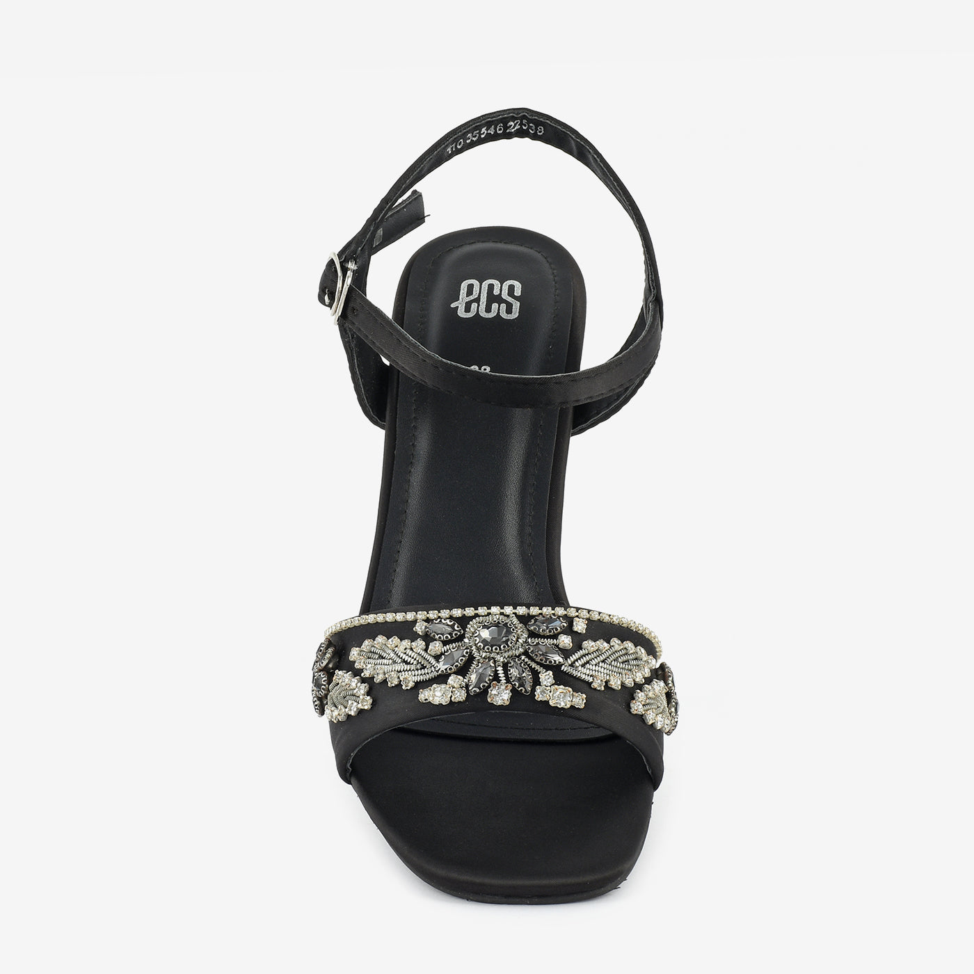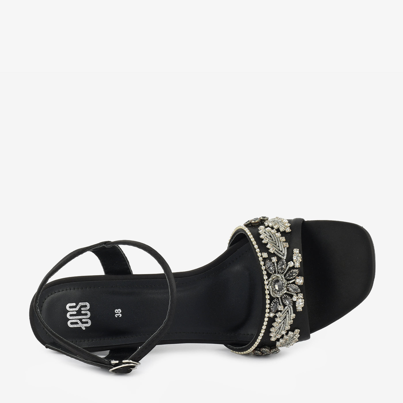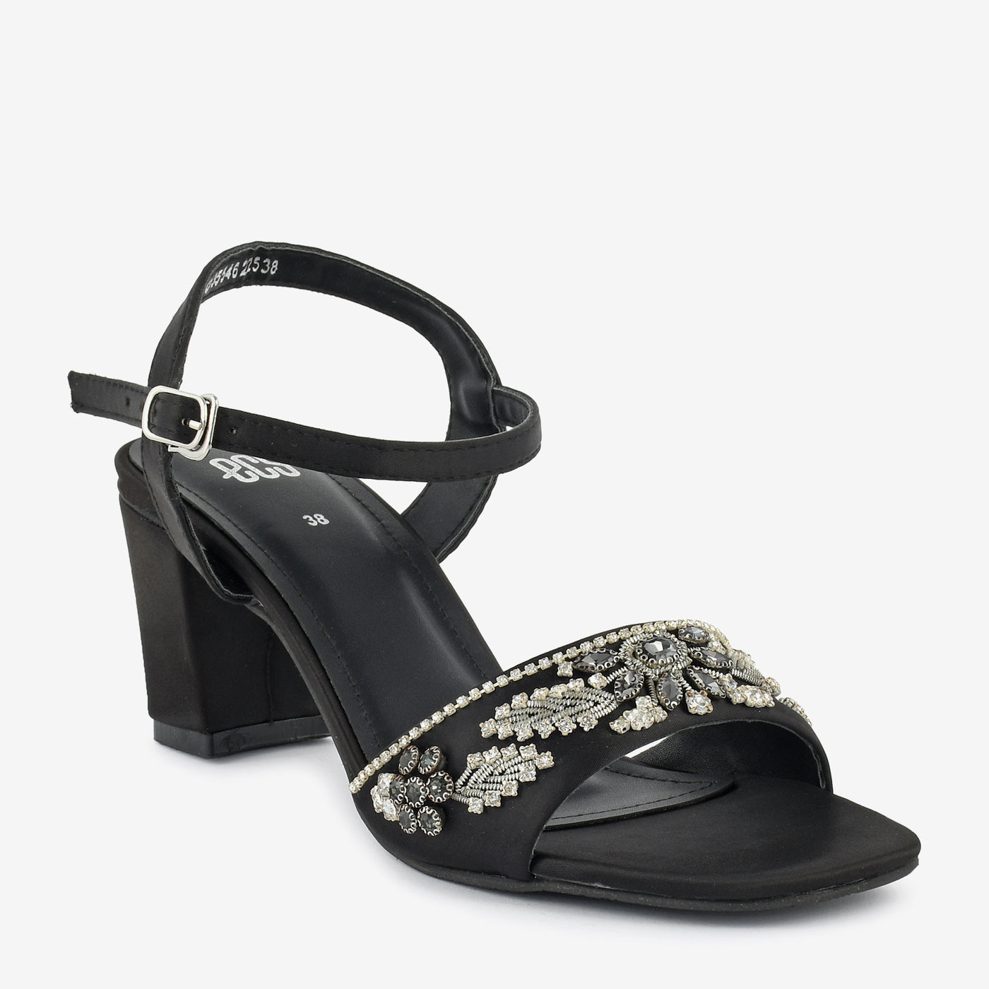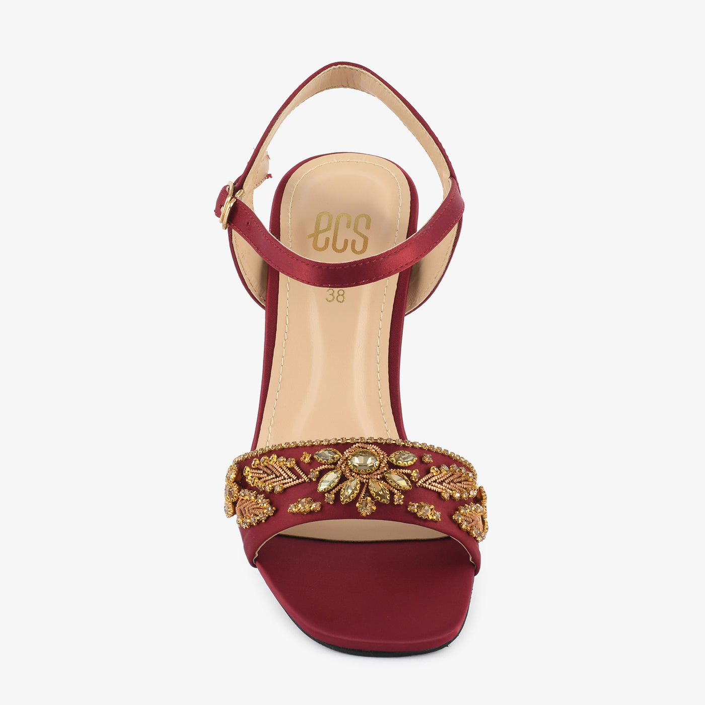 This regal maroon heel is embellished with intricate golden embroidery, making it a standout choice for festive occasions. The ankle strap adds both grace and support.