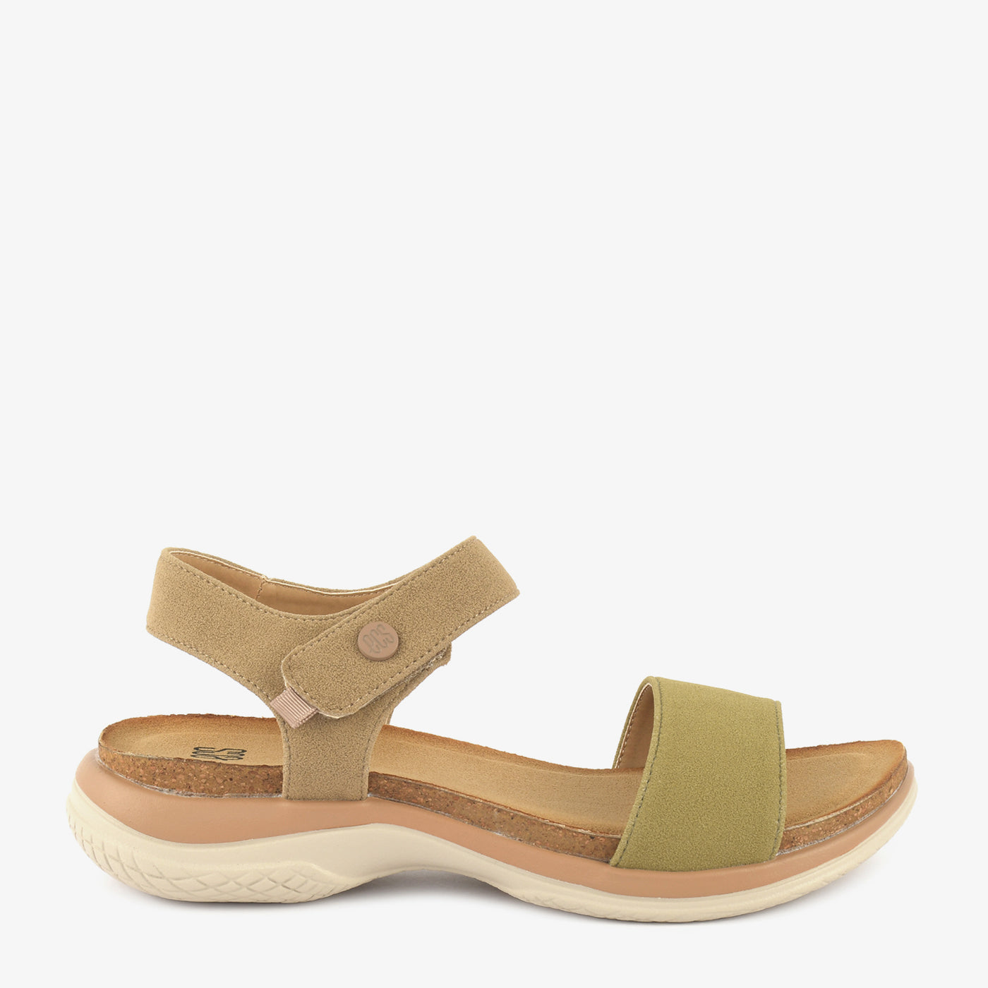 - Design: Contoured footbed, cork-look trim, flexible sole