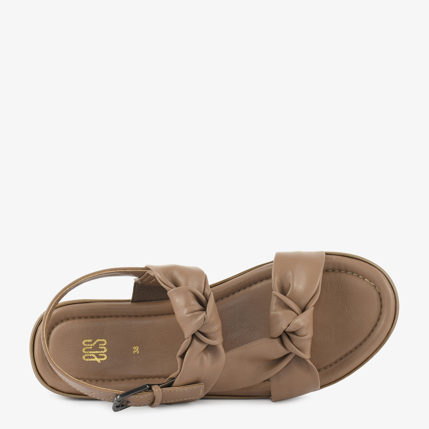 Experience comfort with style in this cushioned sandal featuring soft knotted straps and an adjustable buckle. Perfect for all-day wear while maintaining a chic look.