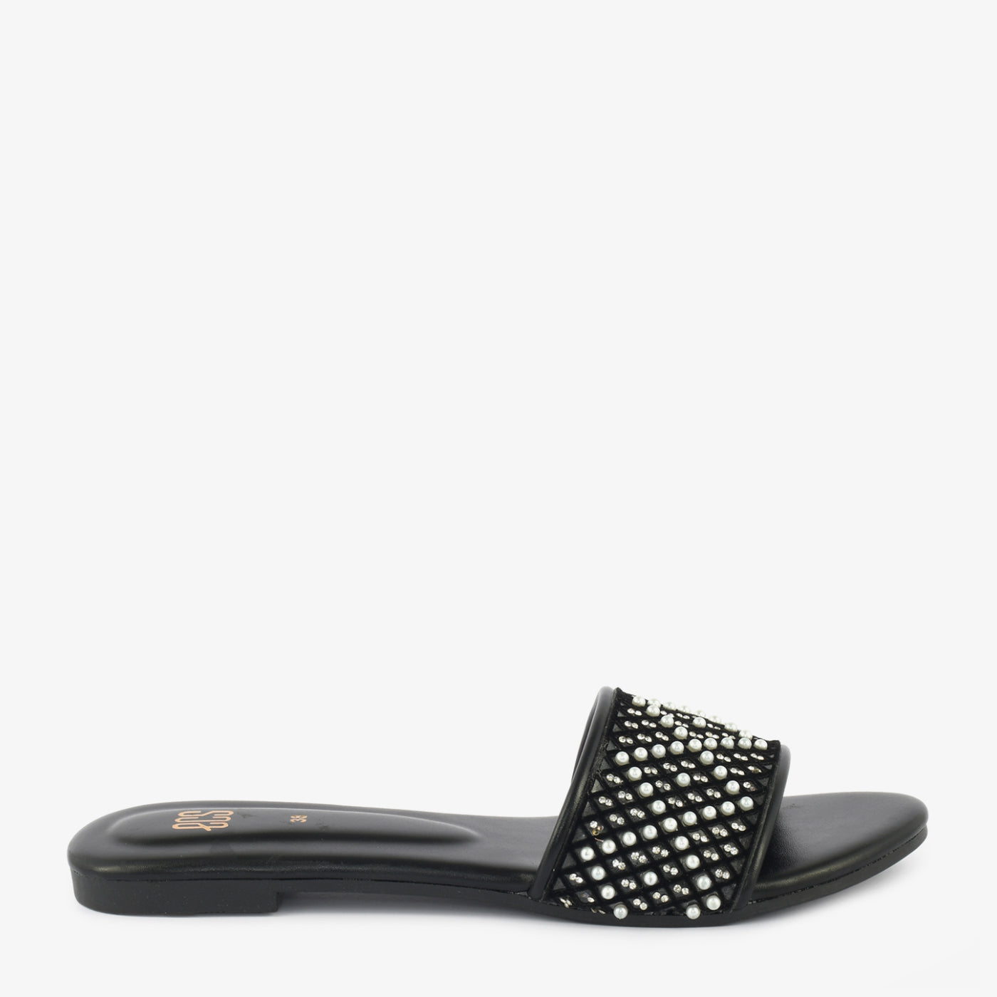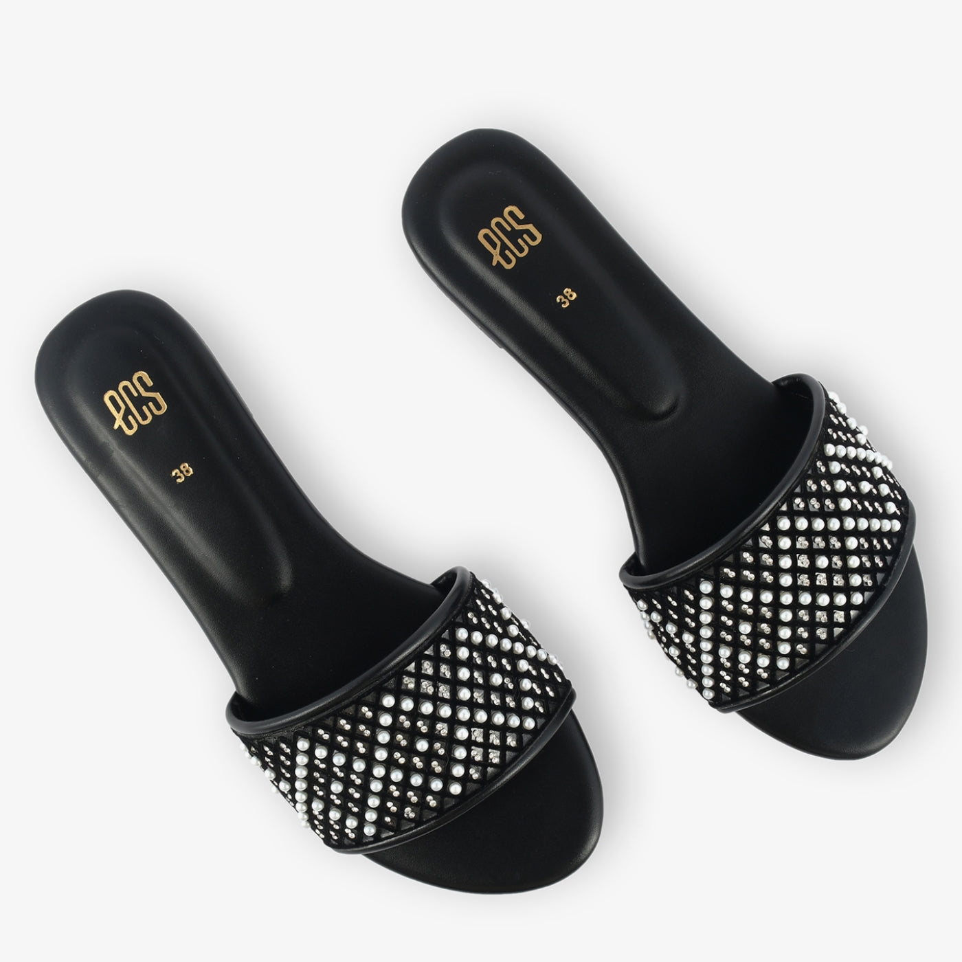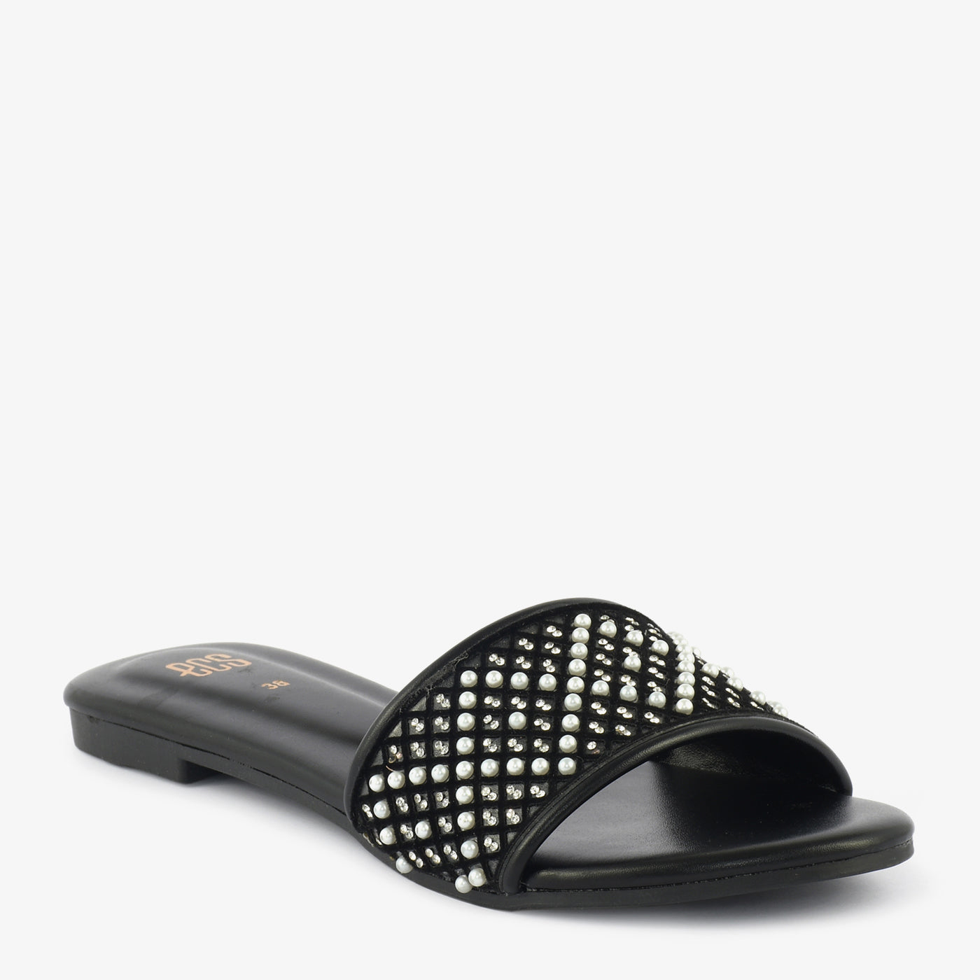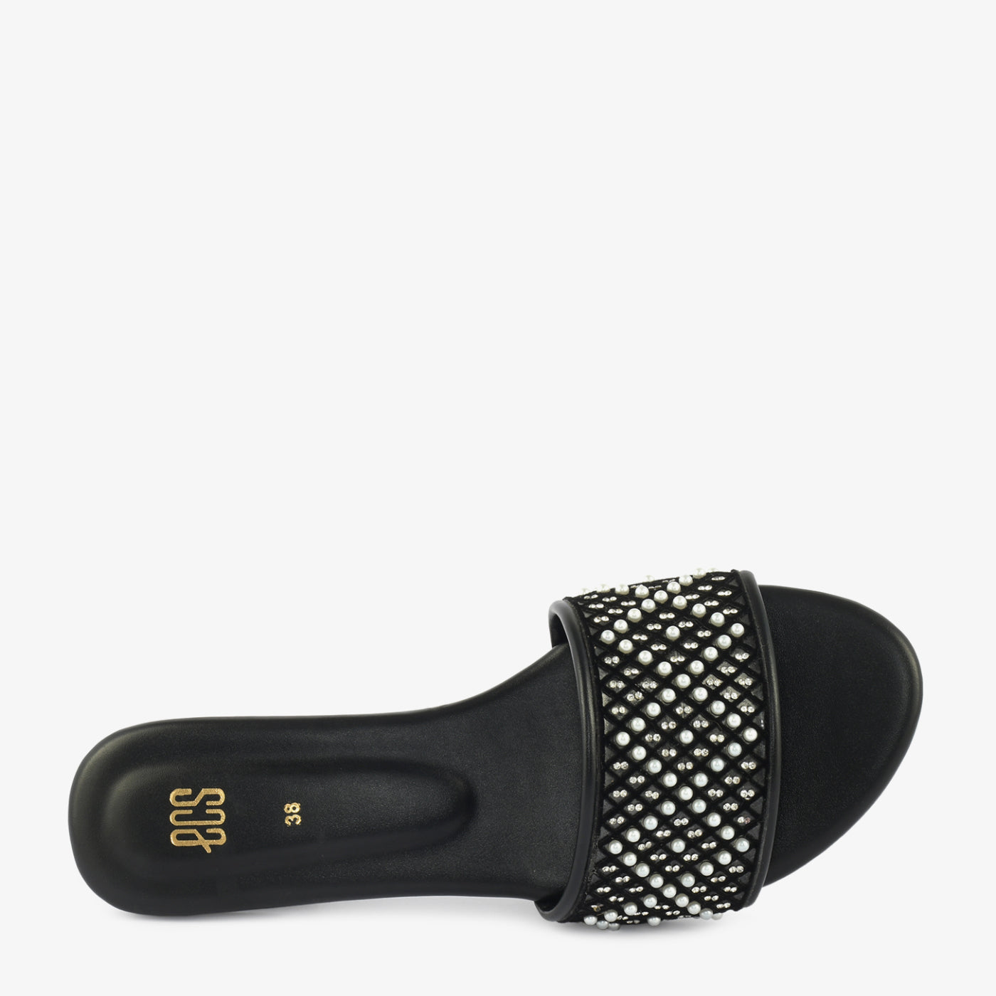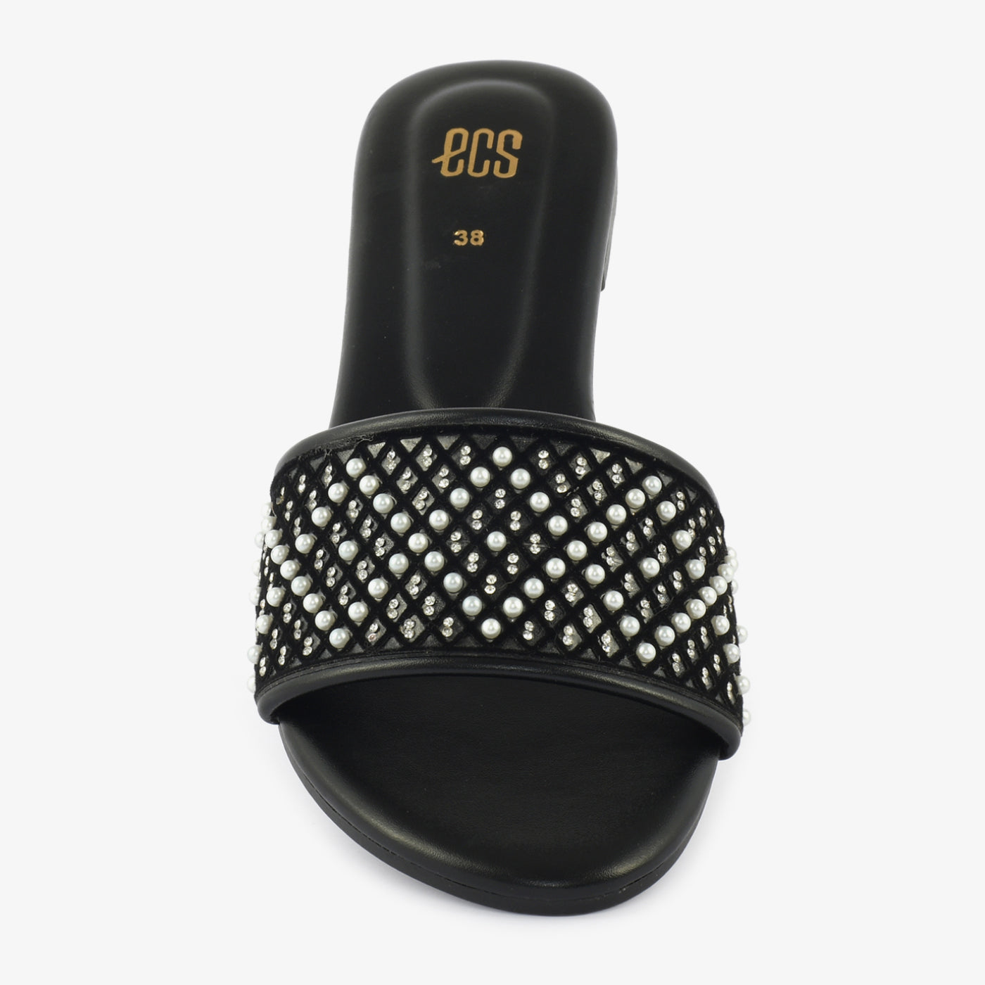 Pearl Lattice presents a touch of classic elegance with these embellished slide. Featuring a lattice pattern of pearls and sparkling accents, they add a touch of sophistication to your casual look. Step into comfort and style with a hint of refined charm.