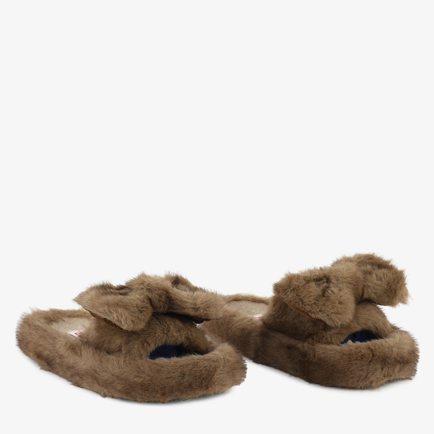 A fun character-inspired slipper designed for warmth and comfort. The fluffy ear detail adds a cute, playful twist perfect for cozy at-home days. Soft cushioned sole gently supports feet while keeping them warm. Easy slip-on structure ideal for everyday home use. Perfect for winter lounging and relaxed indoor activities.