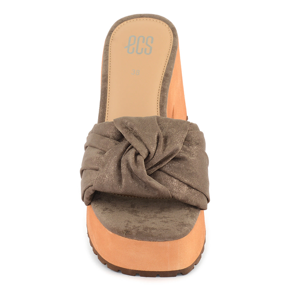 Designed for comfort, these slippers feature no specified upper or lining material. The 3-inch heel provides added height. Featuring a slip-on fastening for convenience. Clean with a damp cloth and store away from direct sunlight.