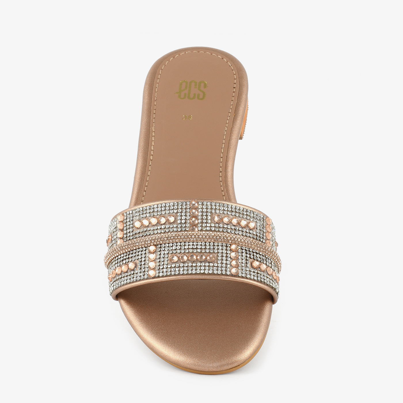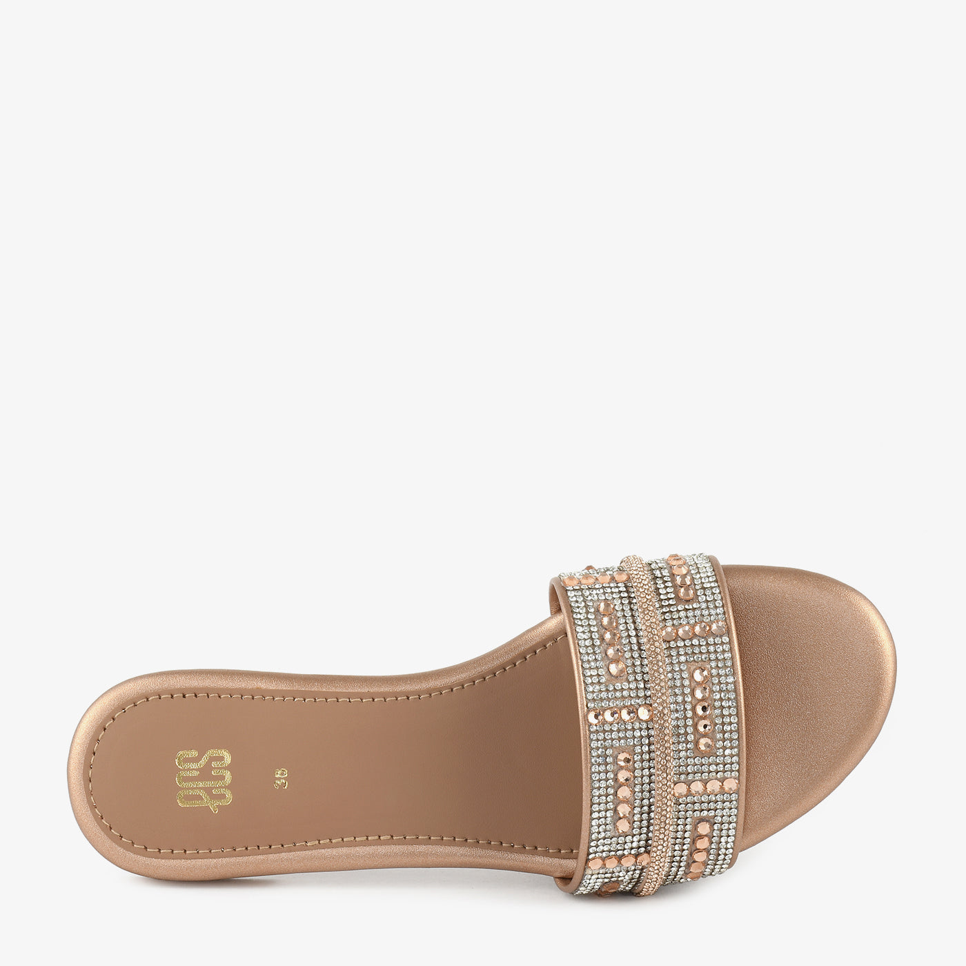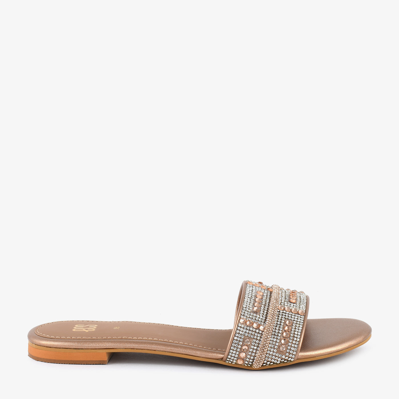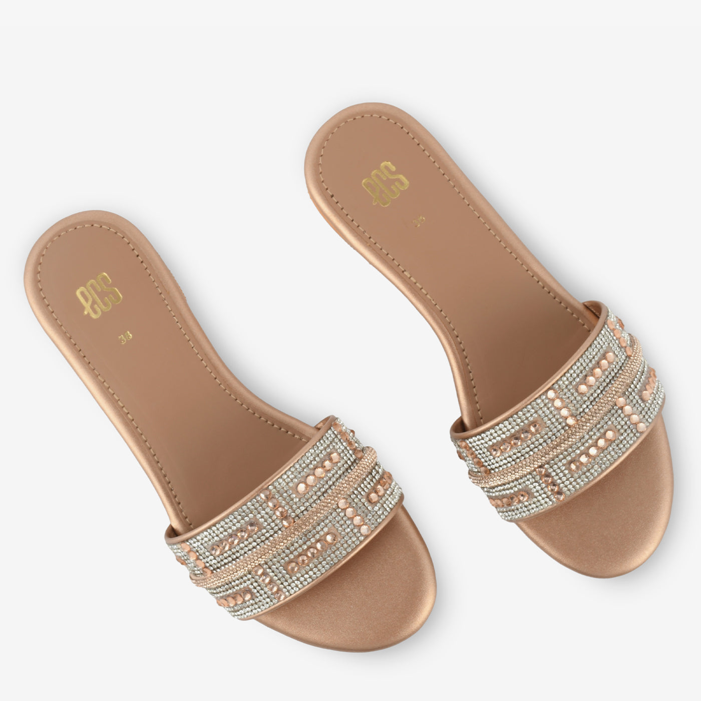 A chic slip-on sandal beautifully adorned with shimmering stones and beads. Its smooth finish and cushioned sole ensure comfort and luxury for all-day wear. The delicate embellishments make it perfect for festive occasions and evening gatherings. Ideal for those who love effortless style with a touch of sparkle.