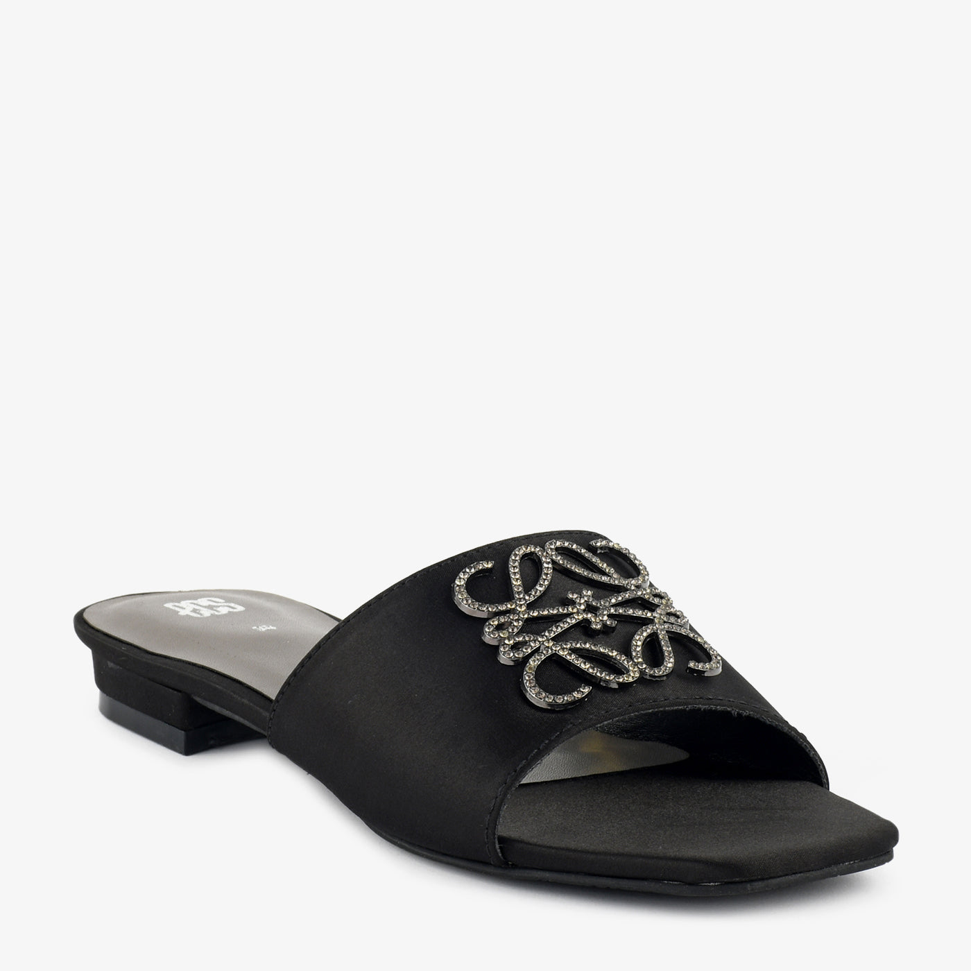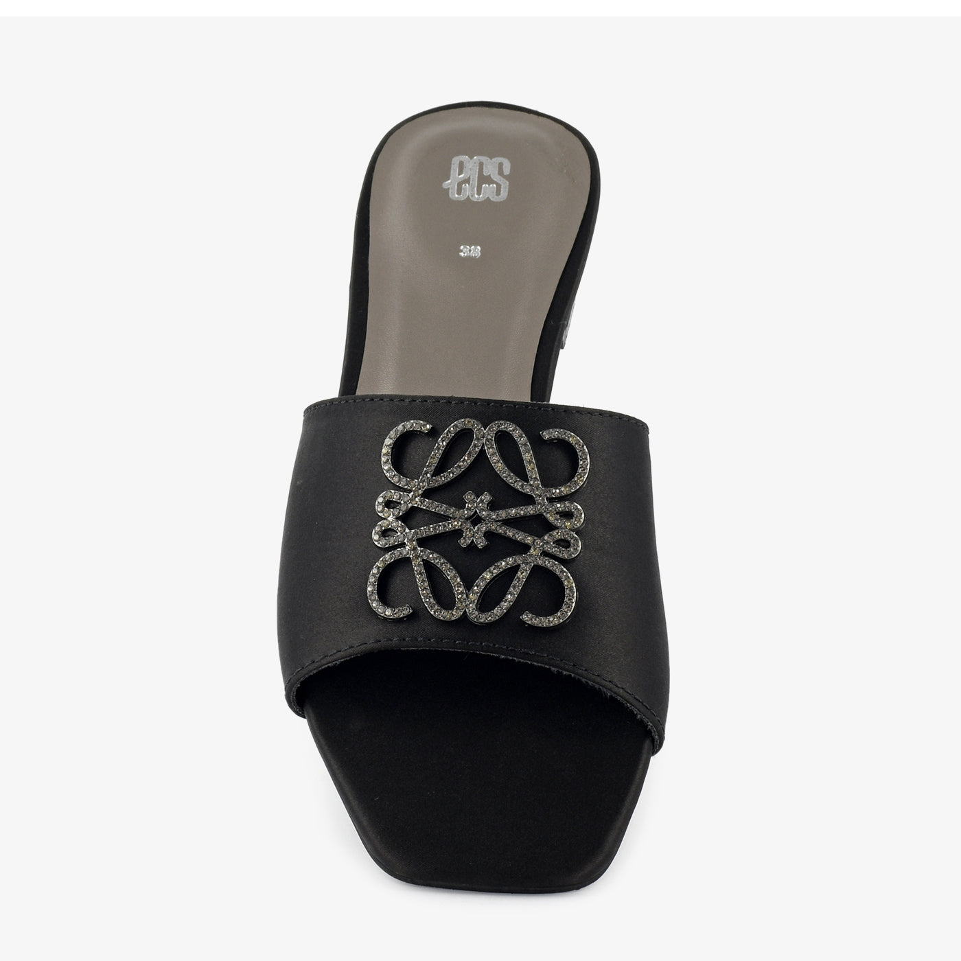 • Design: Script-embellished slipper