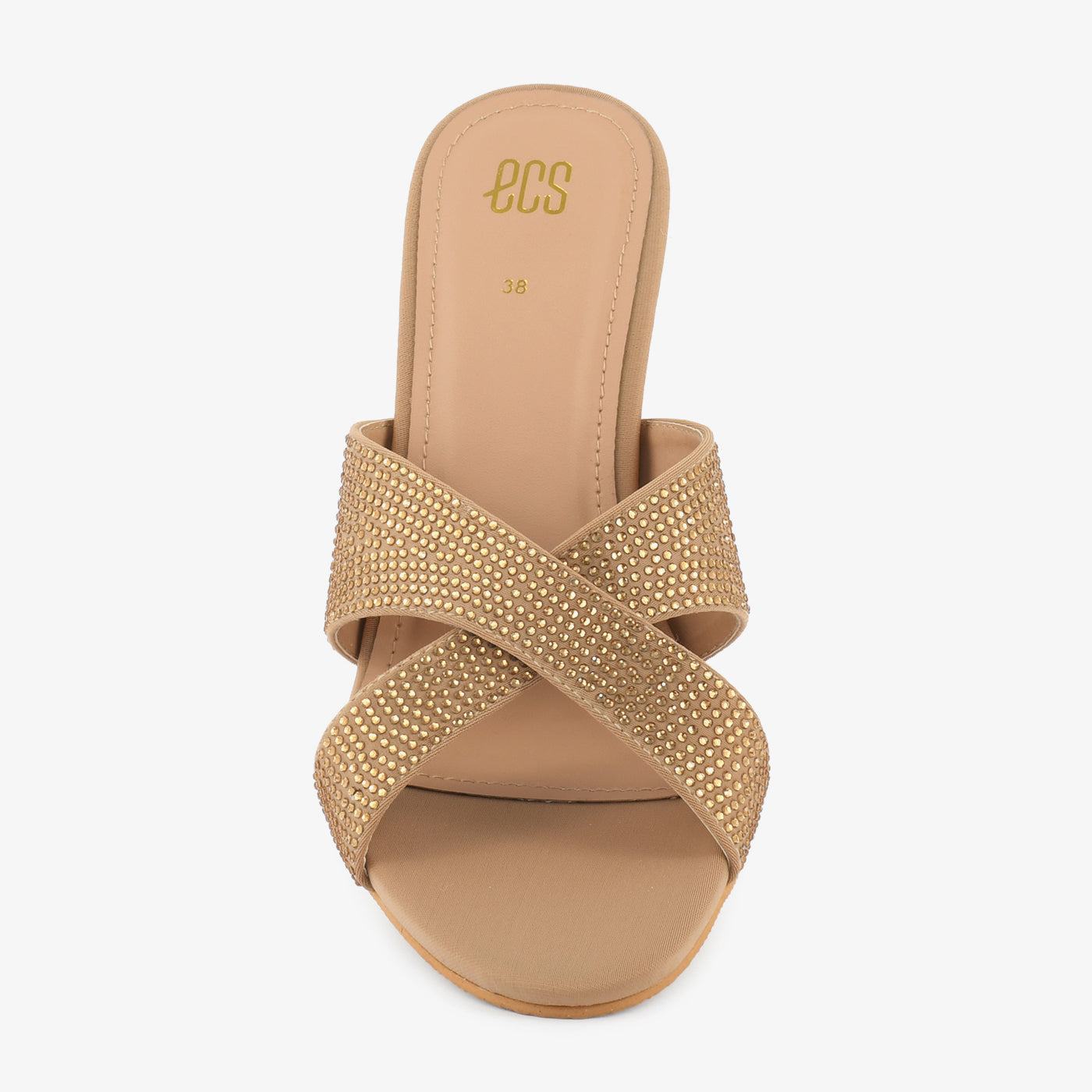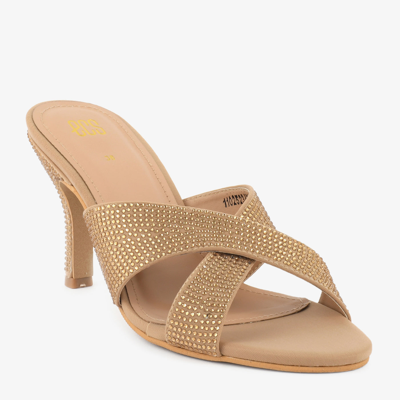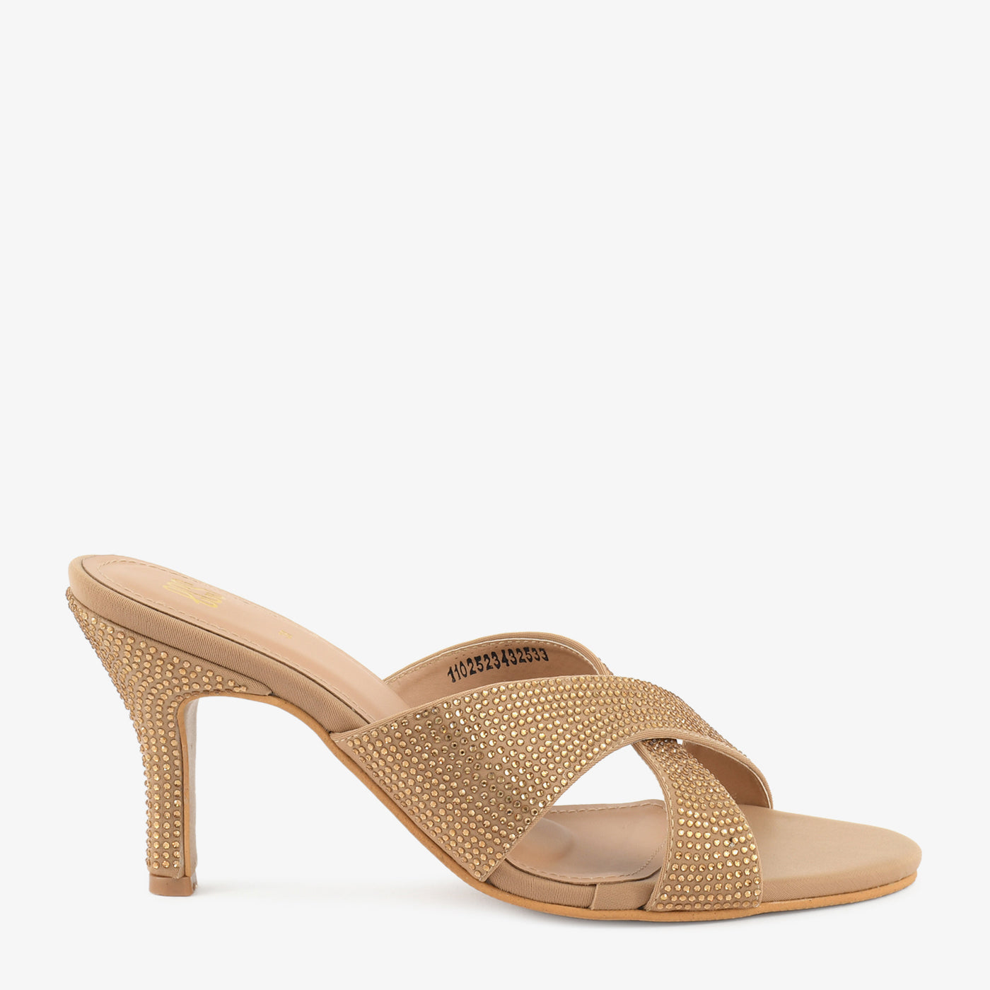 An elegant slip-on with intricate beadwork forming circular and linear patterns, designed for festive charm. The broad low heel adds just the right lift while keeping it comfortable for long wear. A beautiful pick for evening gatherings.