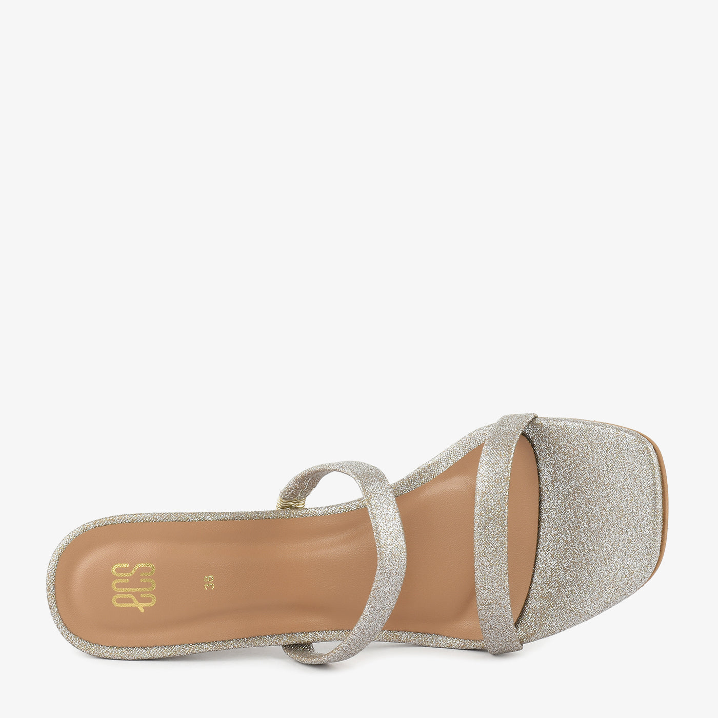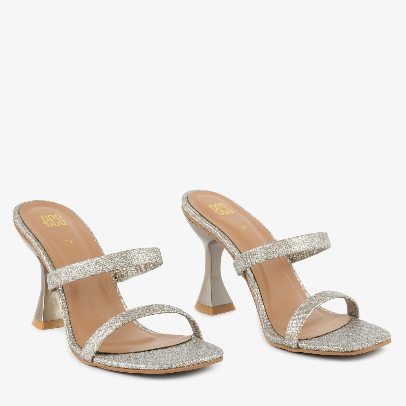 An elegant dual-strap heel designed to bring modern sophistication to your wardrobe. Its subtle shimmer and sleek silhouette offer both style and stability. Ideal for festive evenings or formal gatherings that call for refined charm.