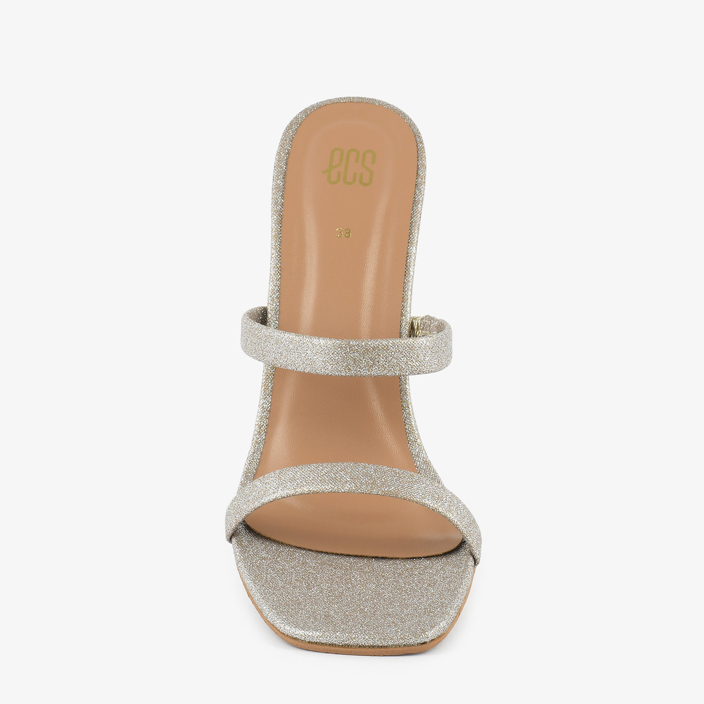 An elegant dual-strap heel designed to bring modern sophistication to your wardrobe. Its subtle shimmer and sleek silhouette offer both style and stability. Ideal for festive evenings or formal gatherings...