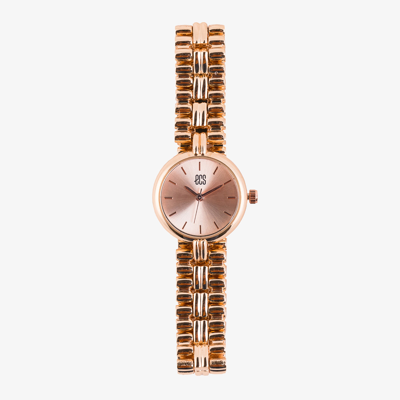 The Harmony watch features a clean, minimalist design with a warm rose gold-tone finish. The smooth bracelet and sleek dial create a sophisticated and understated look.