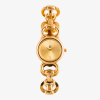 Accent your wrist with this elegant women's watch. It features a gleaming silver-toned band composed of stylish interlocking oval links, leading to a classic round white dial with minimal hour markers, offering a sophisticated and versatile accessory.