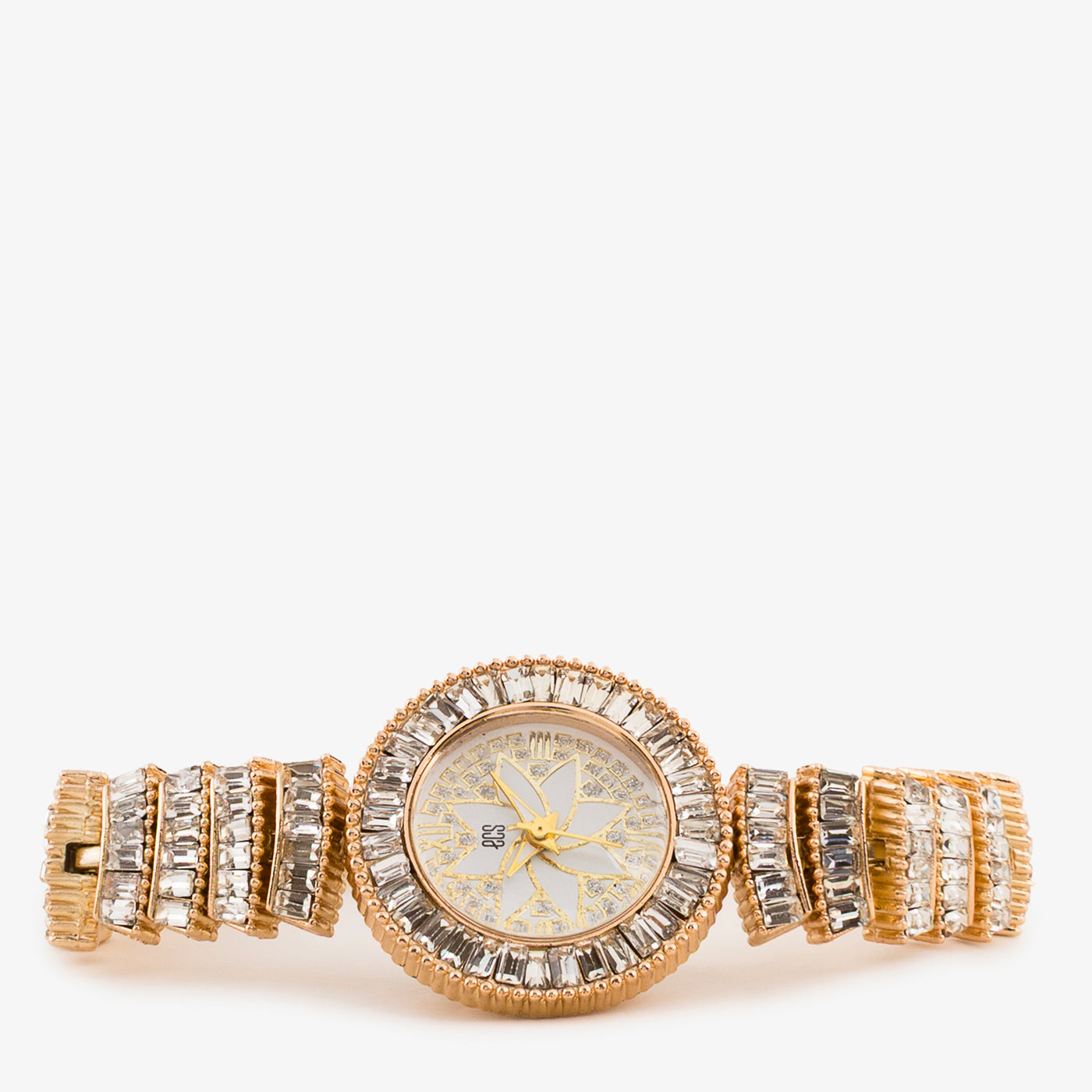 - Material: Metal bracelet with detailed crystal embellishments