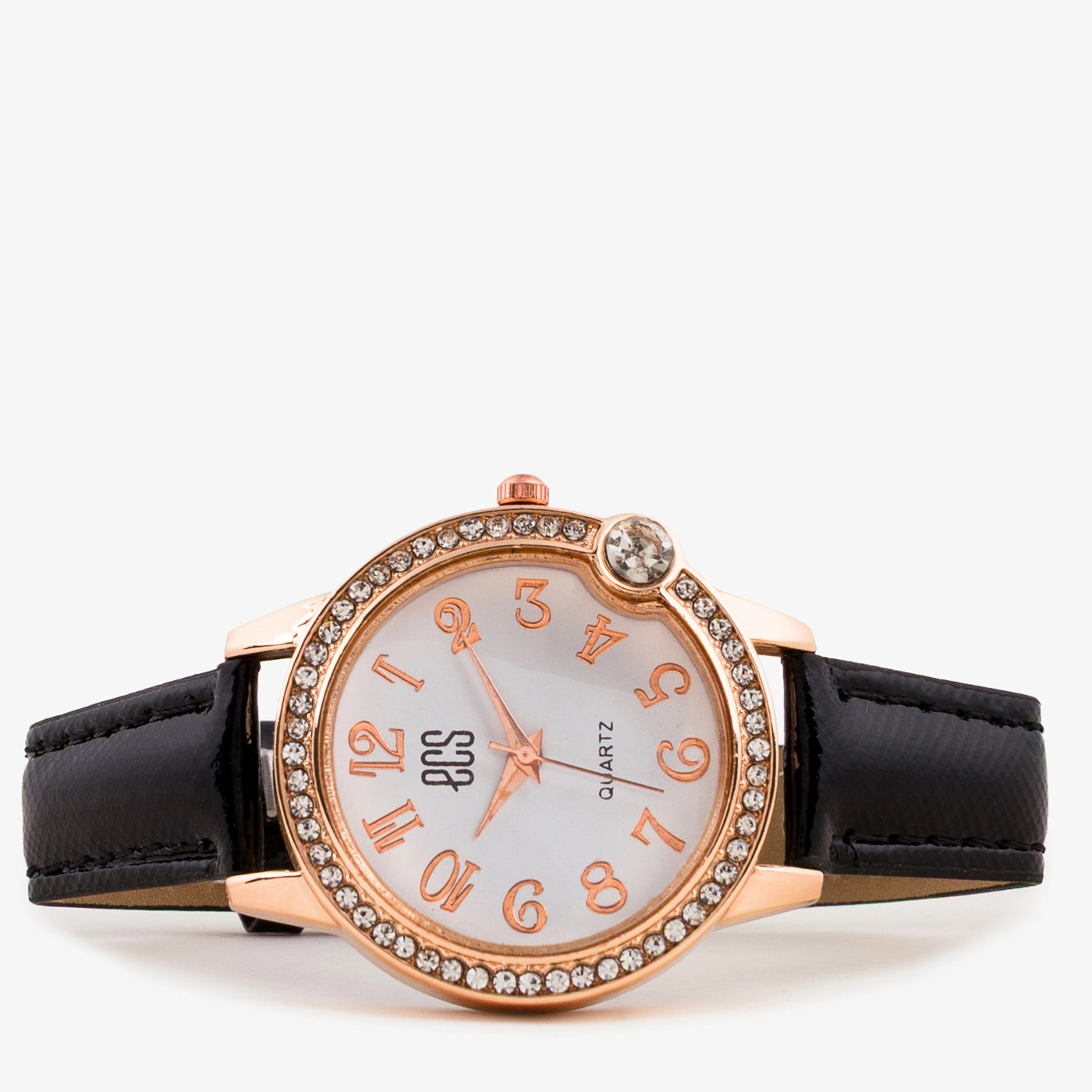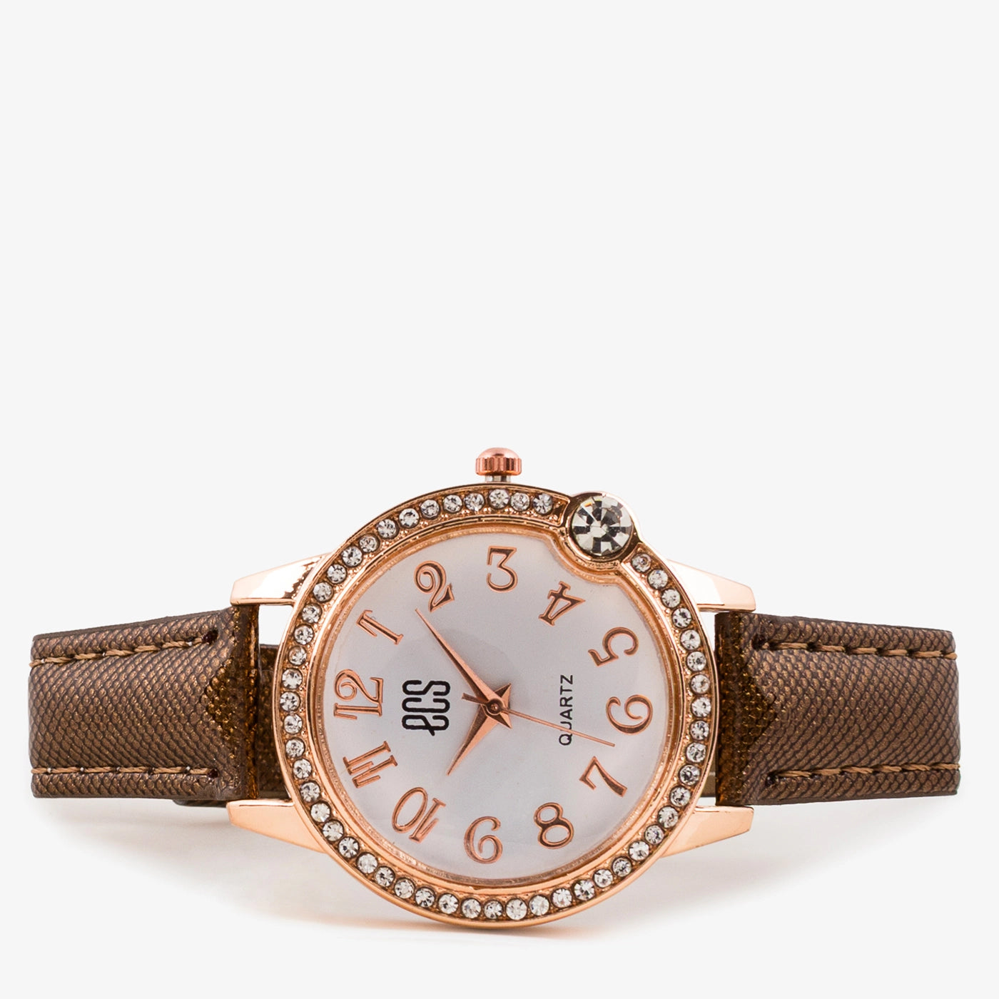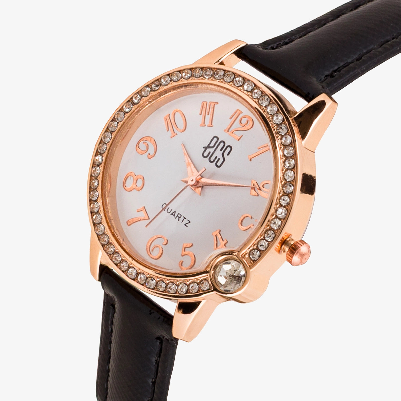 This elegant wristwatch is thoughtfully designed to blend classic charm with everyday sophistication. The round dial features clear numeric markers for easy readability, framed by delicate crystal detailing that adds a refined decorative touch. A smooth, comfortable strap ensures a secure fit for all-day wear, while the precise quartz movement offers reliable and accurate timekeeping. Ideal for both daily use and special moments, this watch is a graceful addition to any accessory collection.