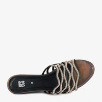 - Design: Embellished straps, Wedge heel