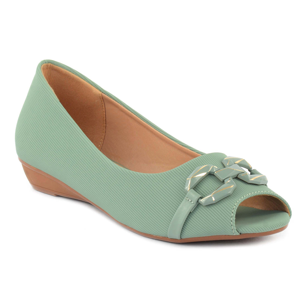 A wedge peep-toe with a ribbed pastel finish and linked chain accent that brings gentle flair to your day-to-day dressing. Stylish yet breathable for longer wear.