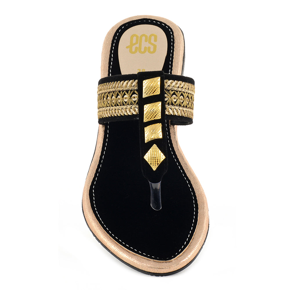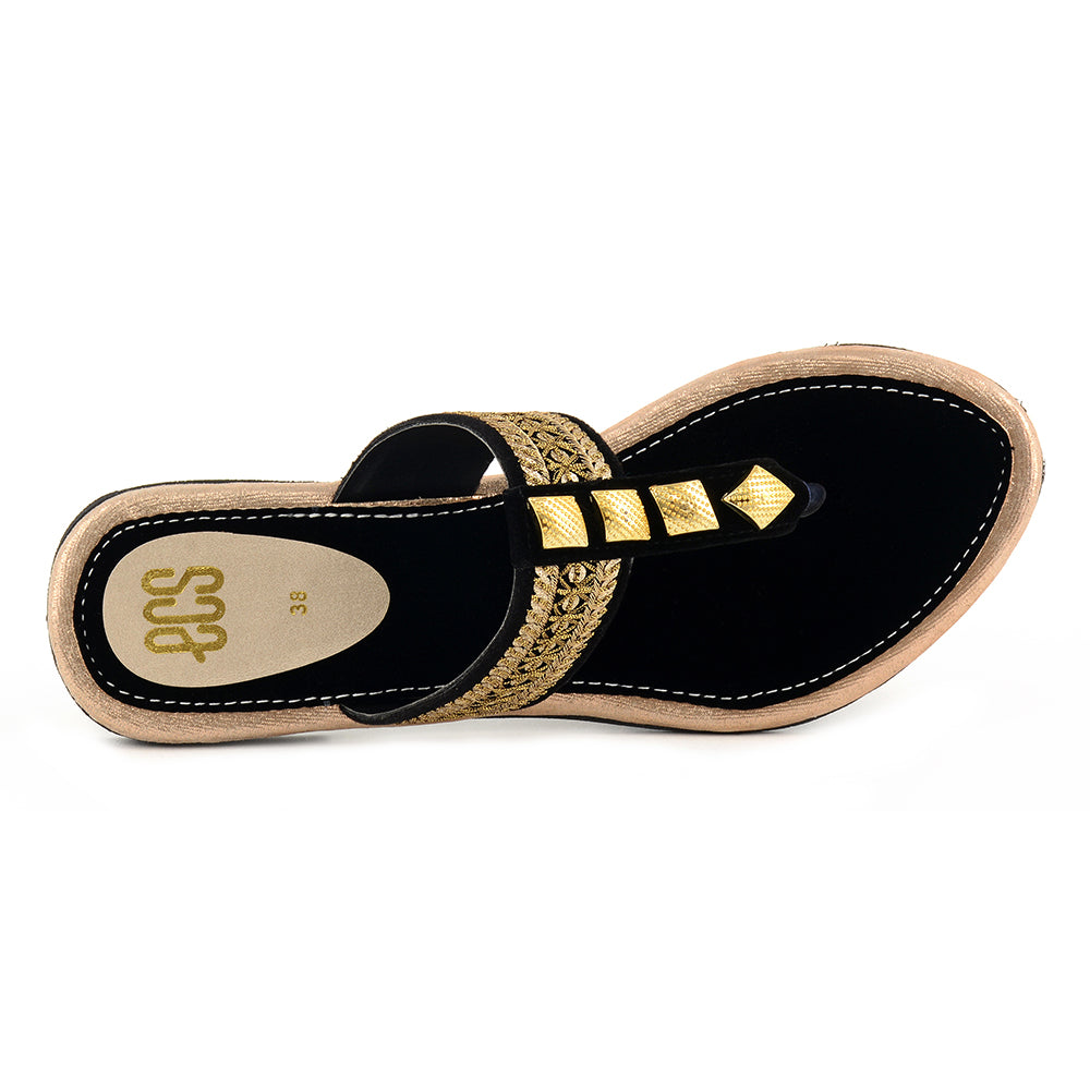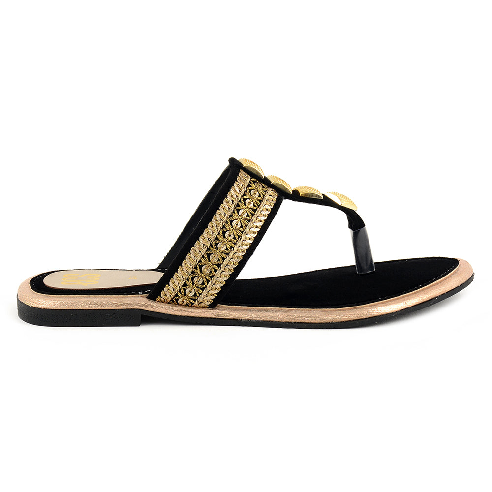 Our amazing chappal is a complete package, serving you with a brilliant combination of buckle and embroidery. It is produced from suede fabric and PVC sole for enhanced flexibility and resilience. Its round toe lights up your mood as it effortlessly supports your walk. Enjoy taking a stroll in your garden in this chappal.