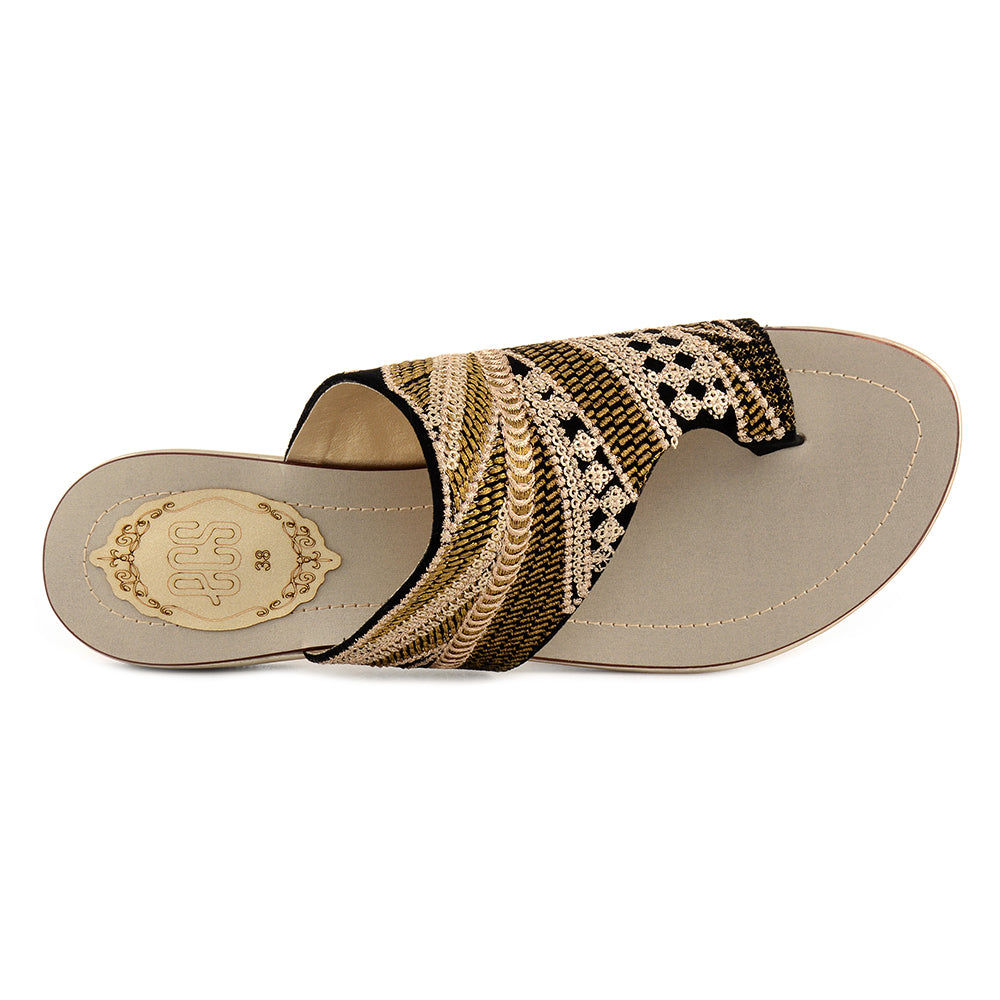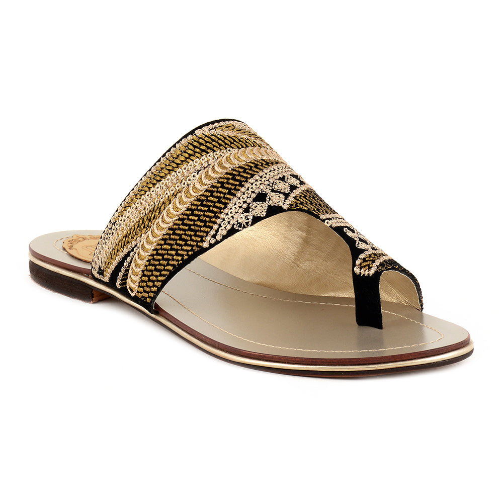 Turn heads in your direction by stepping out in your formal chappal feature high-end embroidery details. It is produced from suede fabric and rubber sole to offer remarkable durability. Wear this chappal, exhibiting a round toe, with your casual kurta and straight-fit trouser.