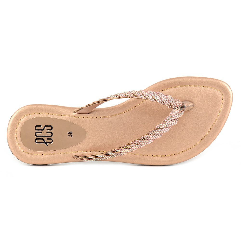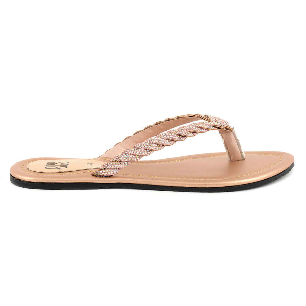 Our chappal beams a braided vamp, taking you into communion with the summer delights. Produced from polyurethane fabric and rubber sole, it guarantees strength and resilience. Its round toe will nestle you into an evergreen, comfortable walking experience. Wear this chappal with your casual outfits.