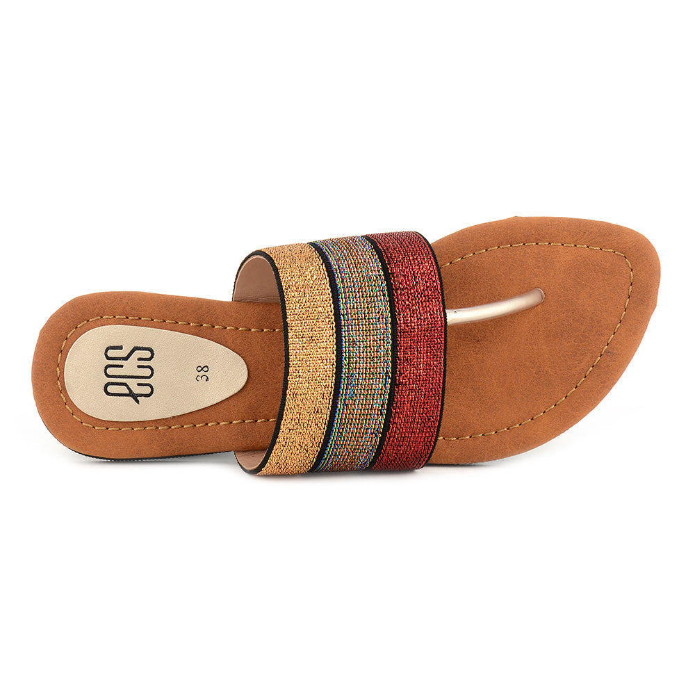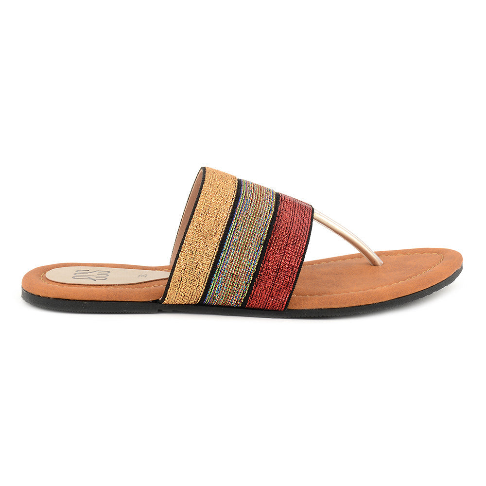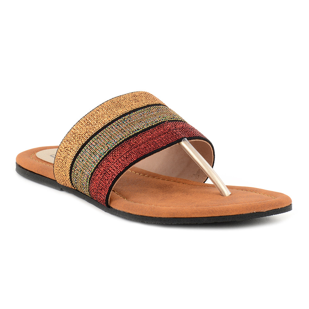 Our glittery & flashy chappal is a major head-turner. Produced from polyurethane fabric and rubber sole, it guarantees durability and tear resistance. Its round toe will nestle you into a comfortable walking experience. Wear this chappal with your casual outfits.