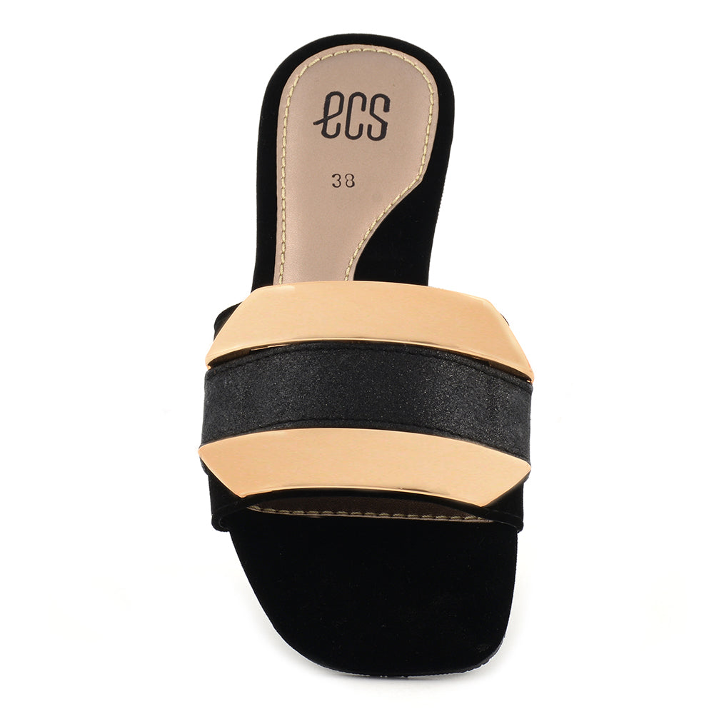 Our slipper of the first waters exhibits the beauty of a modish buckle. It is fabricated from suede and polyurethane fabrics to enhance resilience and durability. Its PVC sole offers improved flexibility to enhance your comfortability. Style its round toe with your formal dresses.