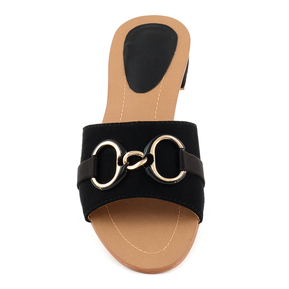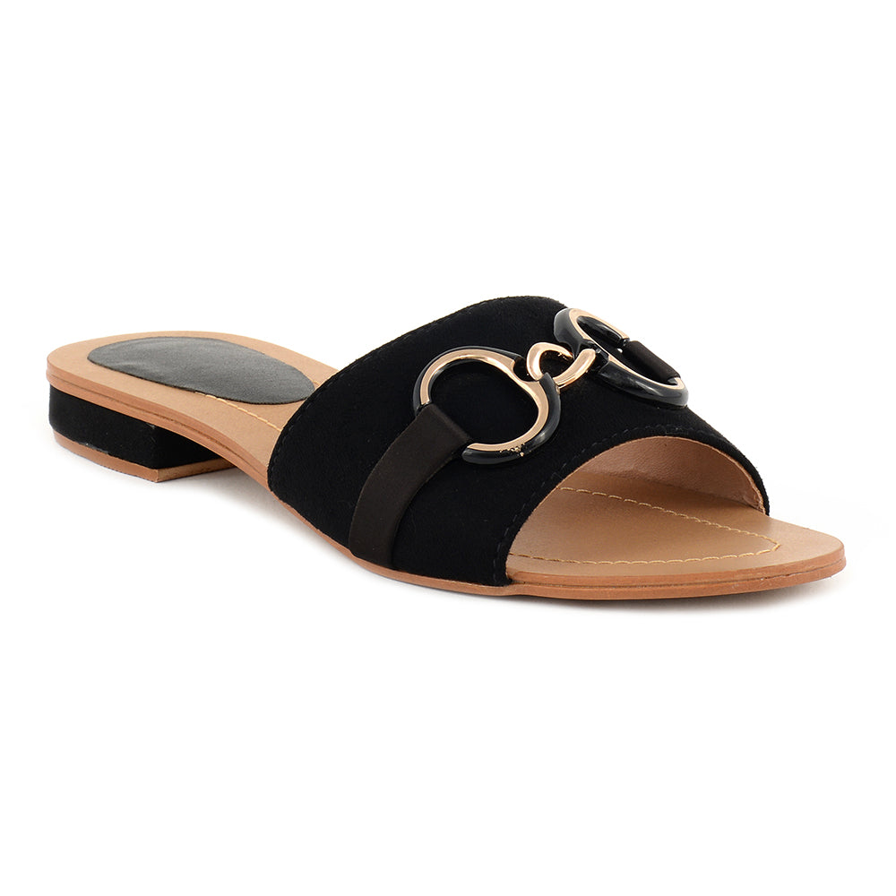 Our slipper captures the boldness of your strong opinions in its stylish buckle. Durable suede is the key material used to produce its upper. Its durable sheet sole adds value, crafted into a round toe. Style this slipper with your fancy dresses.