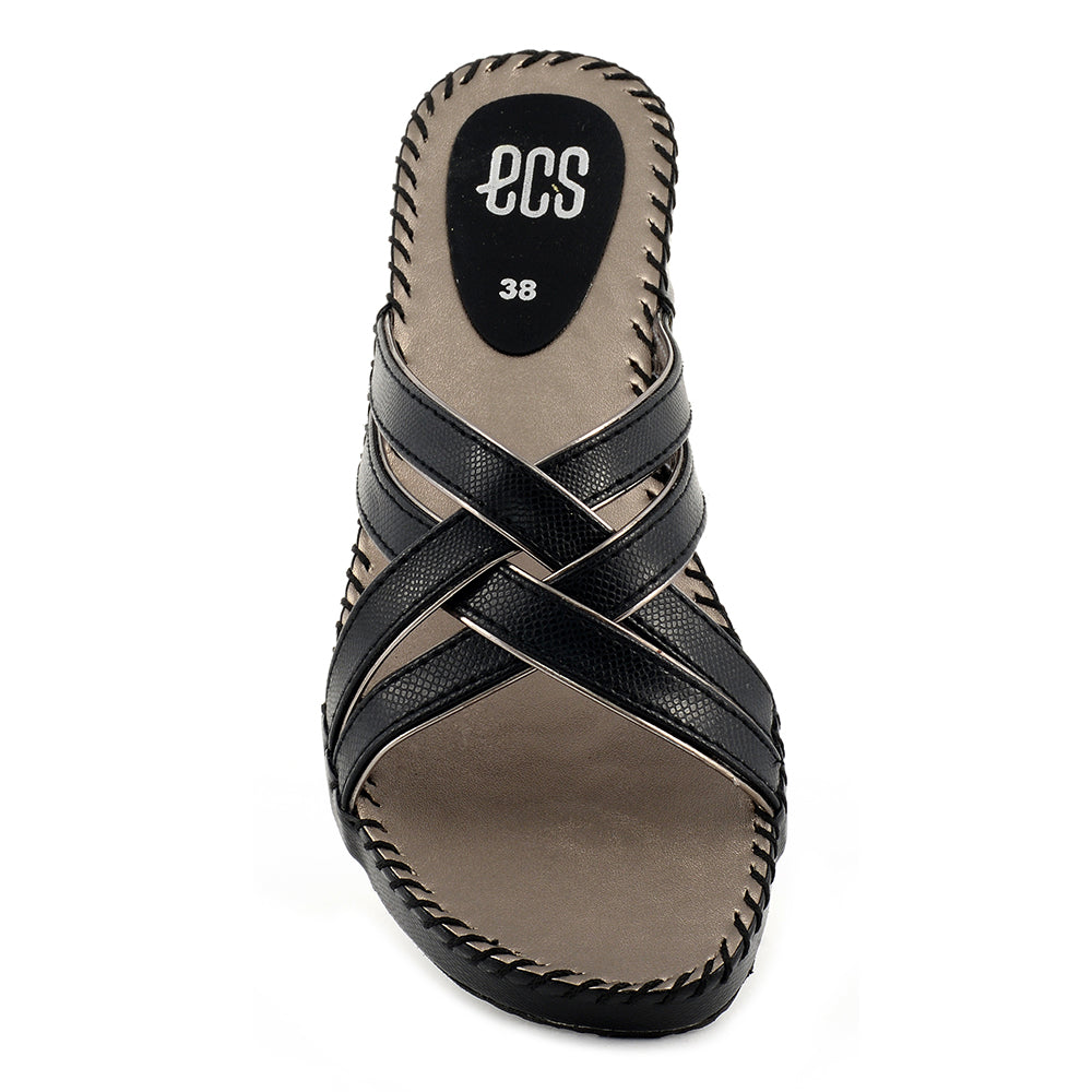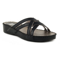 Our comfortable slipper features a modish arrangement of straps. It is produced from polyurethane fabric and Gola PU sole for enhanced resilience and high abrasion resistance. A 1¢€ heel lofts its round toe. Style this slipper with your everyday casual dresses.