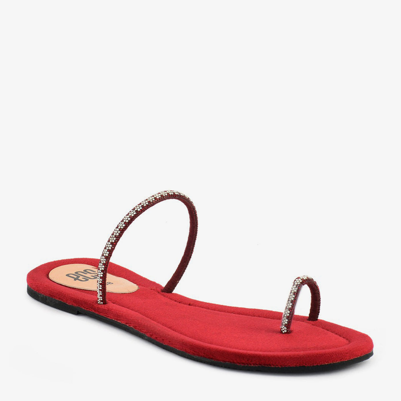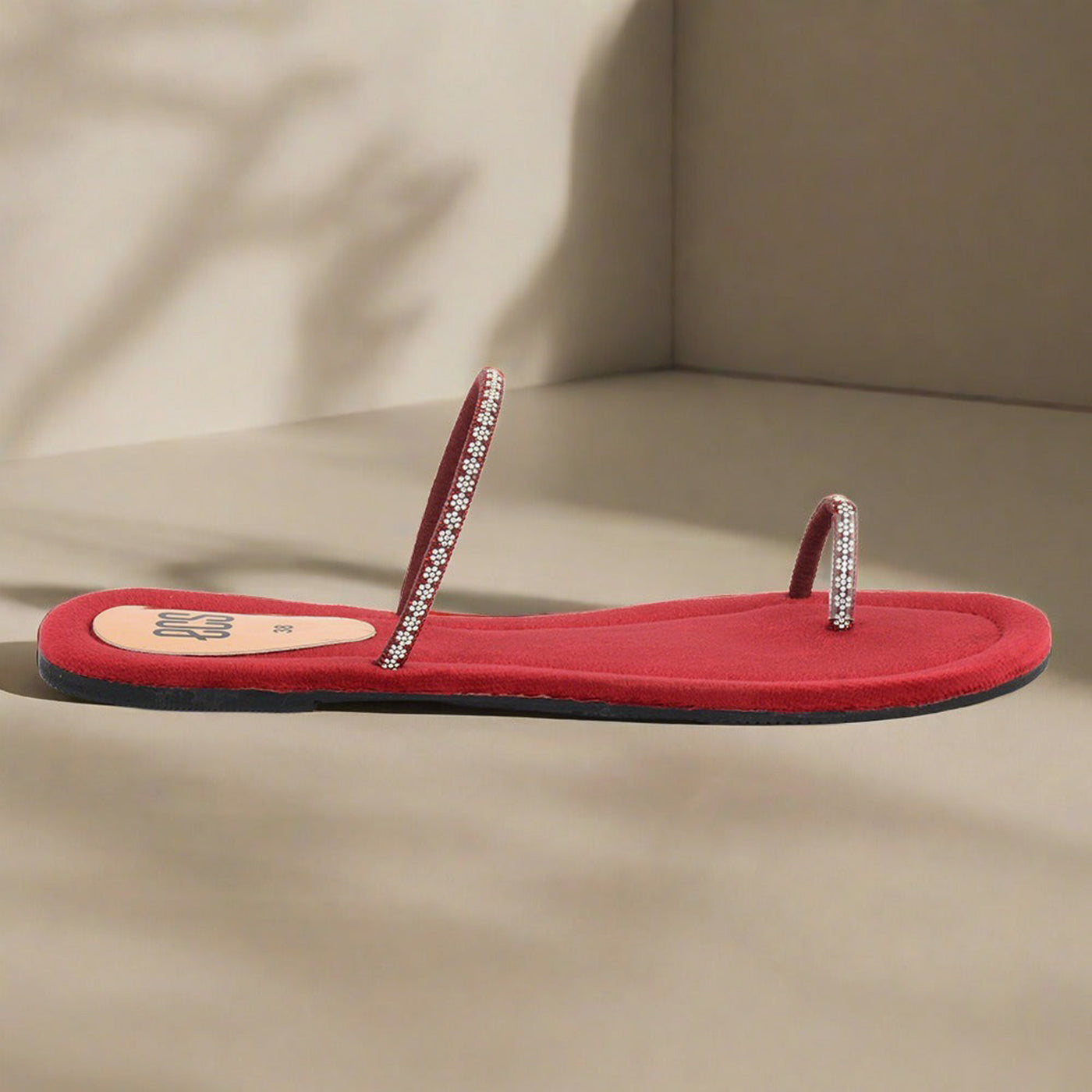 Step into subtle sparkle with these flat chappals, featuring two slender straps embellished with delicate rhinestones. Their minimalist design and comfortable flat sole make them perfect for everyday elegance in Lahore.