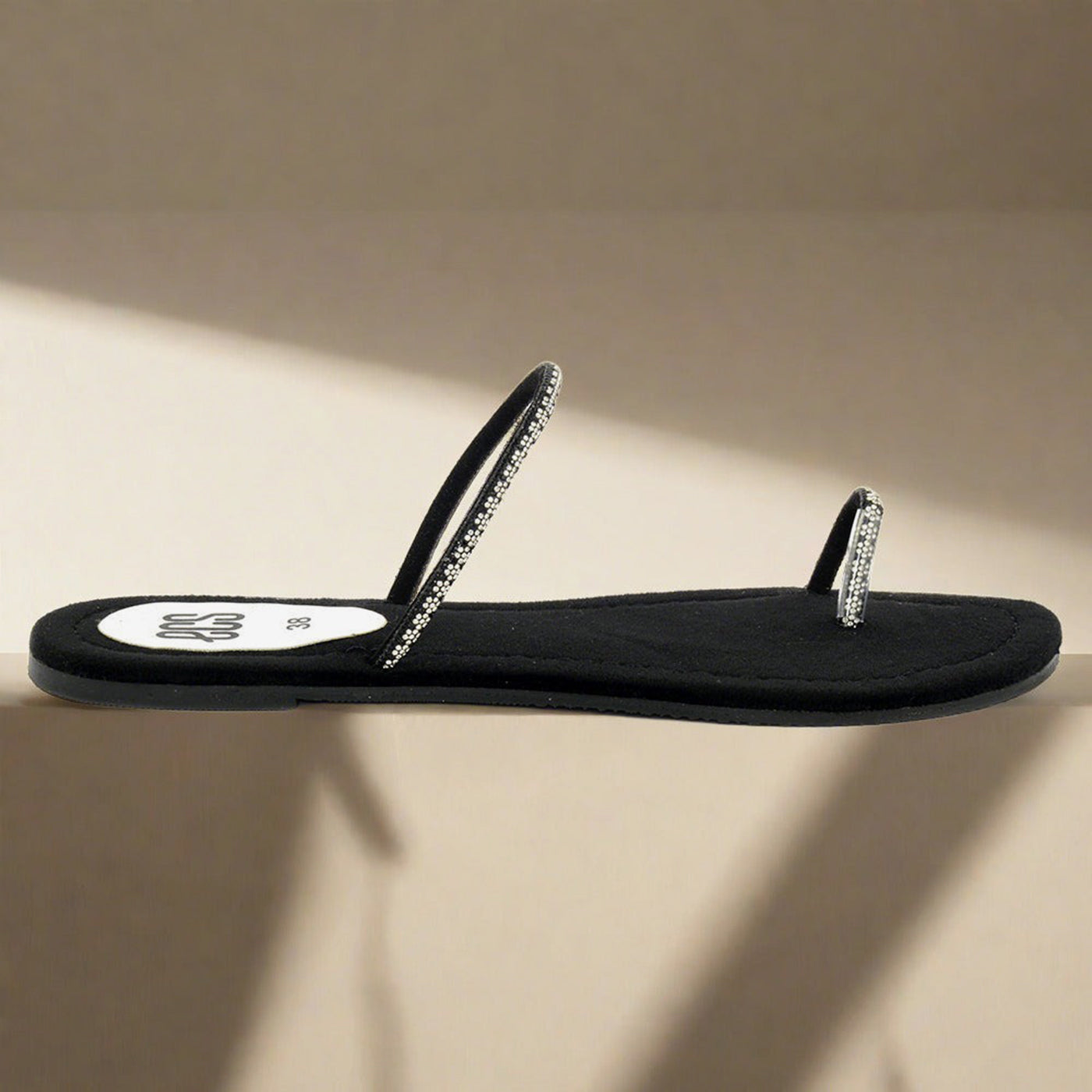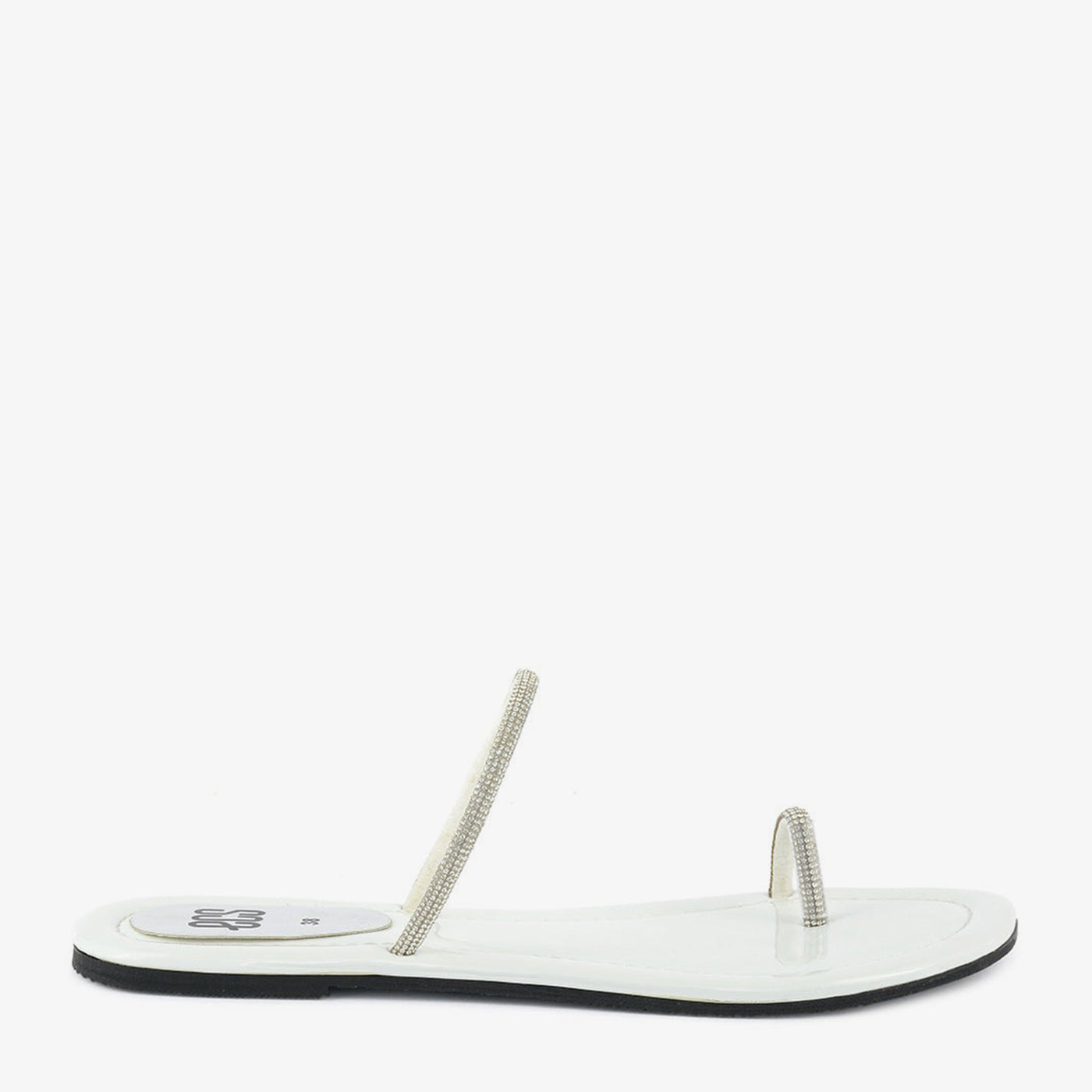 - Design: Open toe, Two slender straps with rhinestone embellishments