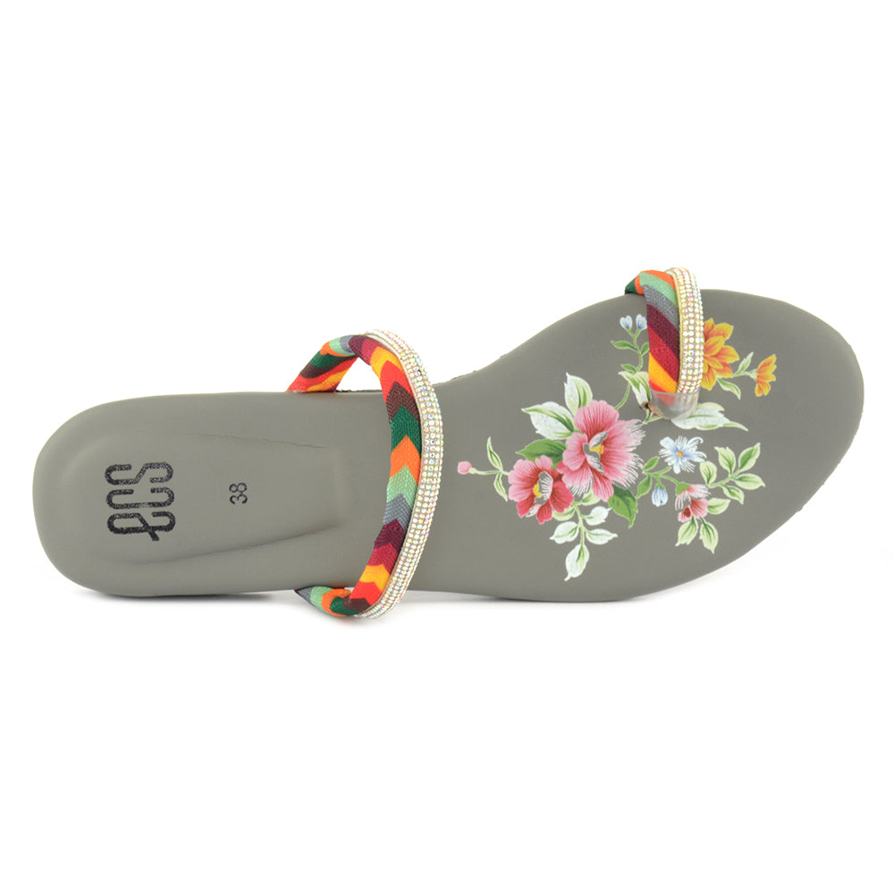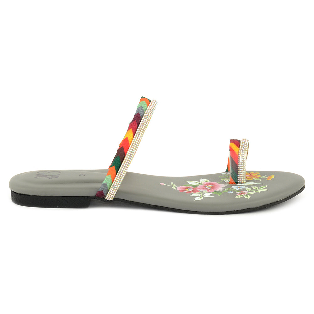 Slip into fashion-forward style with our trendy Chappals. Crafted with synthetic fabric uppers, these chappals offer a stylish and fashionable look. The round toe shape ensures a comfortable fit, allowing your feet to feel at ease. The PVC sole provides flexibility and a lightweight feel, making them perfect for everyday wear. With a flat heel height, these chappals offer a comfortable stride. The standout feature is the embellished detailing, adding a touch of sophistication and glamour. The matte finish gives them a modern and polished appeal. Slip them on effortlessly with the convenient slip-on fastening and step out in style with these chic and trendy chappals.