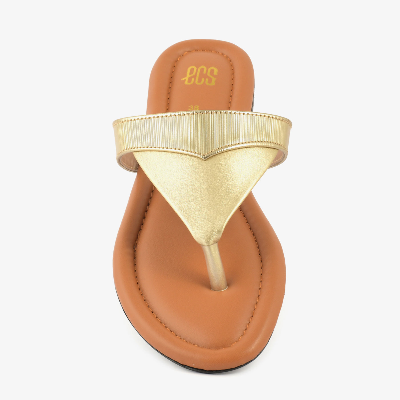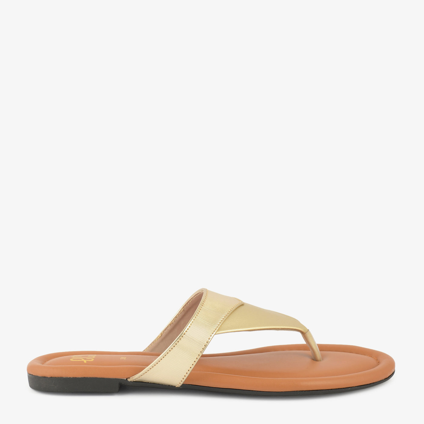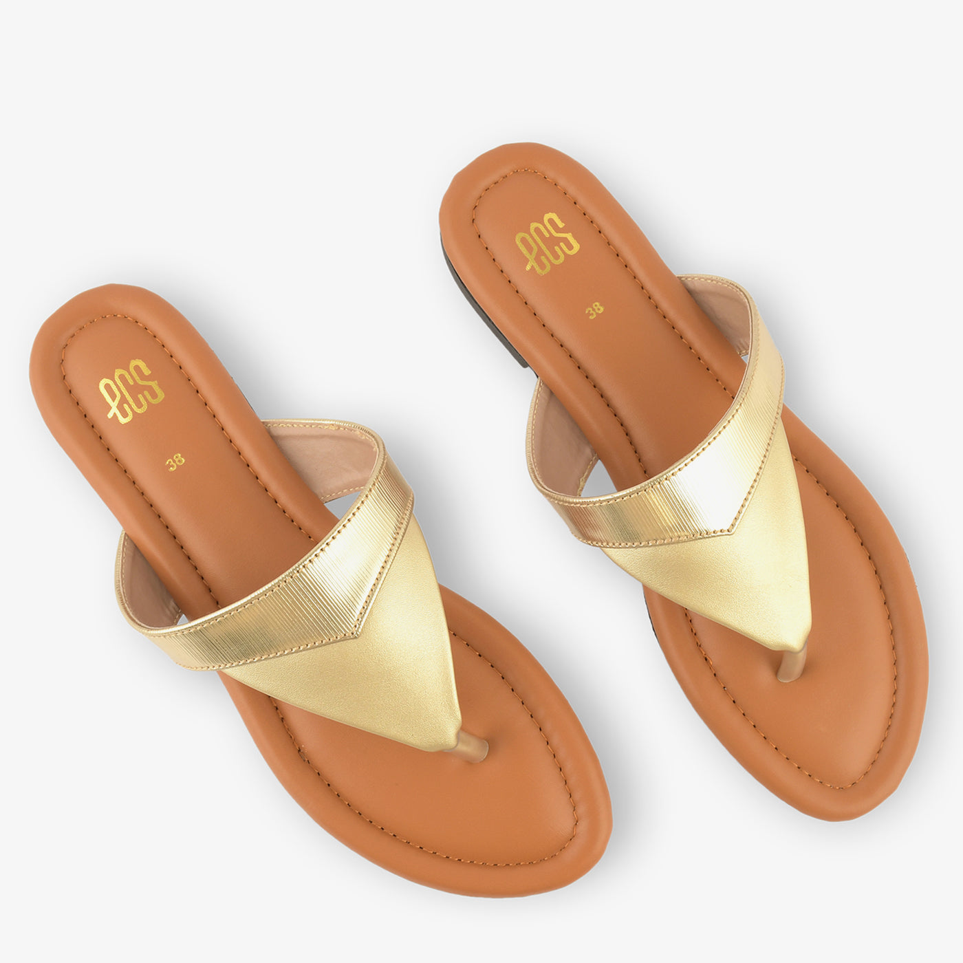 Step into effortless style with these women's flat chappals. They feature a broad, metallic-looking strap across the foot with a thong style, creating a sleek and modern look. These slip-on chappals offer a blend of casual comfort and understated elegance.