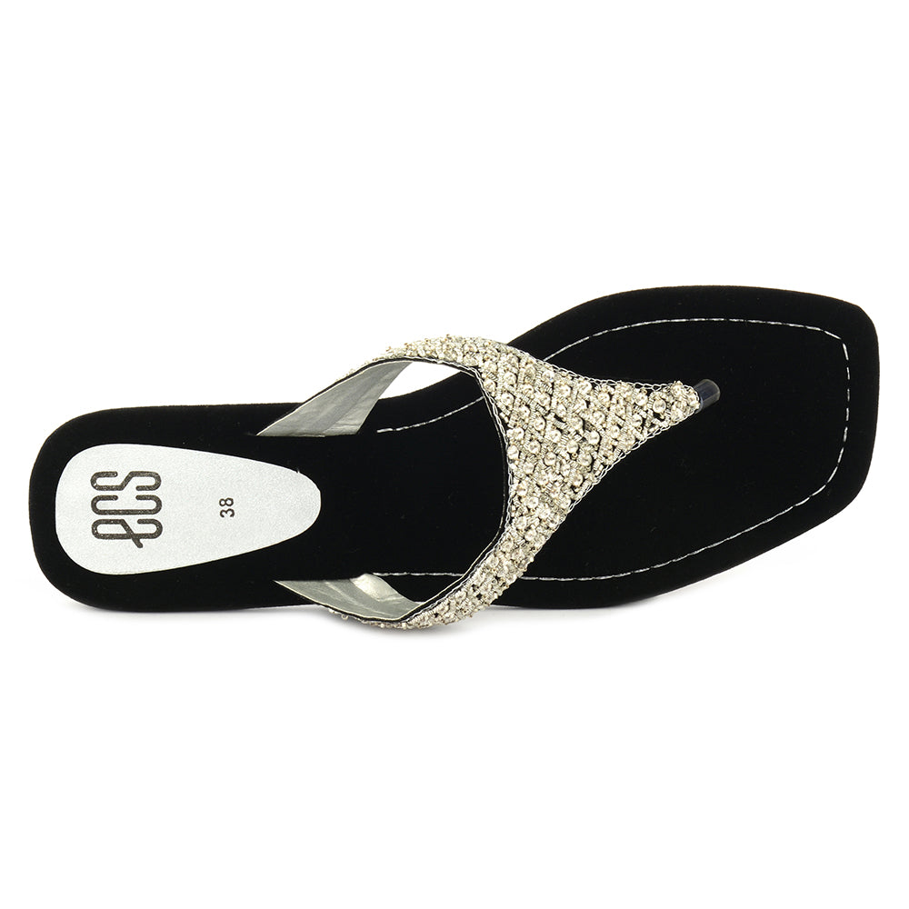 Step into chic and trendy style with our captivating collection of chappals. Crafted with Synthetic suede uppers and synthetic PU linings, these chappals offer a fashionable choice for your everyday look. The square toe shape adds a modern touch, while the flat heel height ensures comfortable wear. The rubber soles provide reliable traction and support. With a delightful embroidery feature and a glittery finish, these chappals exude a touch of elegance. Slip them on effortlessly with the convenient slip-on fastening. Explore our range of chappals and step up your fashion game with our trendy selection.