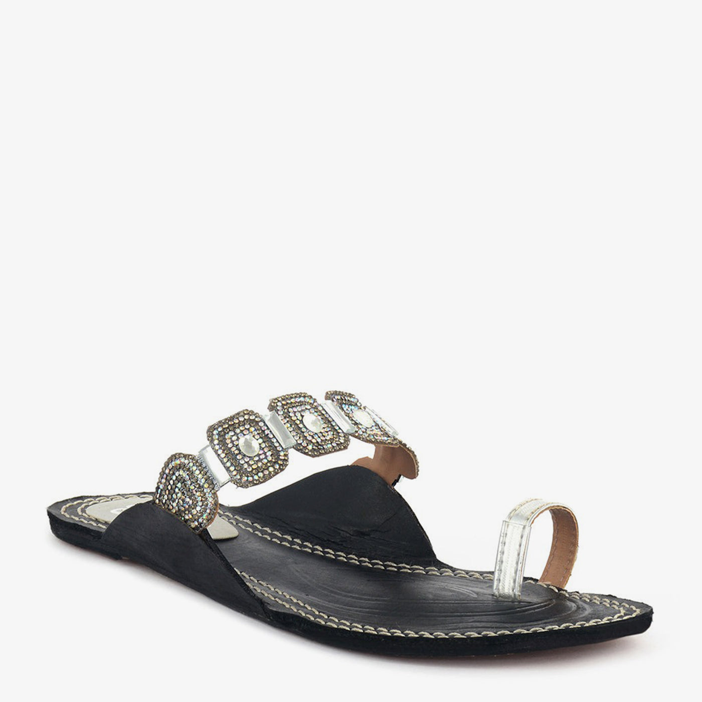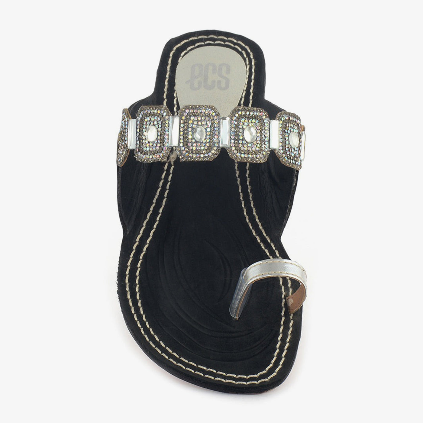 Experience comfort and style like never before with our latest leather chappals. Crafted with premium leather upper material, these chappals ensure durability and a luxurious feel. The classic round toe shape offers timeless appeal and ample room for your toes. Designed for ultimate comfort, the leather sole provides a soft and supportive base for all-day wear. Adding a touch of sparkle to your step, the glittery finish elevates these chappals to a whole new level of sophistication. Step out in confidence and sophistication with our range of glittery leather chappals, perfect for any occasion. Treat your feet to luxury today.