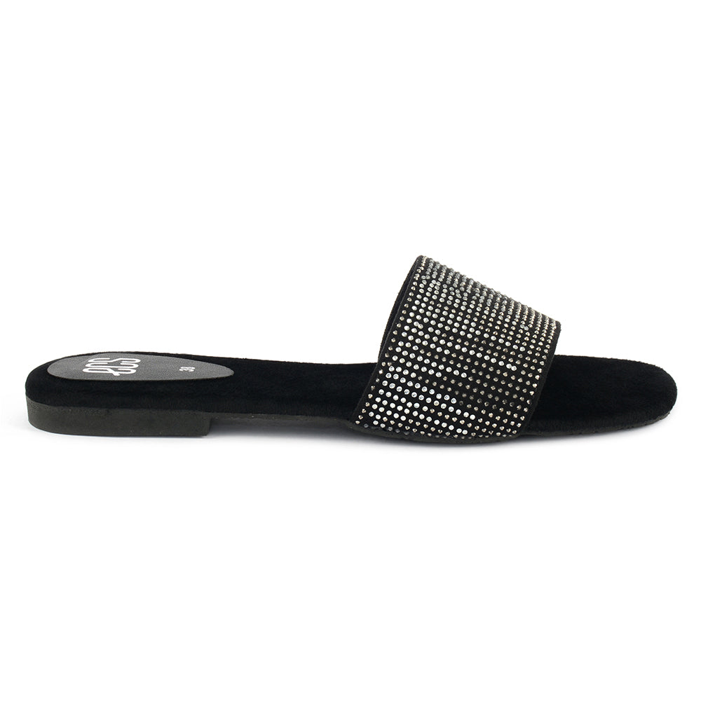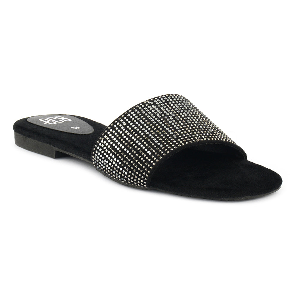 Introducing our "Suede Glam Square Toe Slippers," where luxury meets style effortlessly. Crafted with Synthetic Suede for the upper material and Synthetic PU for the lining, these slippers offer a plush feel and lasting quality. The square toe shape provides a modern and chic silhouette, perfect for adding a touch of elegance to your loungewear. Designed with a durable PVC sole for reliable traction and support, they ensure comfort throughout the day. Finished with a glittery texture and exquisite embellishments, these slippers exude sophistication and glamour, making them a stylish addition to your wardrobe. Step into fashion-forward comfort with our Suede Glam Square Toe Slippers, your perfect choice for relaxation with style.