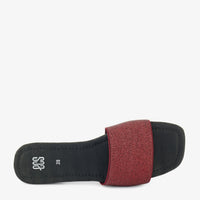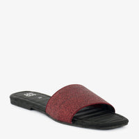Step into effortless style with these golden flat slippers, featuring a wide, shimmering strap. Their simple design makes them a versatile choice for adding a touch of subtle glamour to your everyday look.