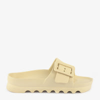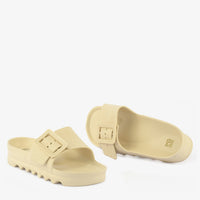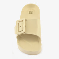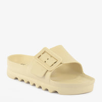 Minimalist Buckle Slides offer a blend of modern simplicity and subtle detail. These beige slide feature a clean, single strap design with an oversized buckle, providing a contemporary and understated look. The lightweight construction and contoured footbed ensure all-day comfort, making them perfect for casual outings and warm-weather days.