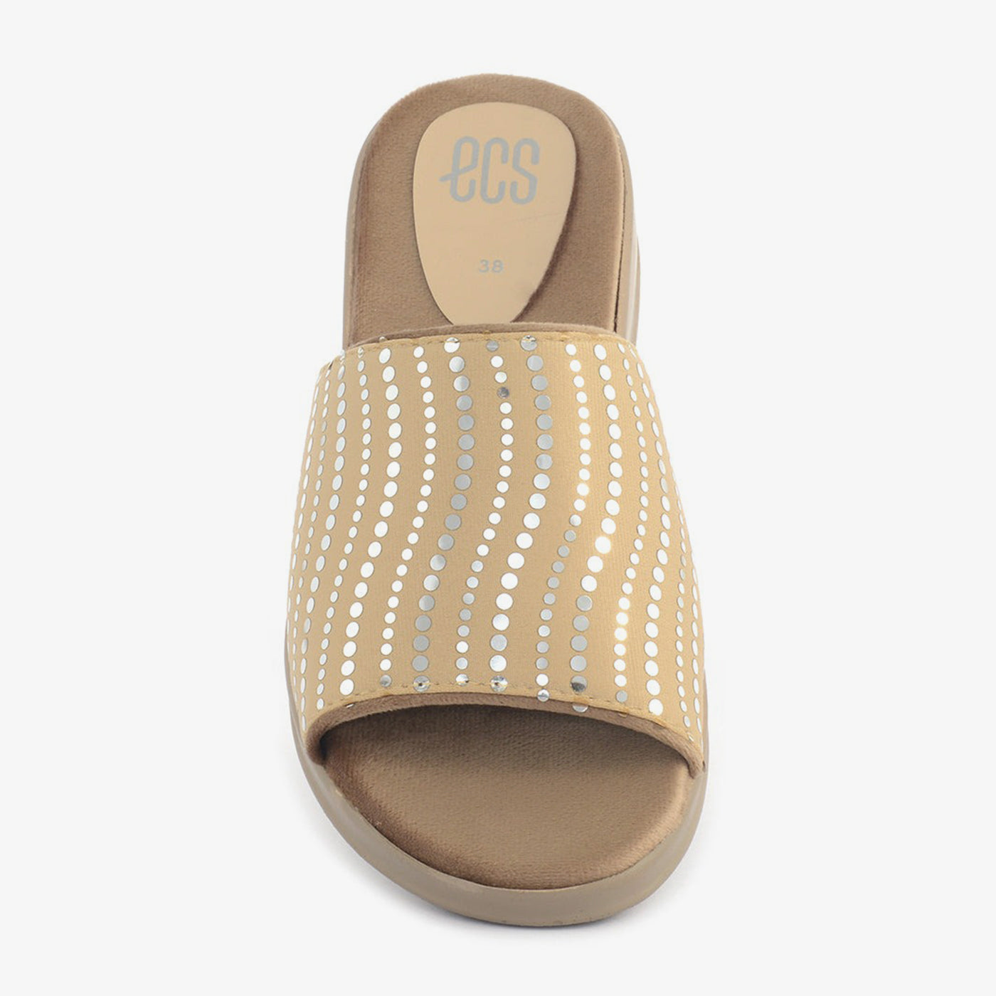 Introducing our glamorous Glittery Finish Round Toe Slippers, where style meets sparkle in perfect harmony. Crafted with meticulous attention to detail, these shoes are designed to make a dazzling statement while ensuring a comfortable and luxurious experience. The Fly Knit upper material provides a sleek and modern base for the glittery finish, creating a stunning and contemporary aesthetic. The round toe shape adds a classic touch, making these slippers versatile for various occasions where you want to stand out in style. The PU sole provides a stable foundation for your every step, ensuring both glamour and ease of movement. Elevate your style effortlessly with this perfect combination of glittery allure and luxurious comfort.